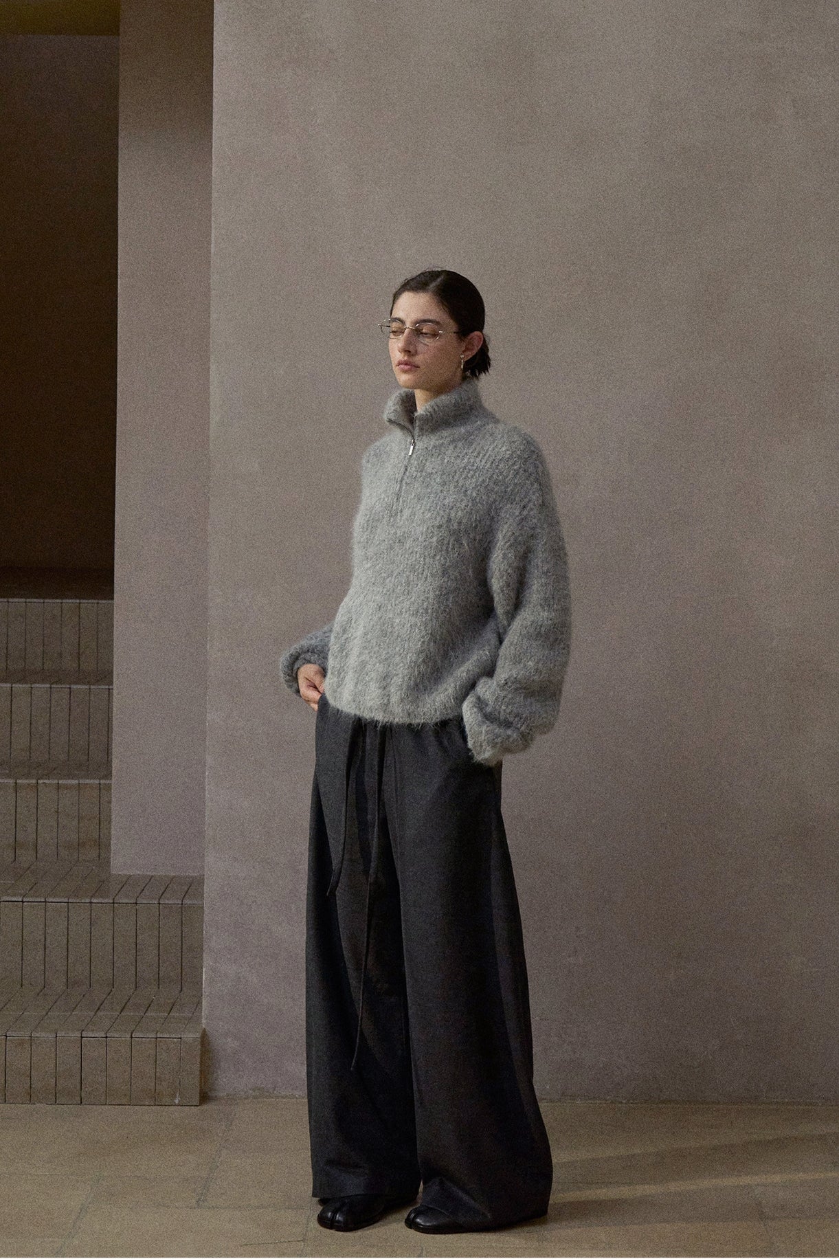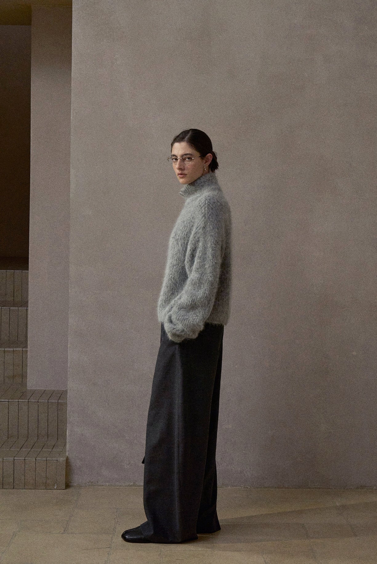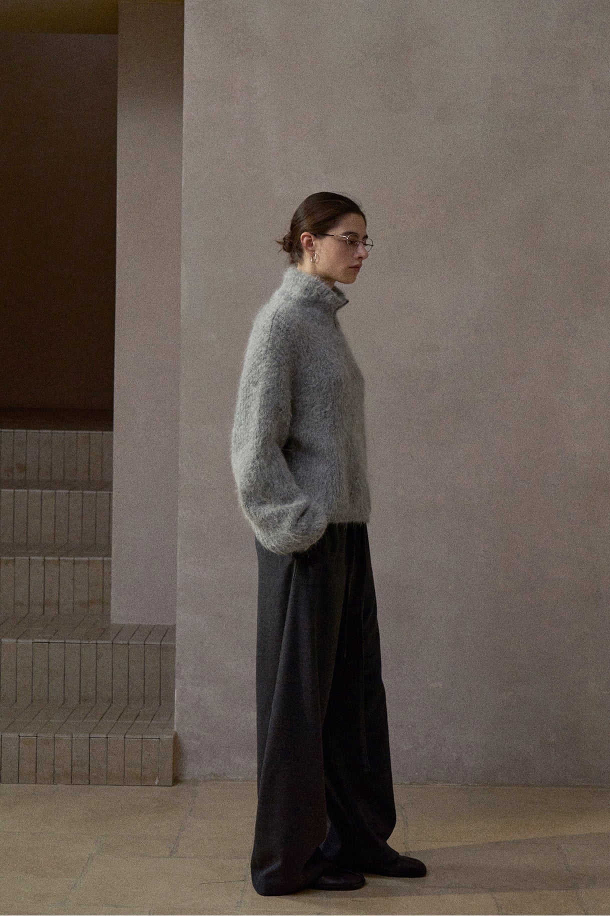 アルパカをブレンドしたふんわりとしたタッチと軽やかな風合いが特徴。