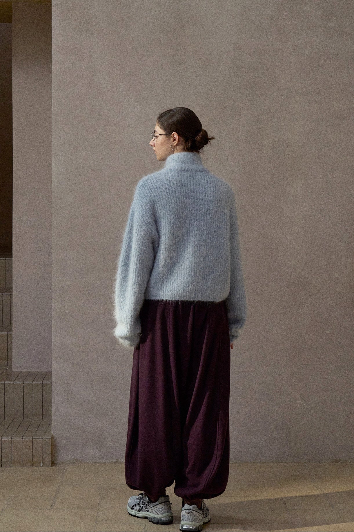 軽やかな着心地でありながらもボリューム感があり、秋冬のスタイリングに華やかさを添える素材感。