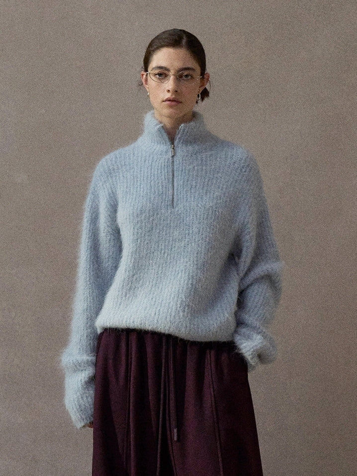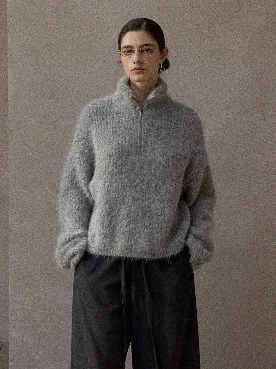 毛足の長いアルパカブレンドがシーズンムードを高めるハーフジップニットプルオーバー。