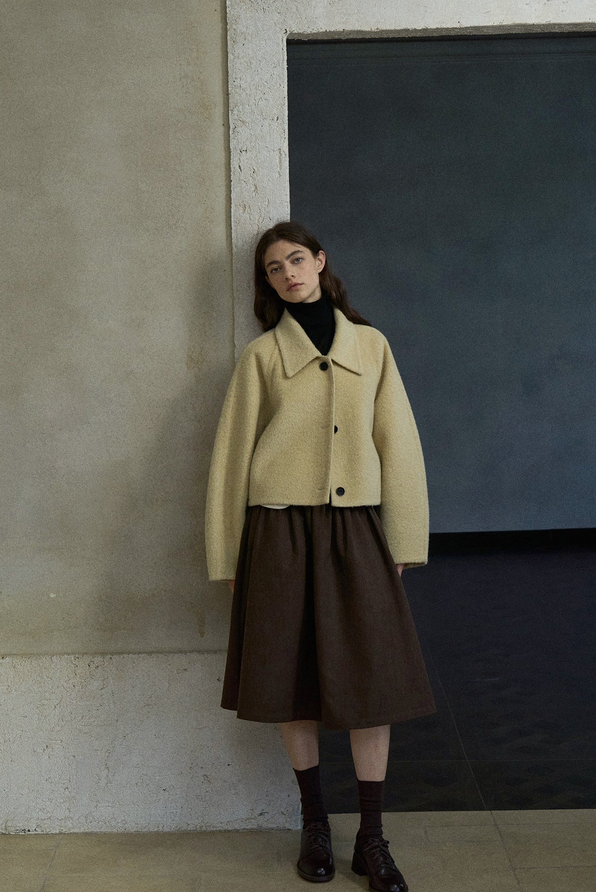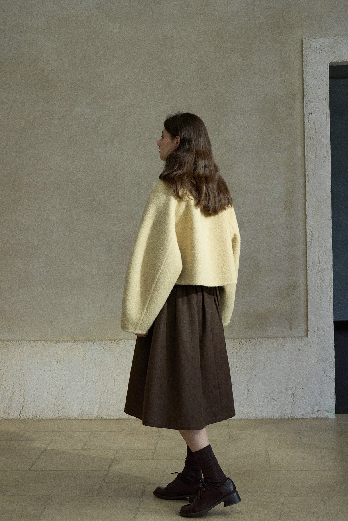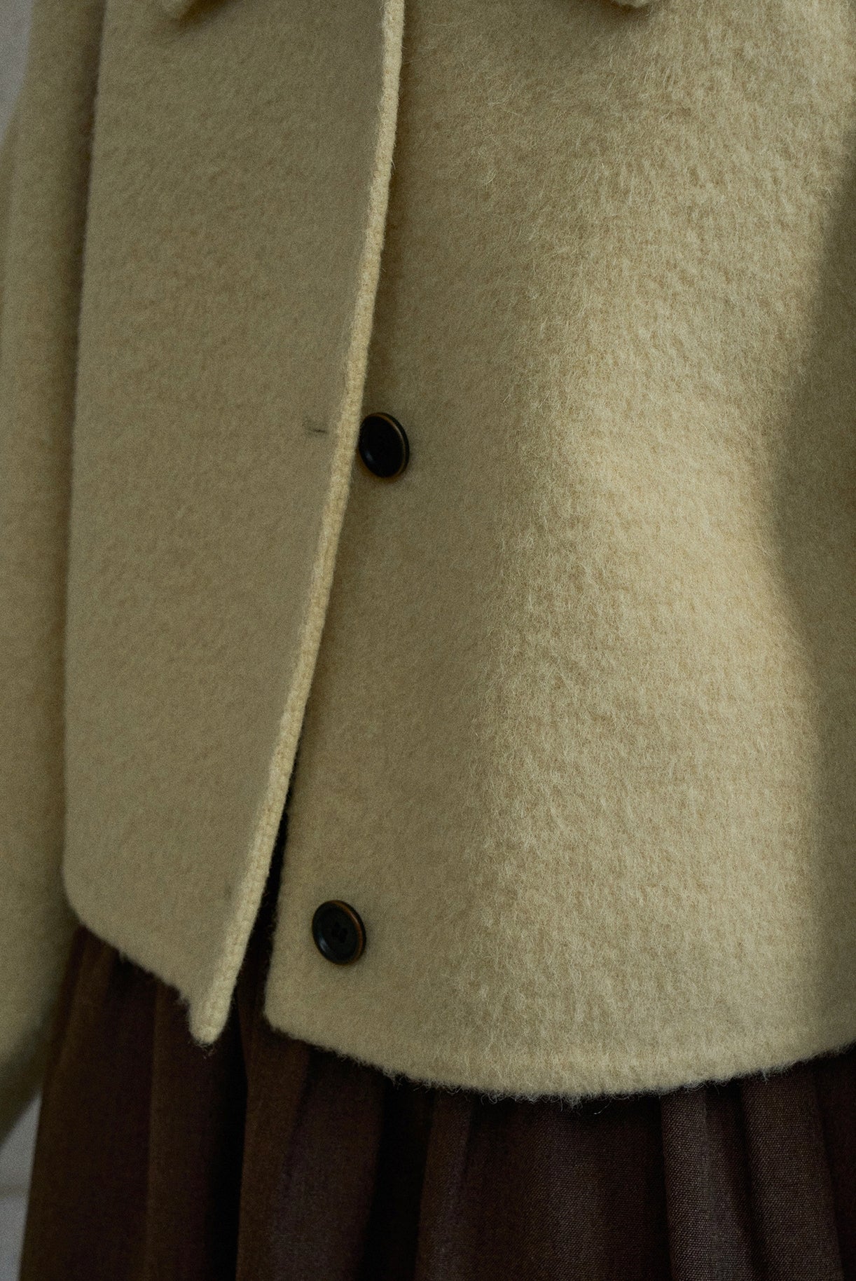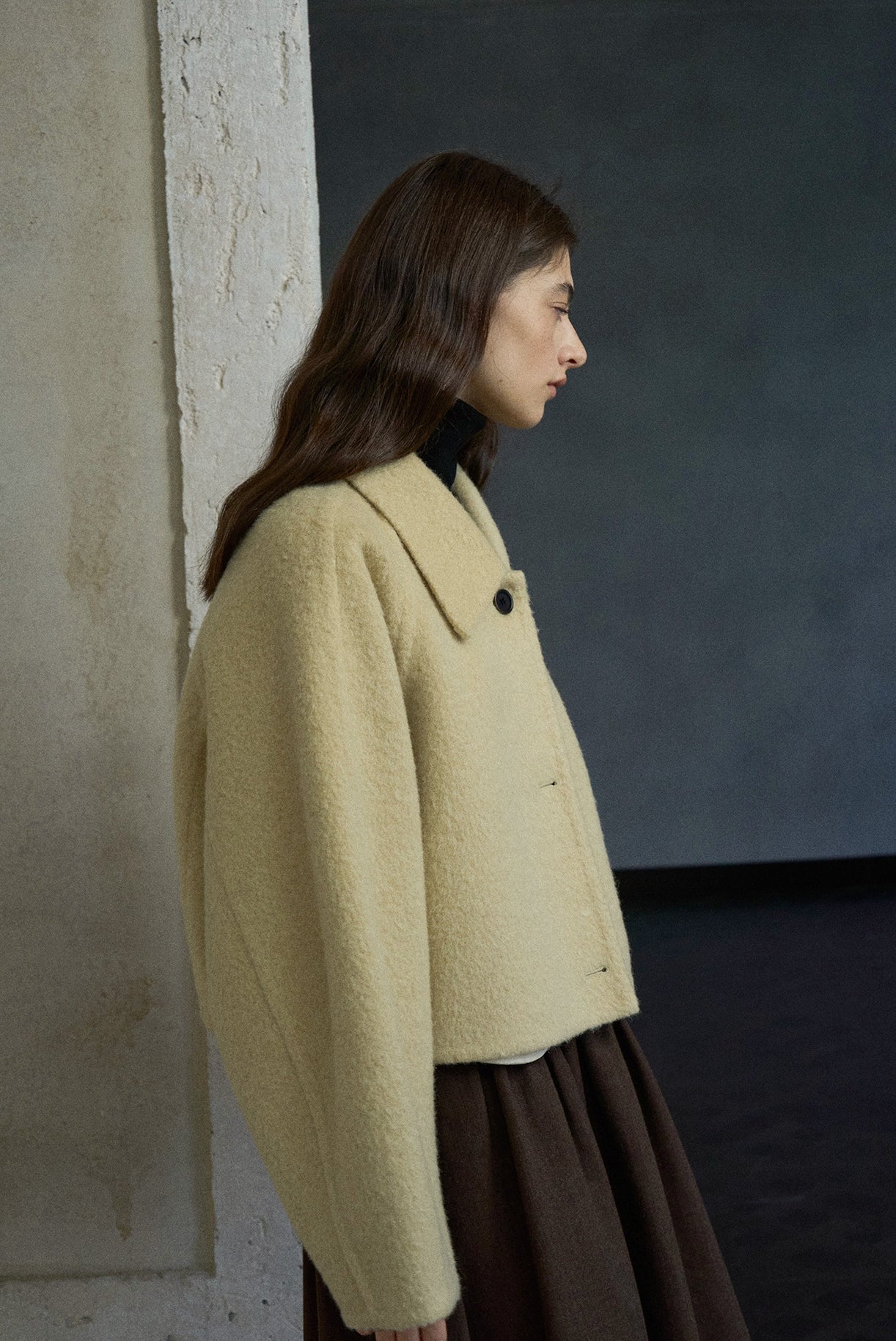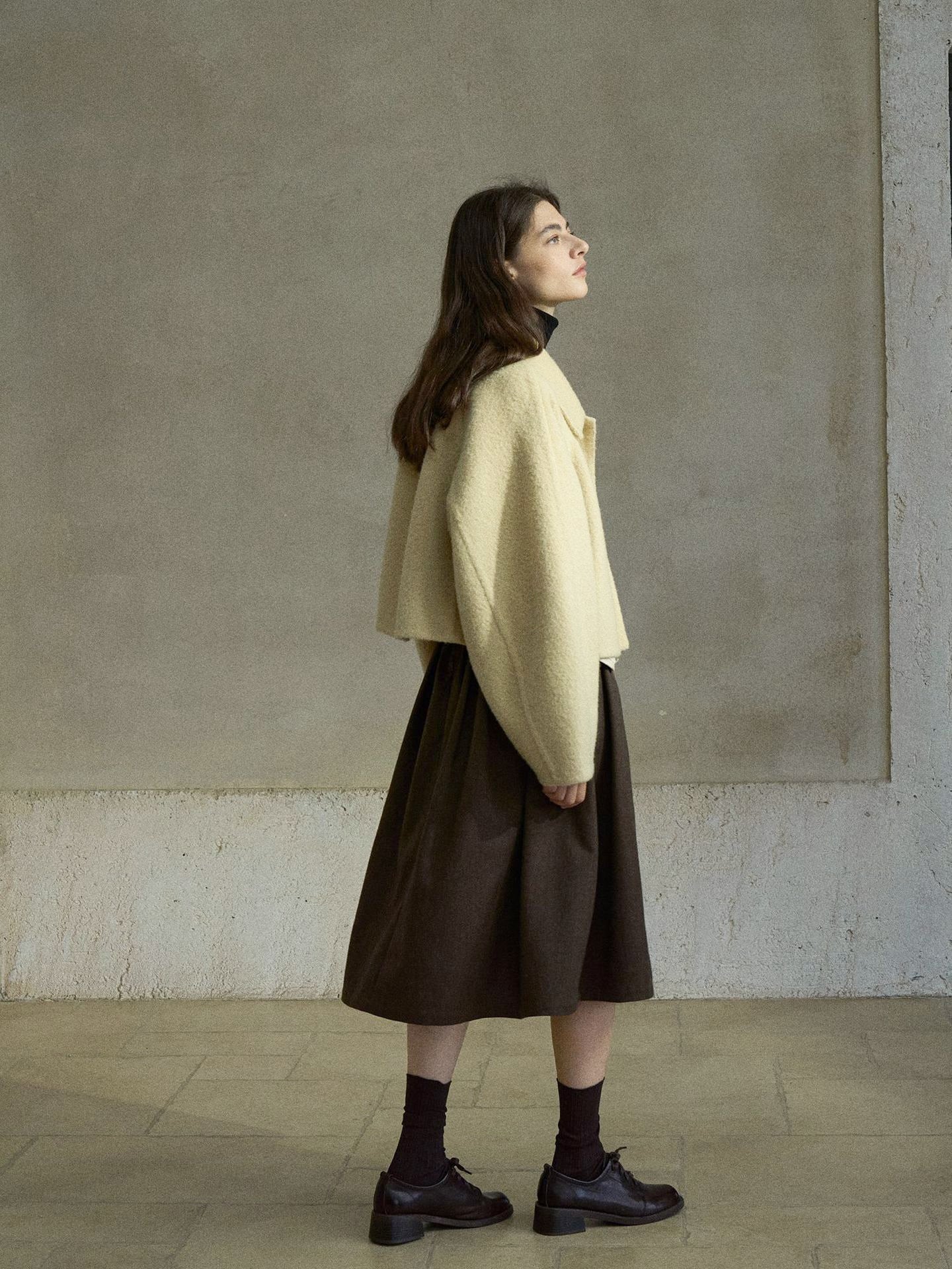 ややコンパクトなボックスシルエットで、肩まわりにゆとりを持たせつつ上品な立体感を演出。