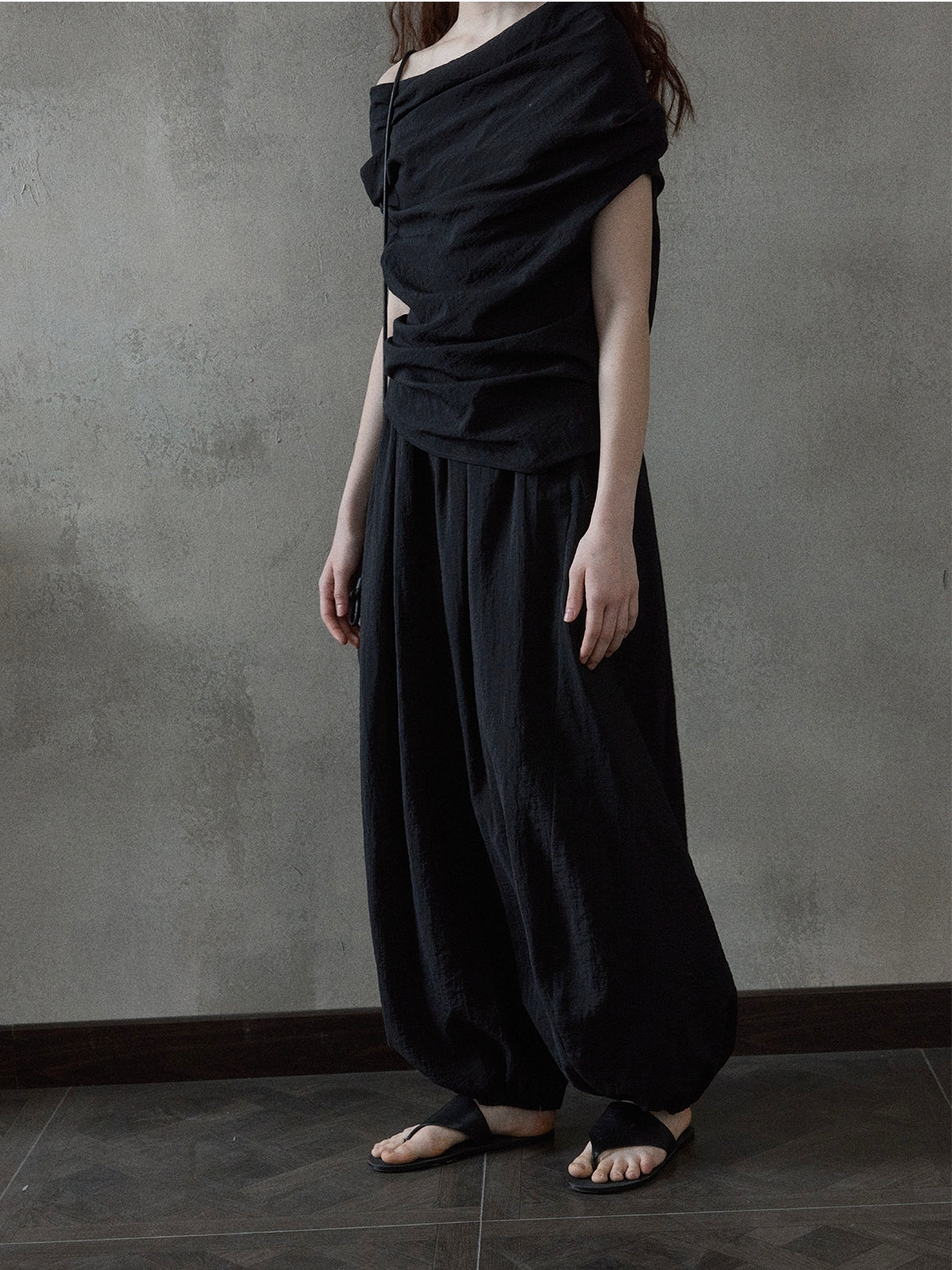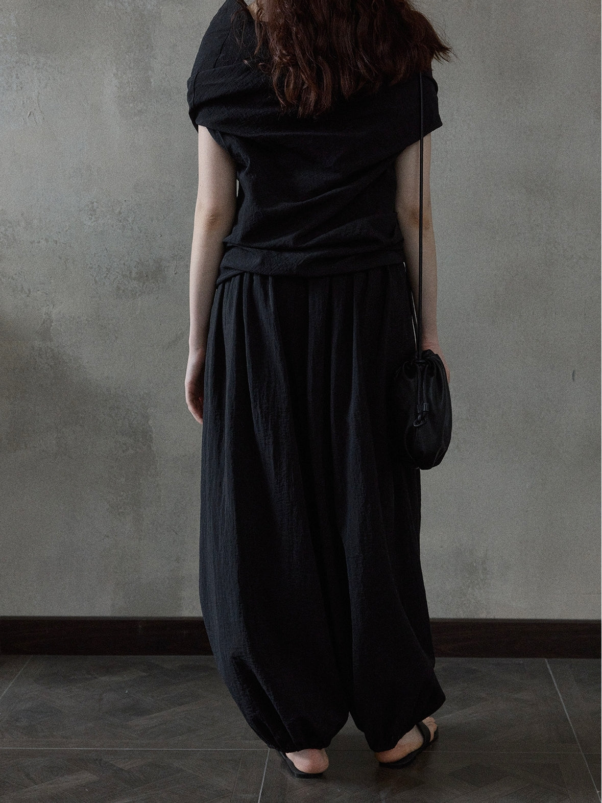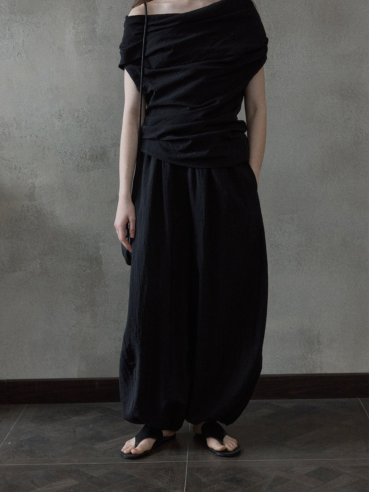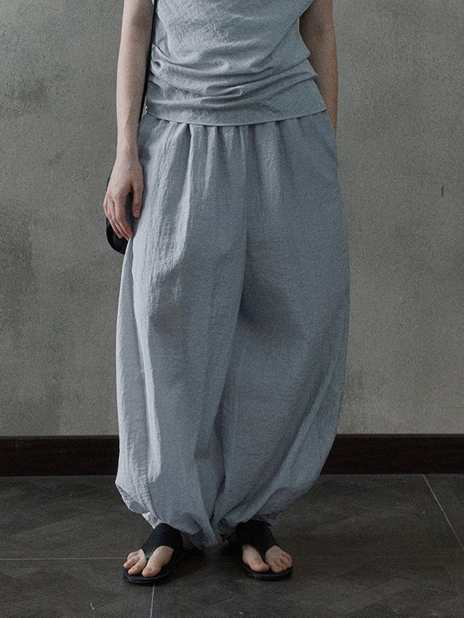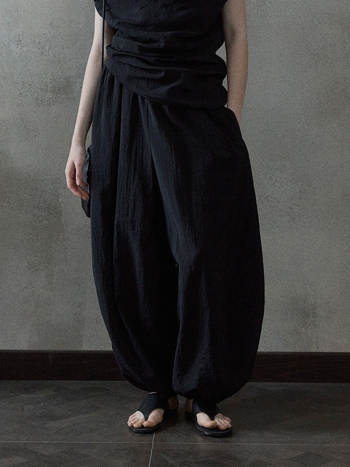 ウエストゴムでリラックス感のある今季注目のバルーンパンツ。