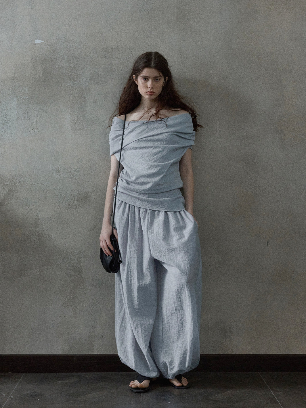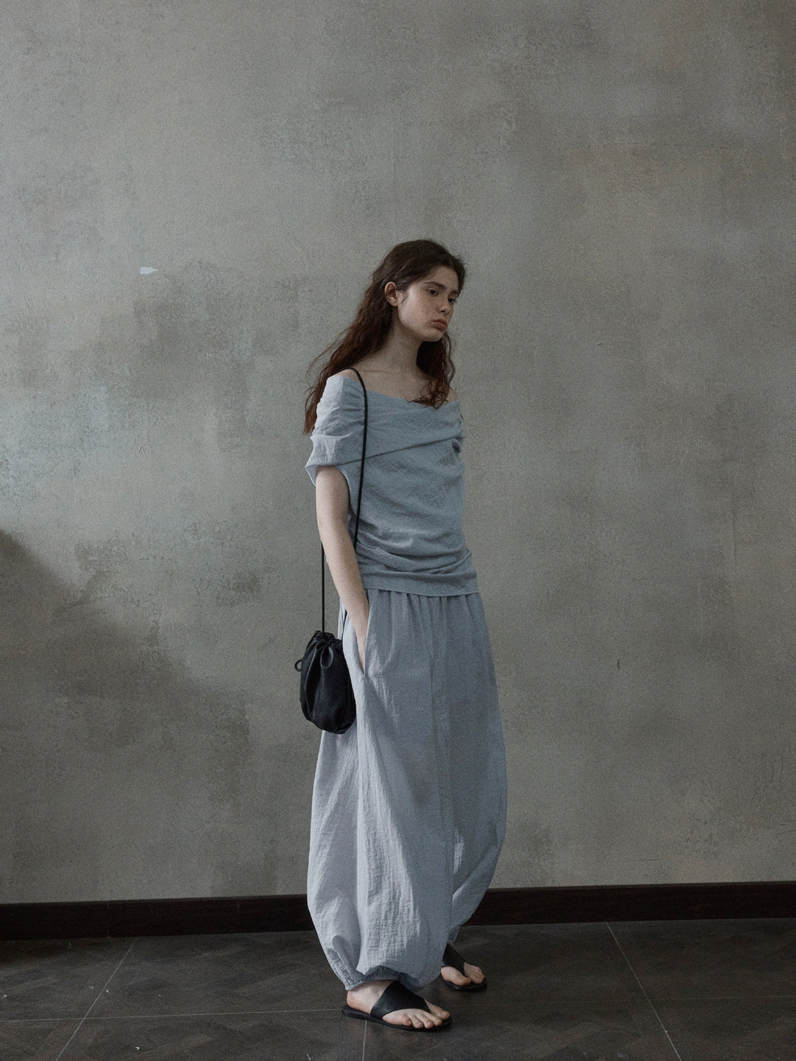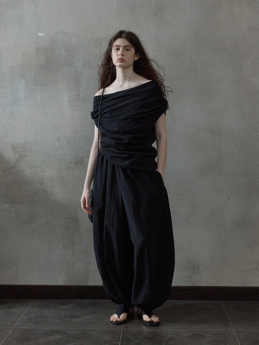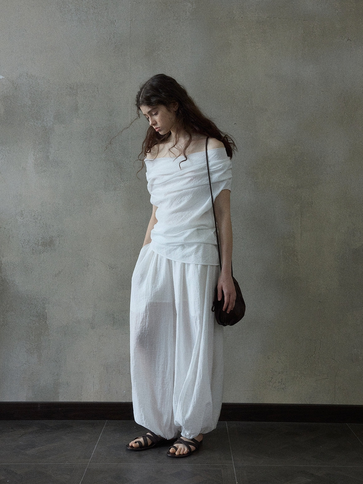 ウエストゴムでリラックス感のある今季注目のバルーンパンツ。