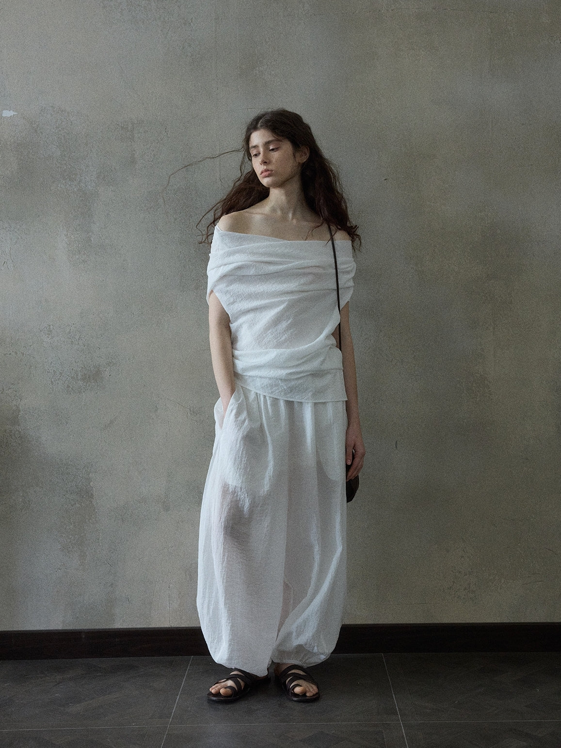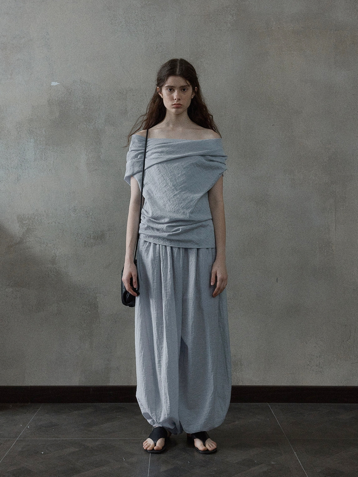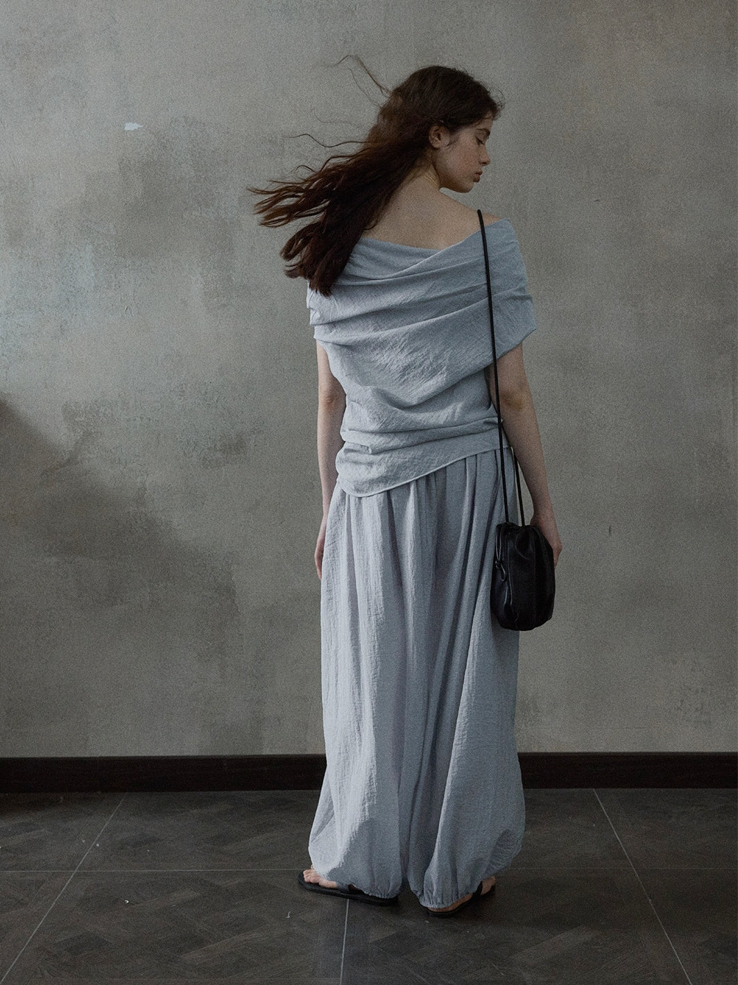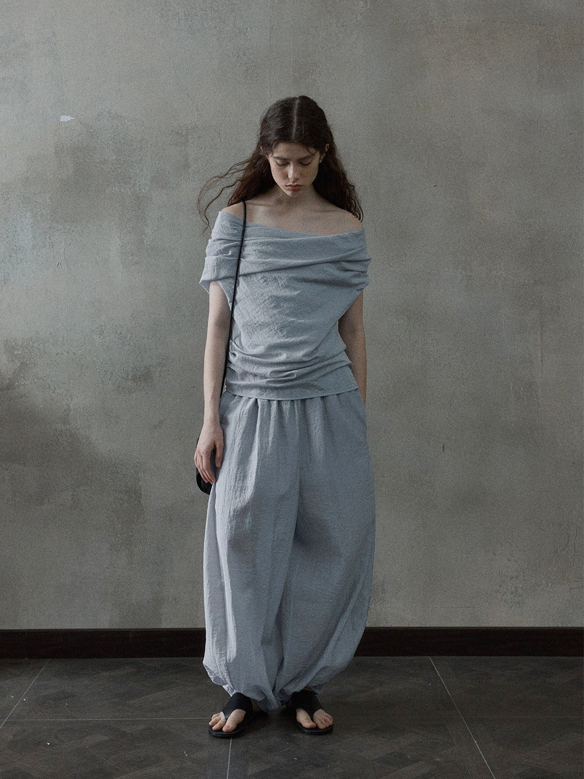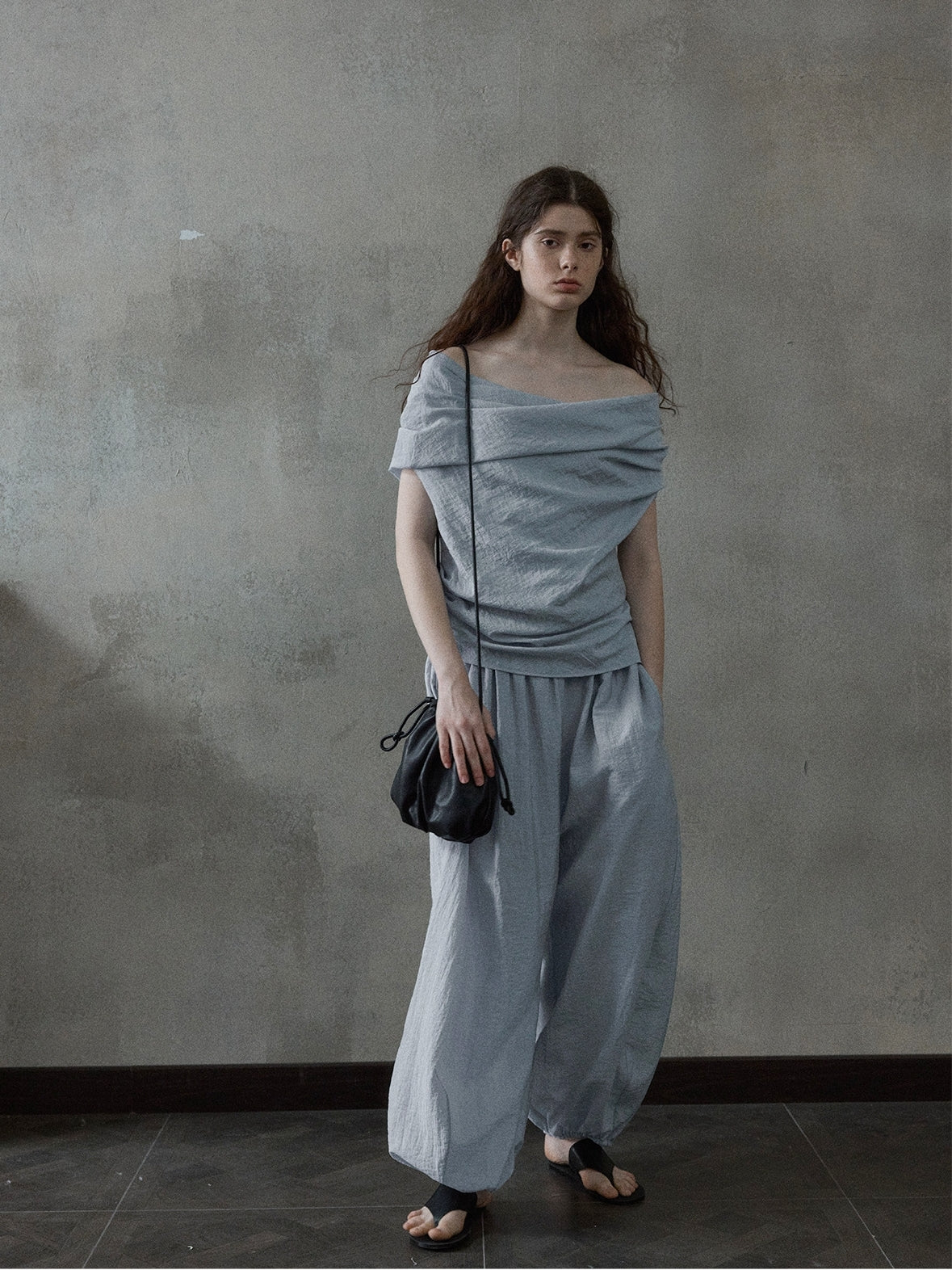ウエストゴムでリラックス感のある今季注目のバルーンパンツ。