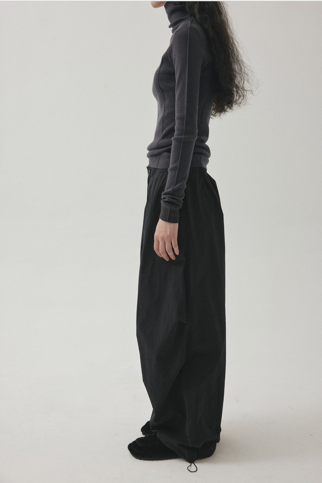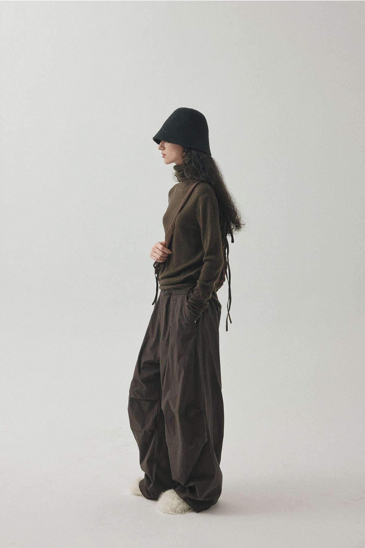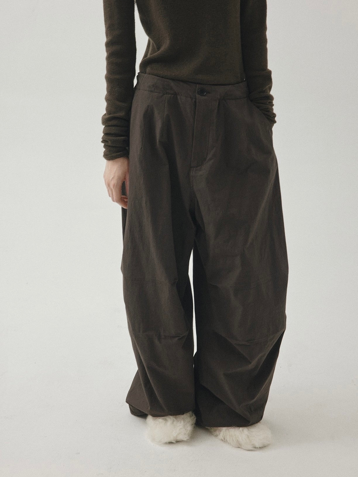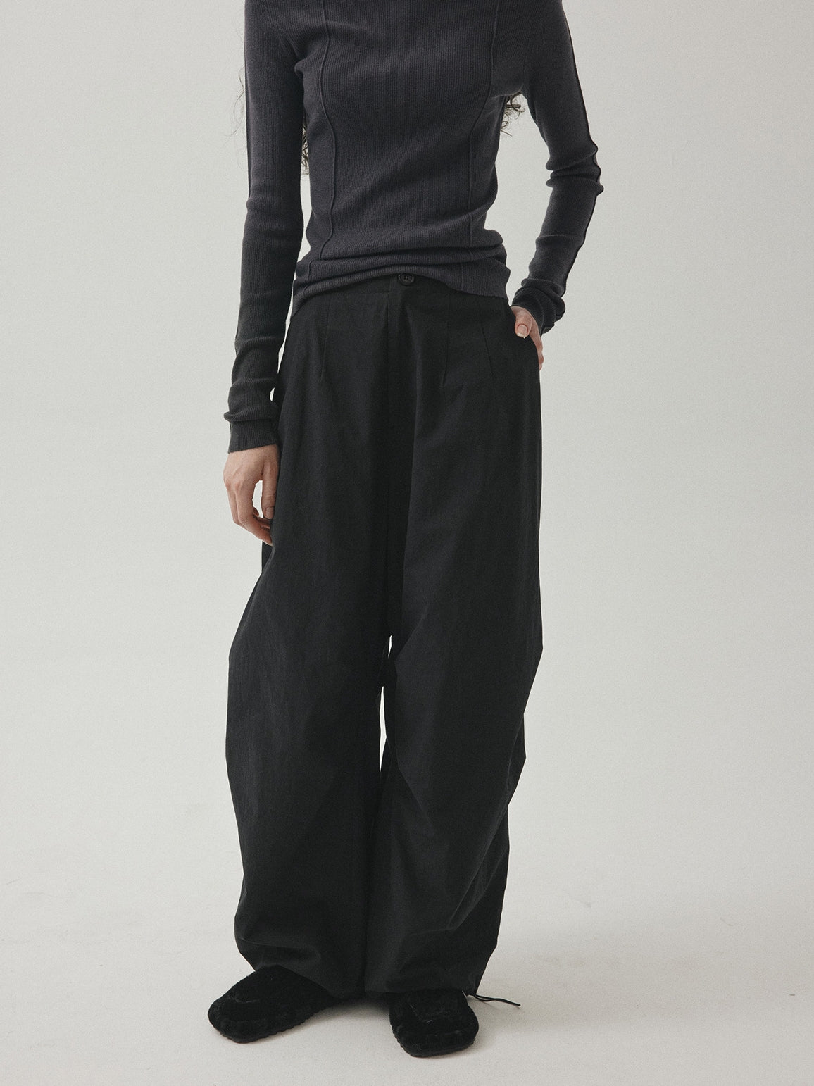 裏起毛の暖かさも兼ね備えた裾ドローストリングワイドパンツ。