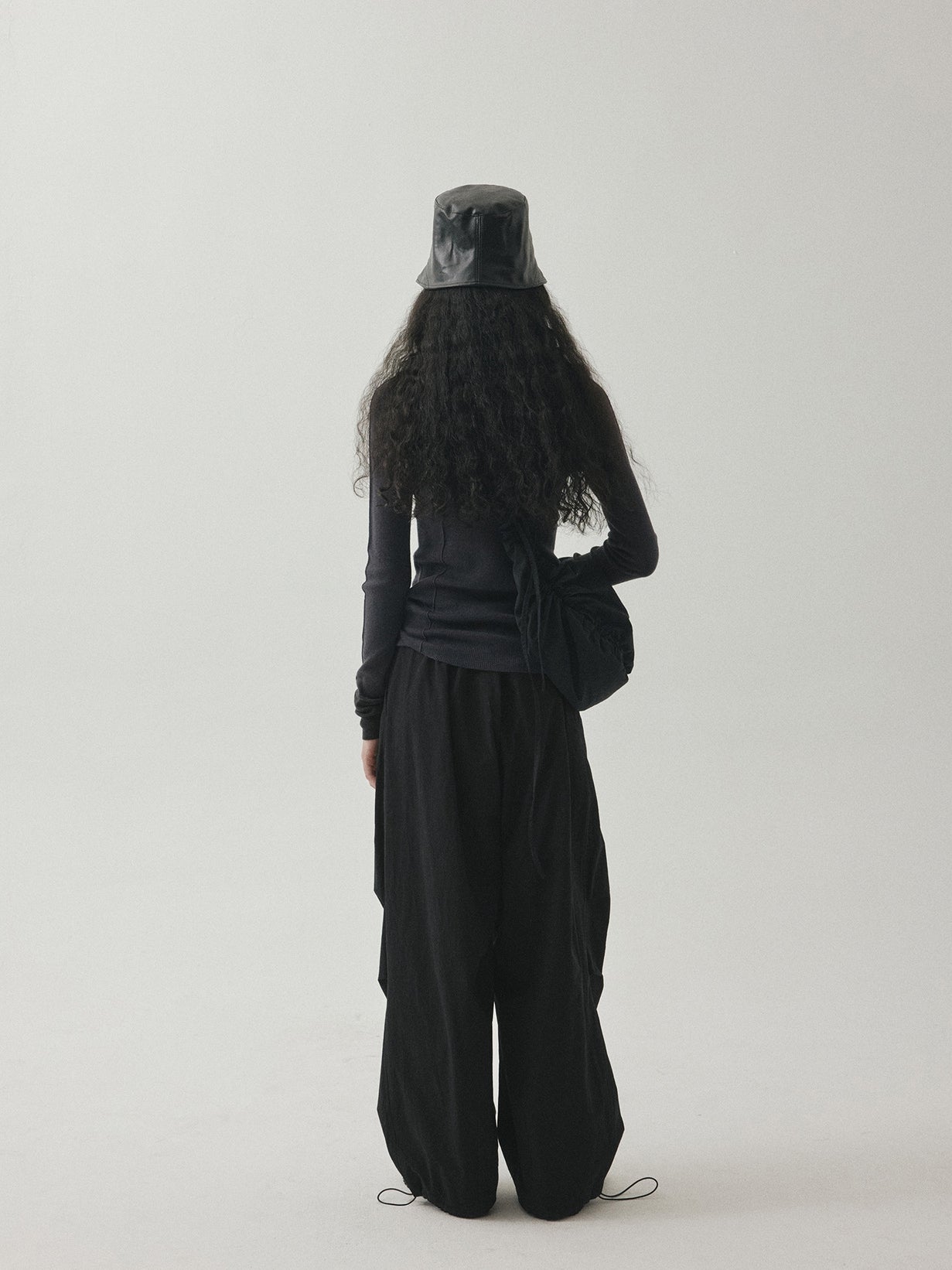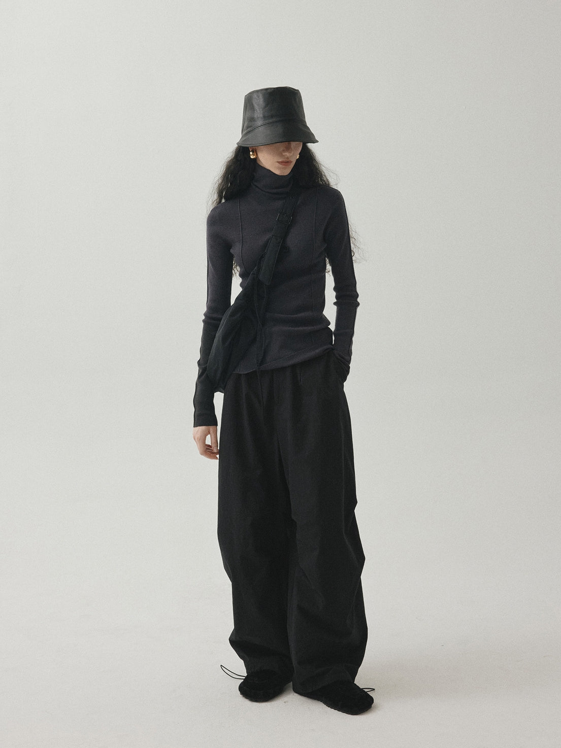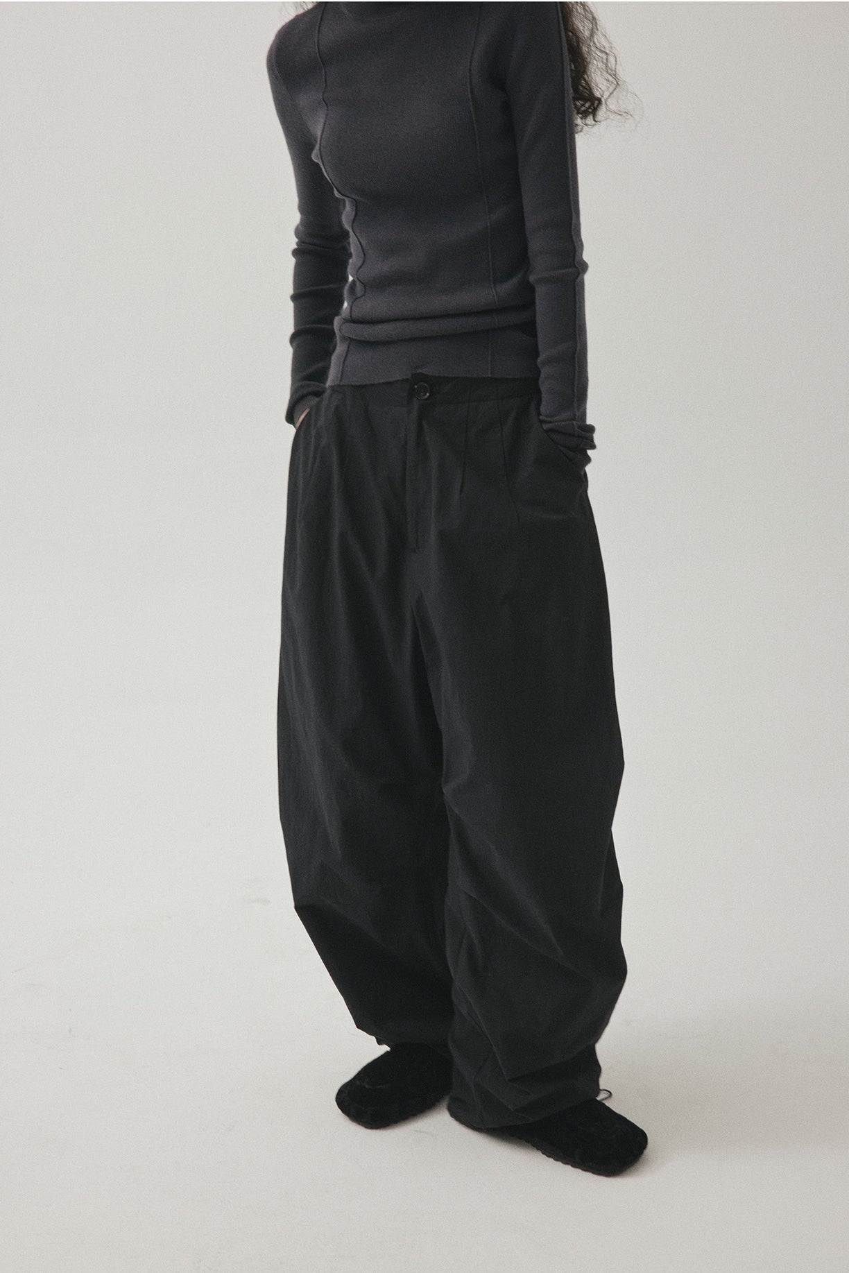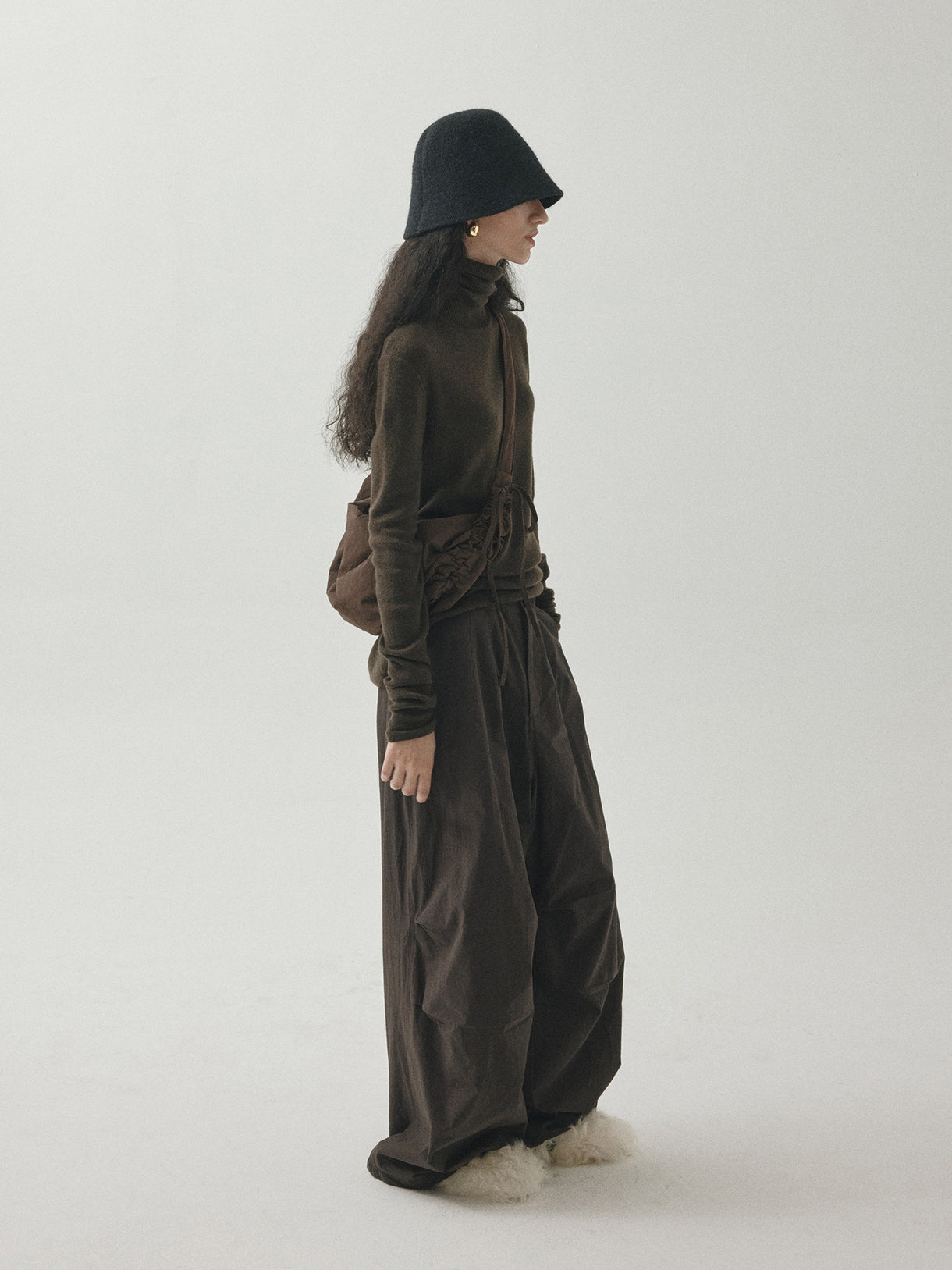 裏起毛の暖かさも兼ね備えた裾ドローストリングワイドパンツ。