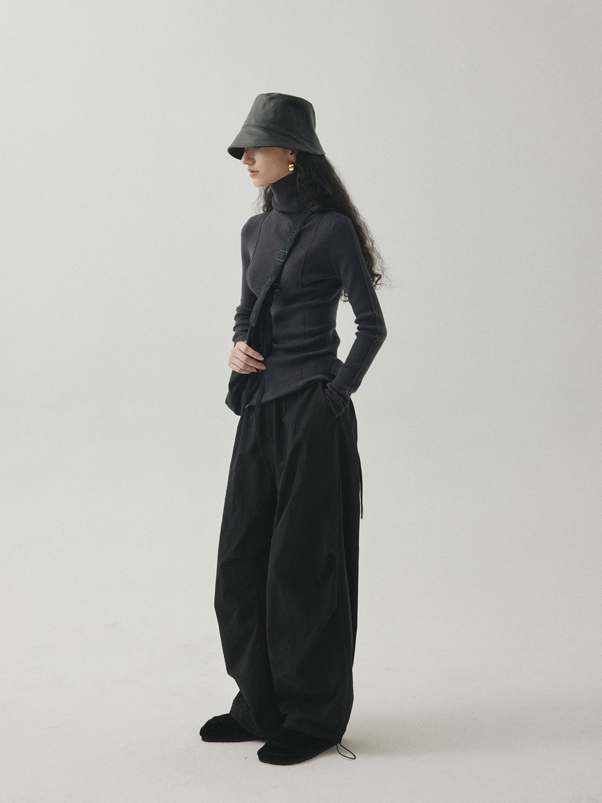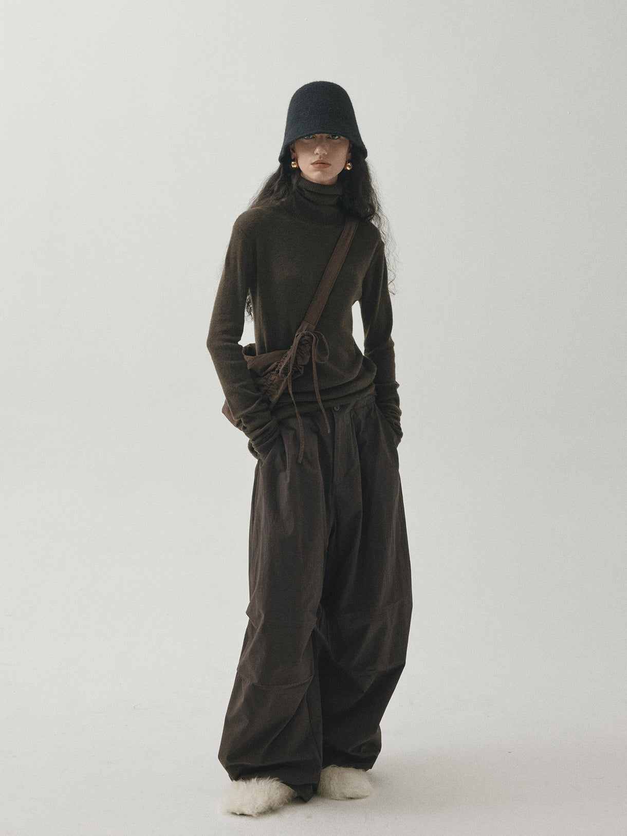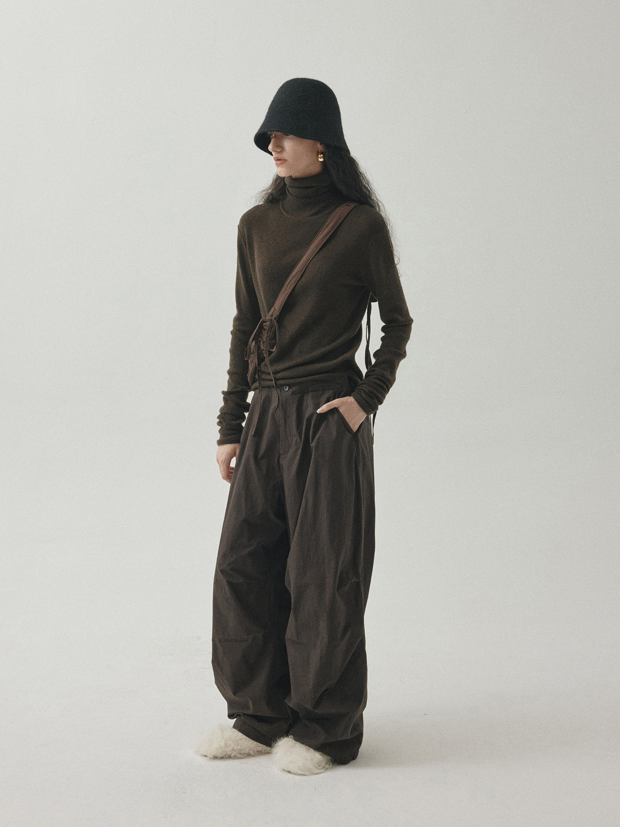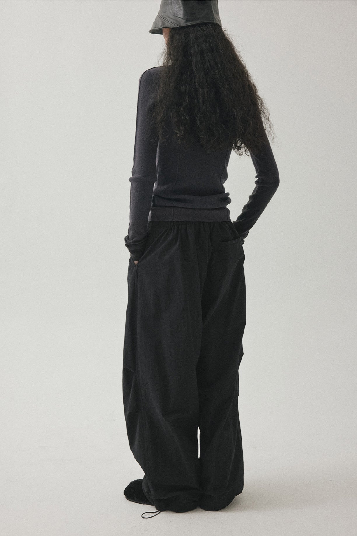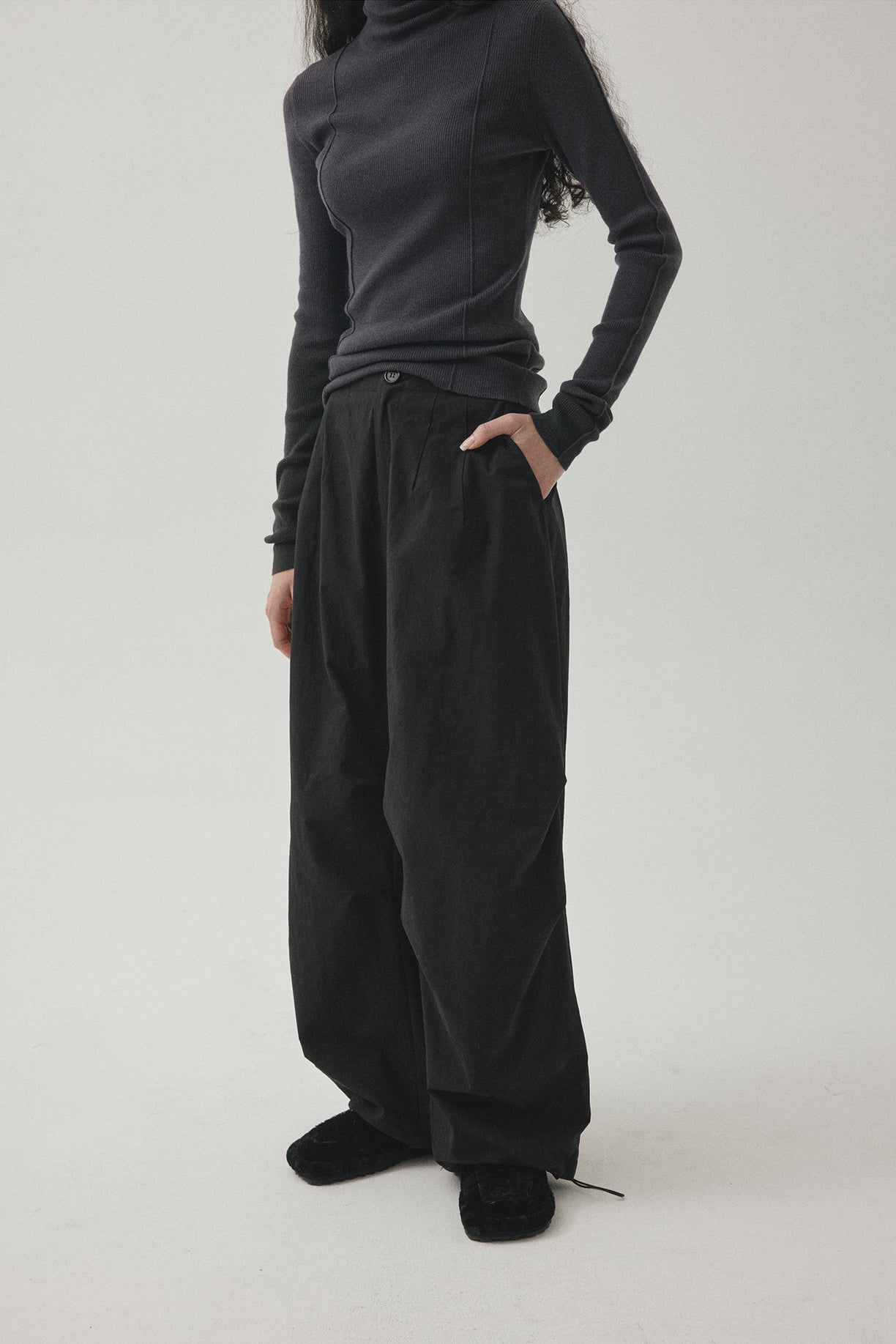 裏起毛の暖かさも兼ね備えた裾ドローストリングワイドパンツ。