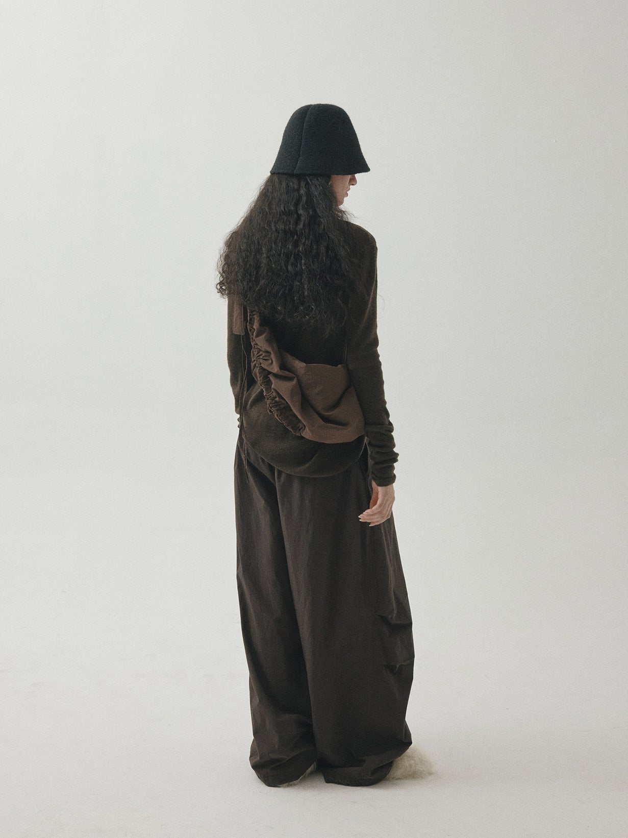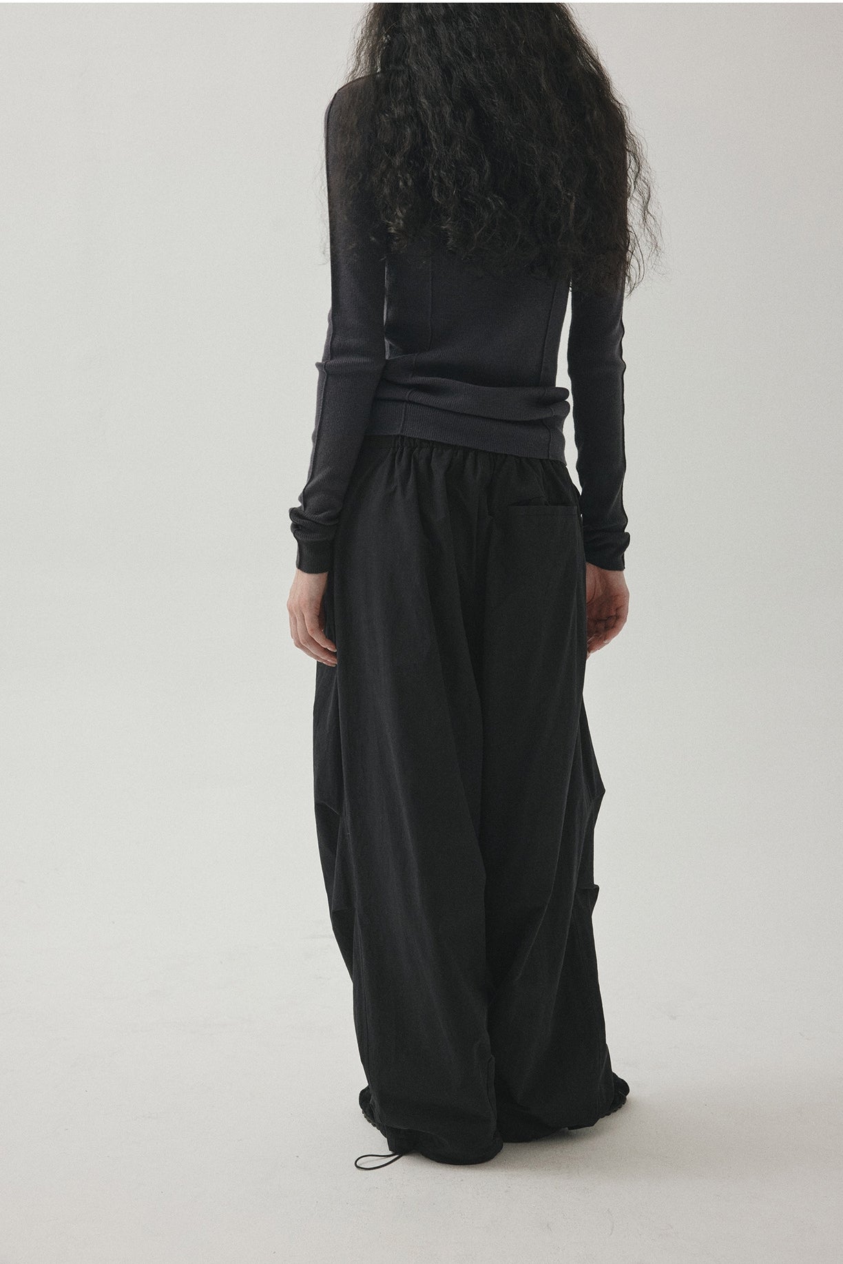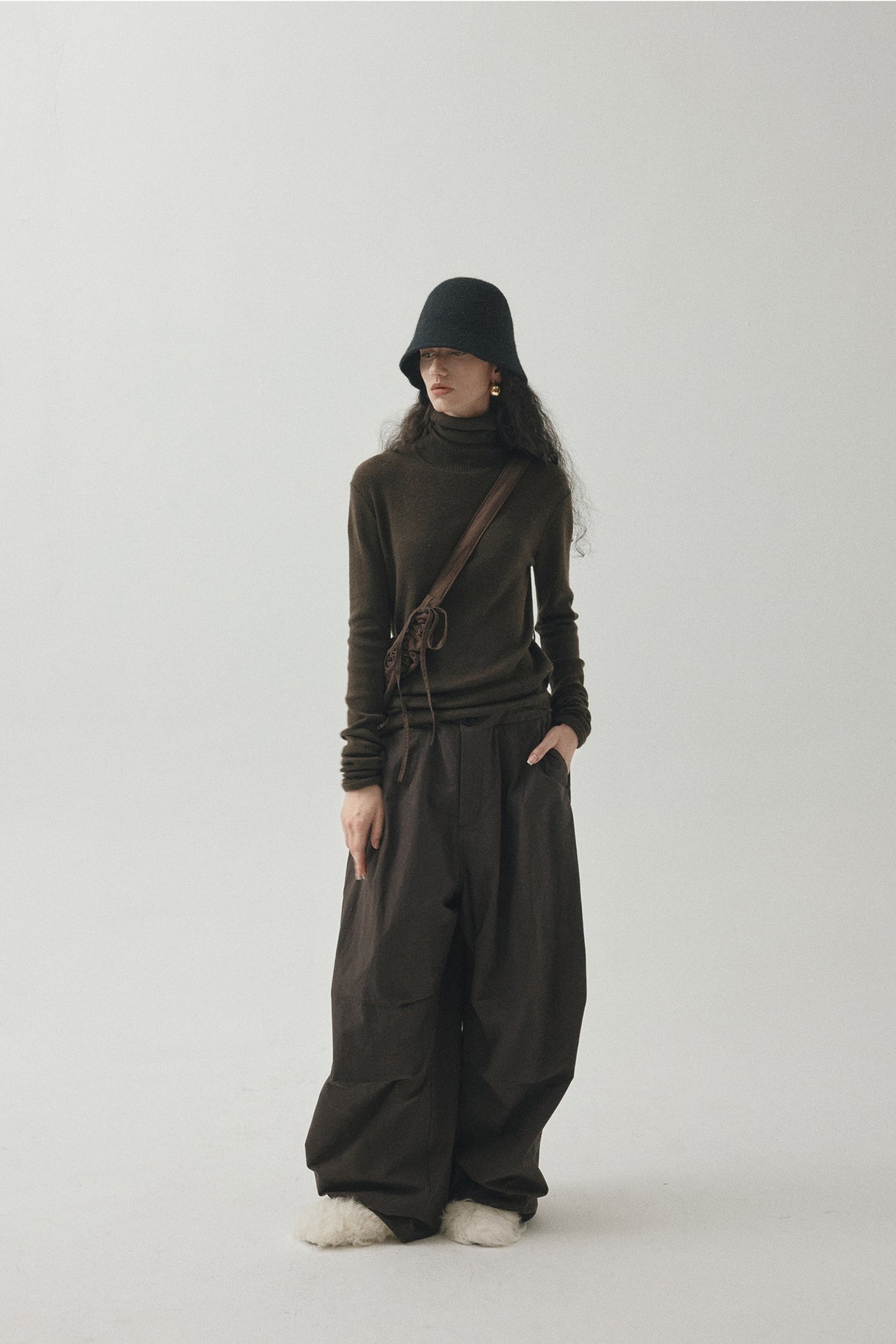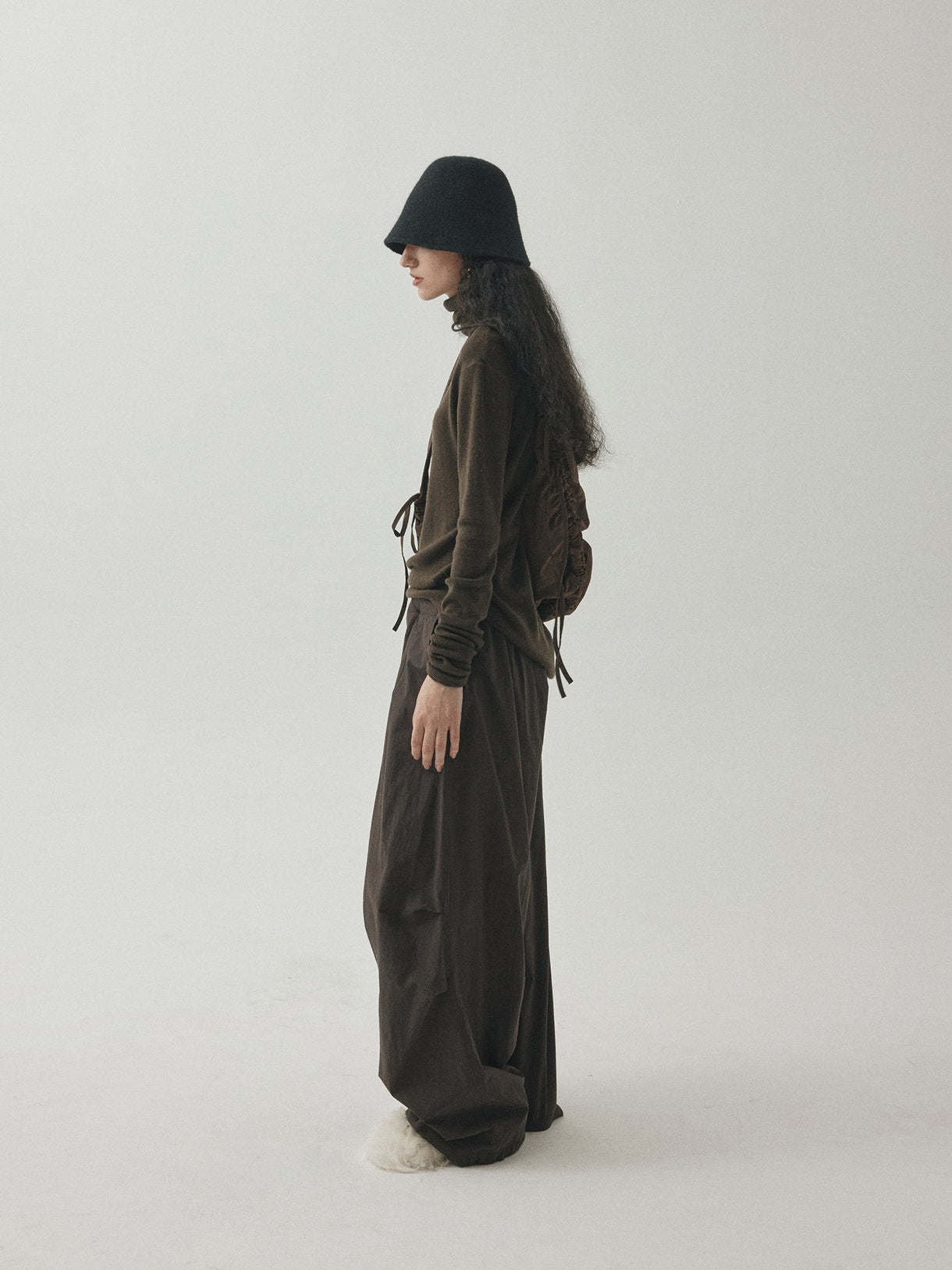 裏起毛の暖かさも兼ね備えた裾ドローストリングワイドパンツ。