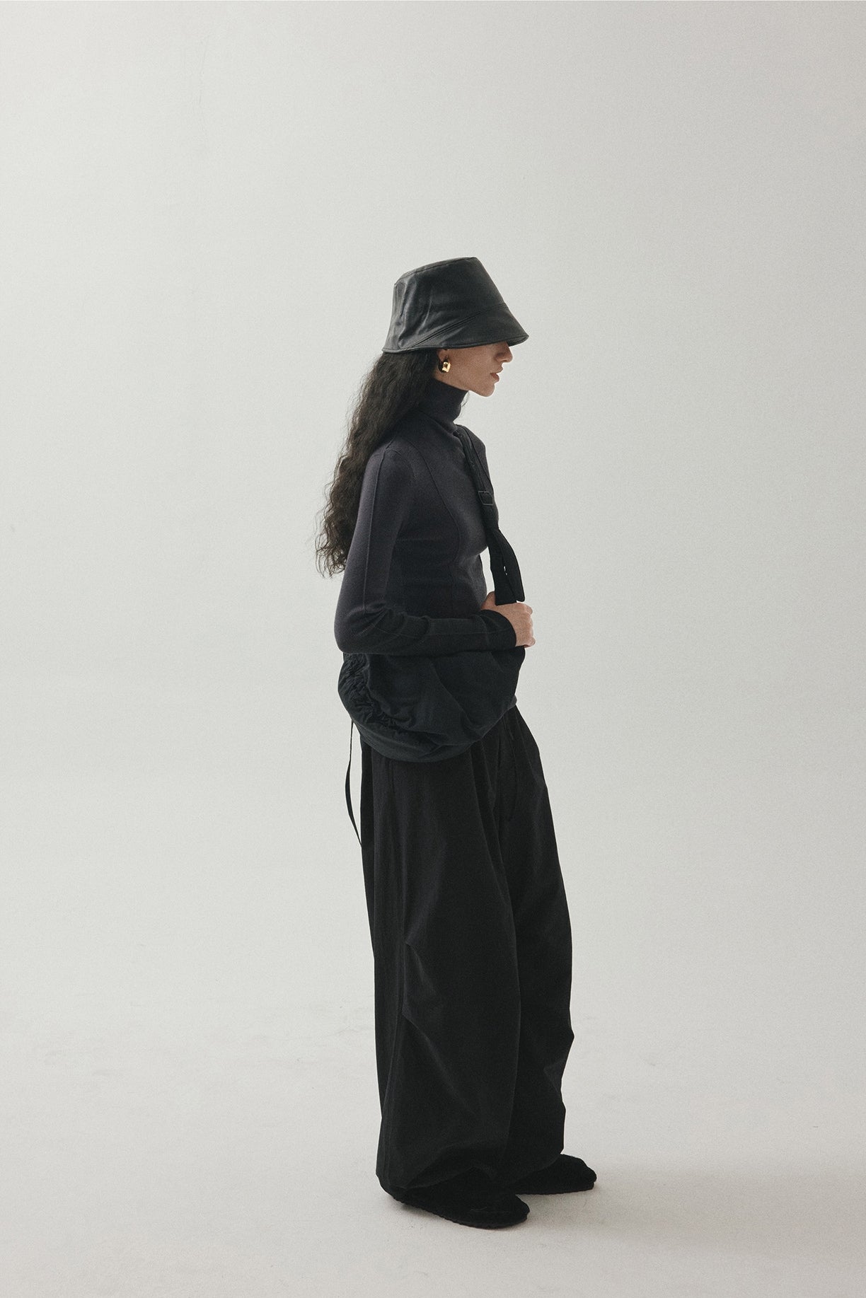 サイドのタックが立体的なシルエットをつくり絶妙なバランスを保ちます。