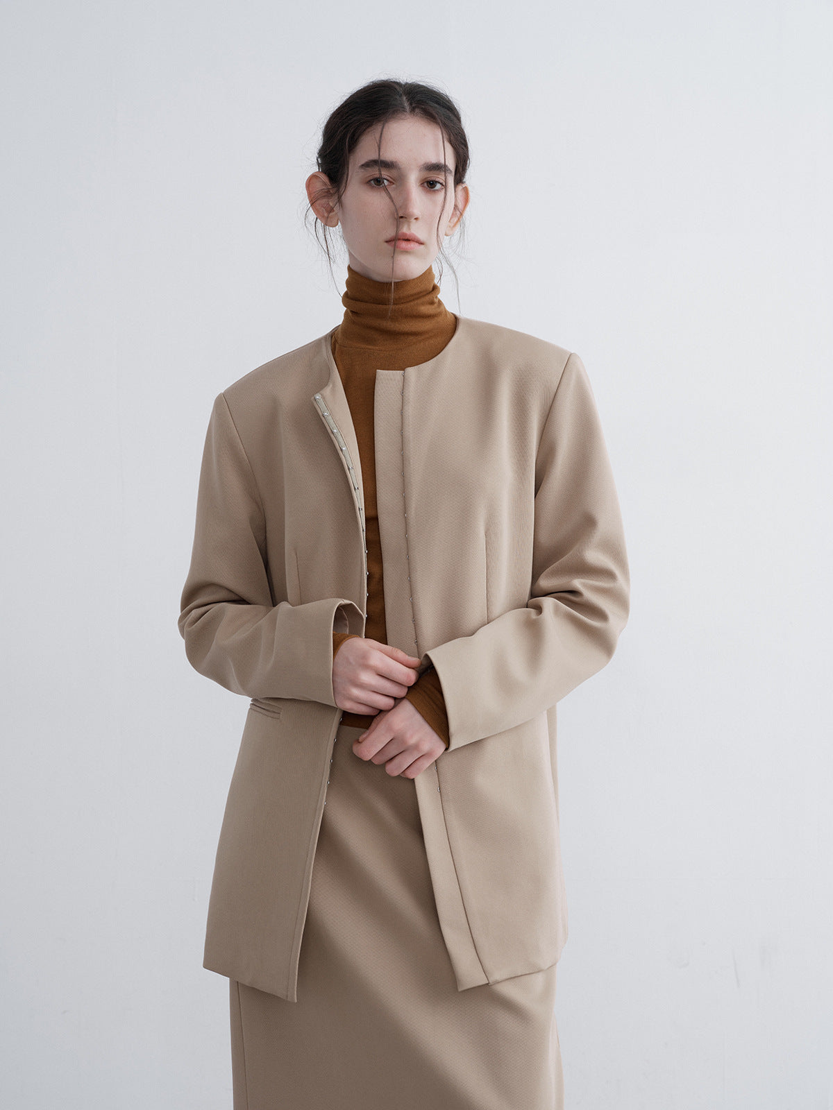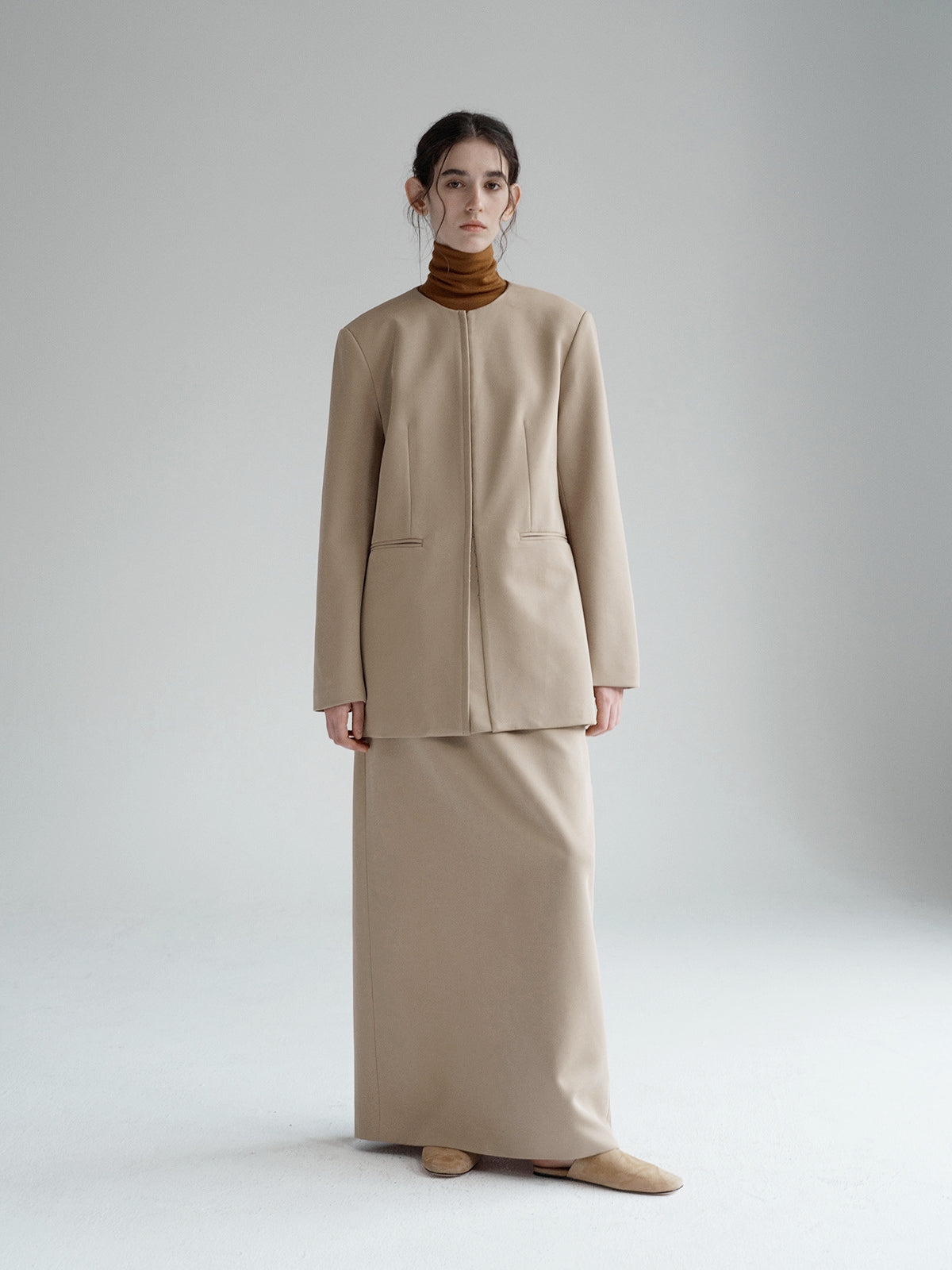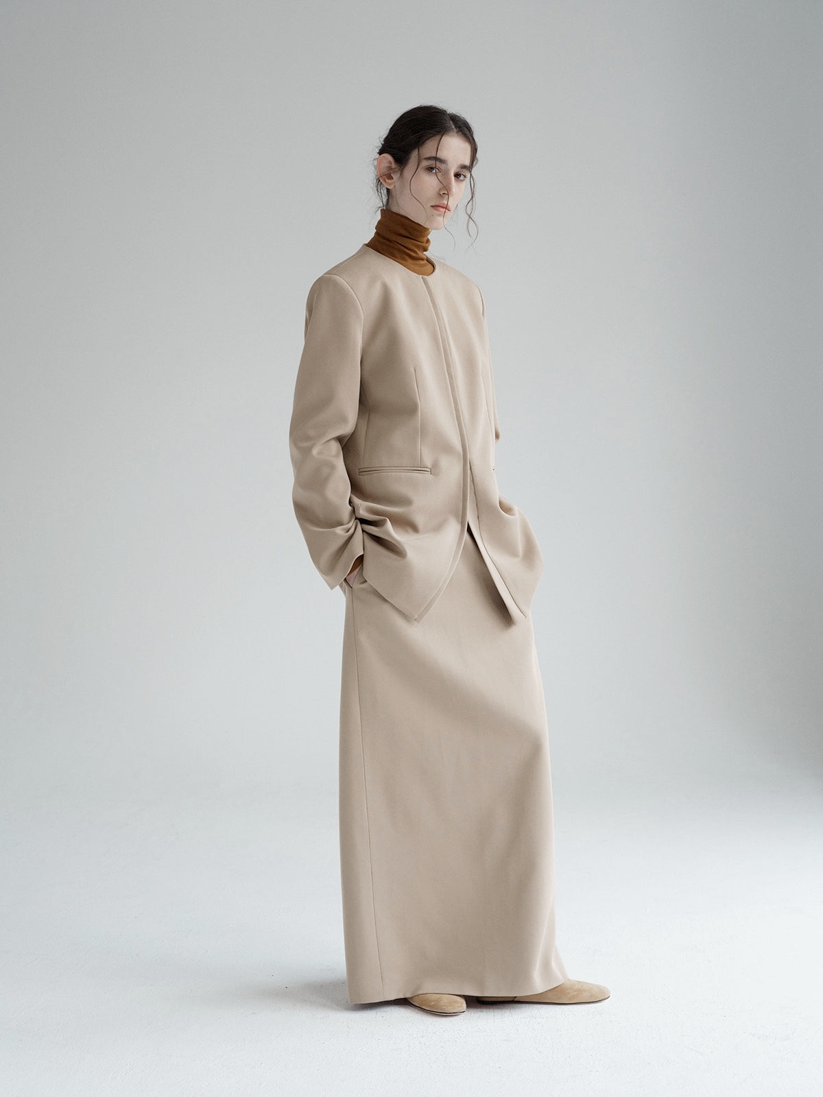 同素材の「ストレートロングスカート」とセットアップでの着用もおすすめです。