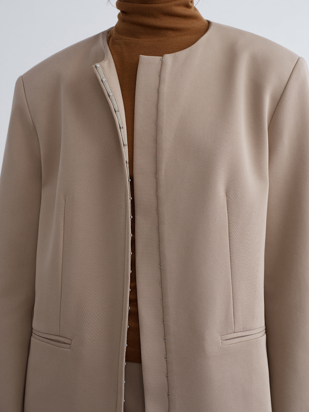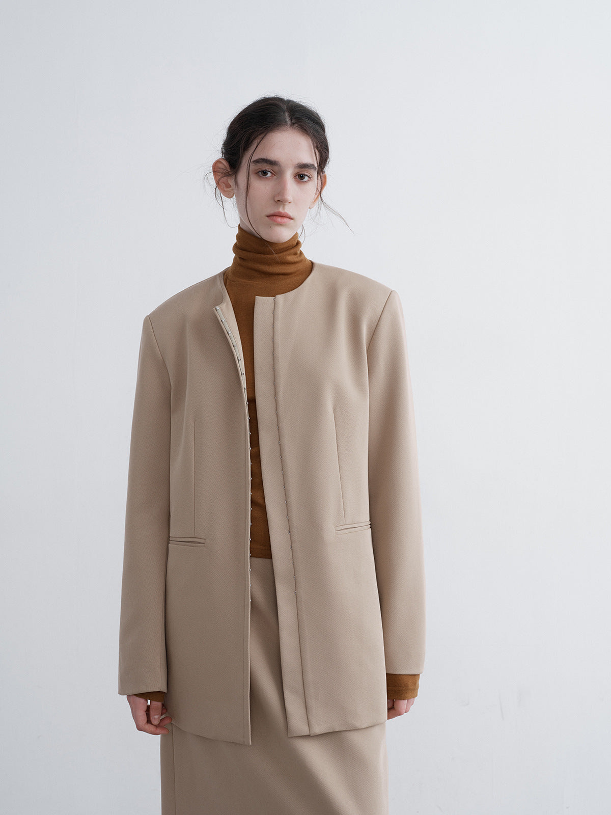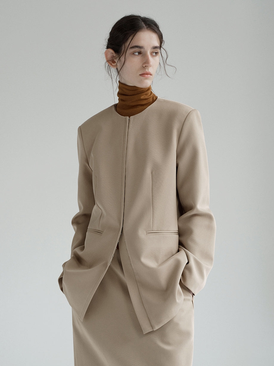 同素材の「ストレートロングスカート」とセットアップでの着用もおすすめです。