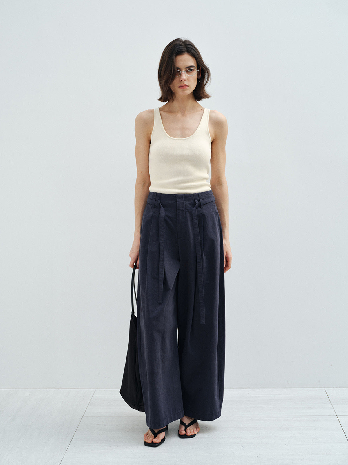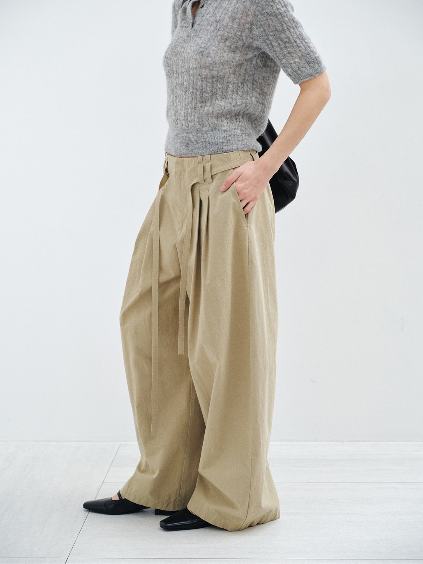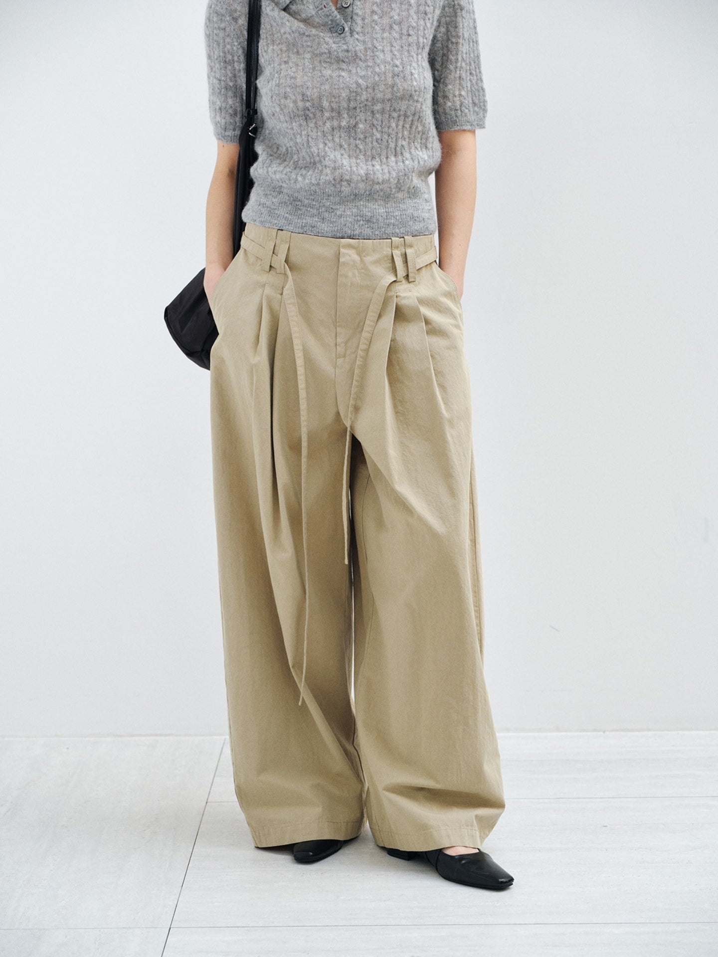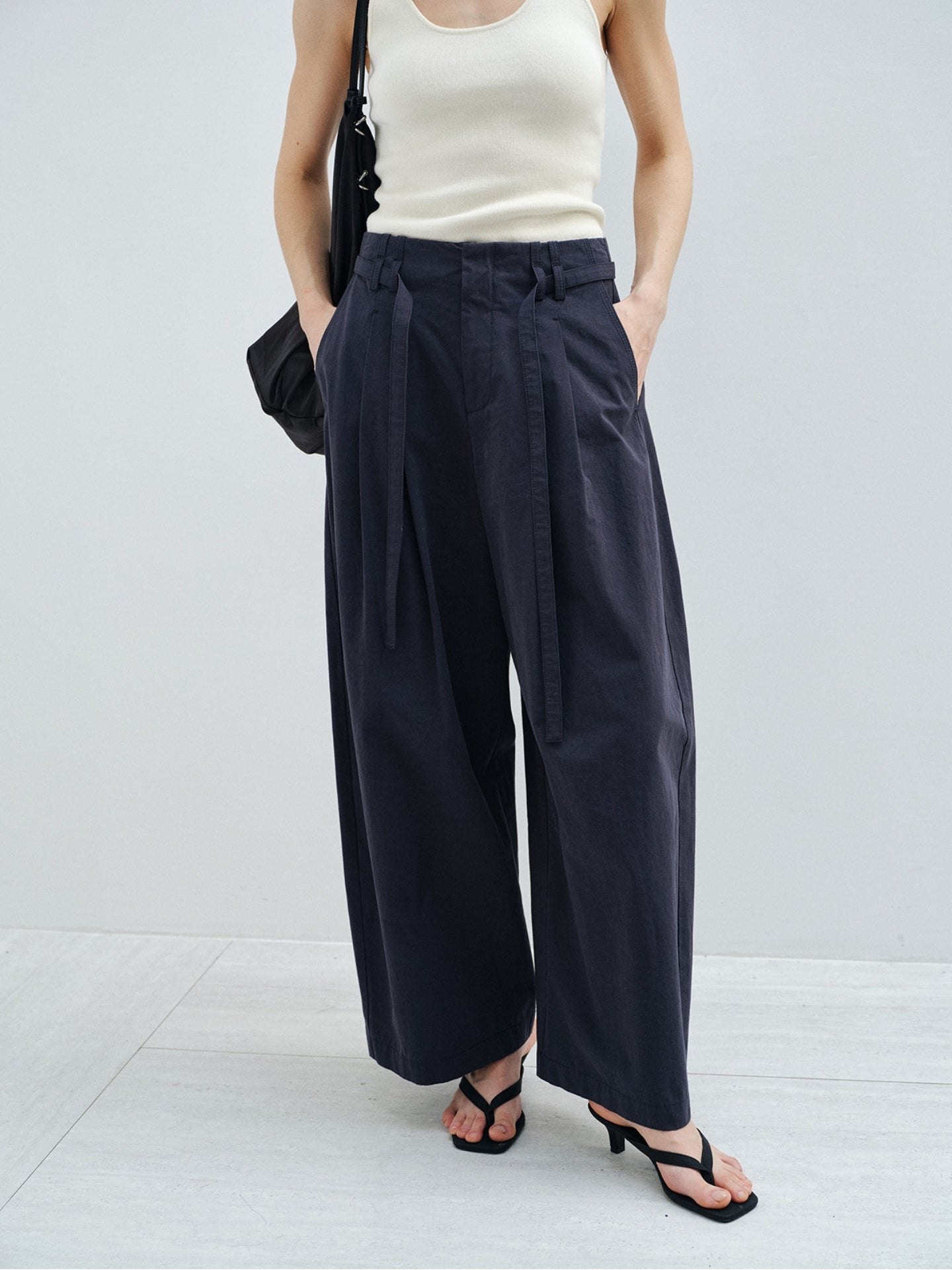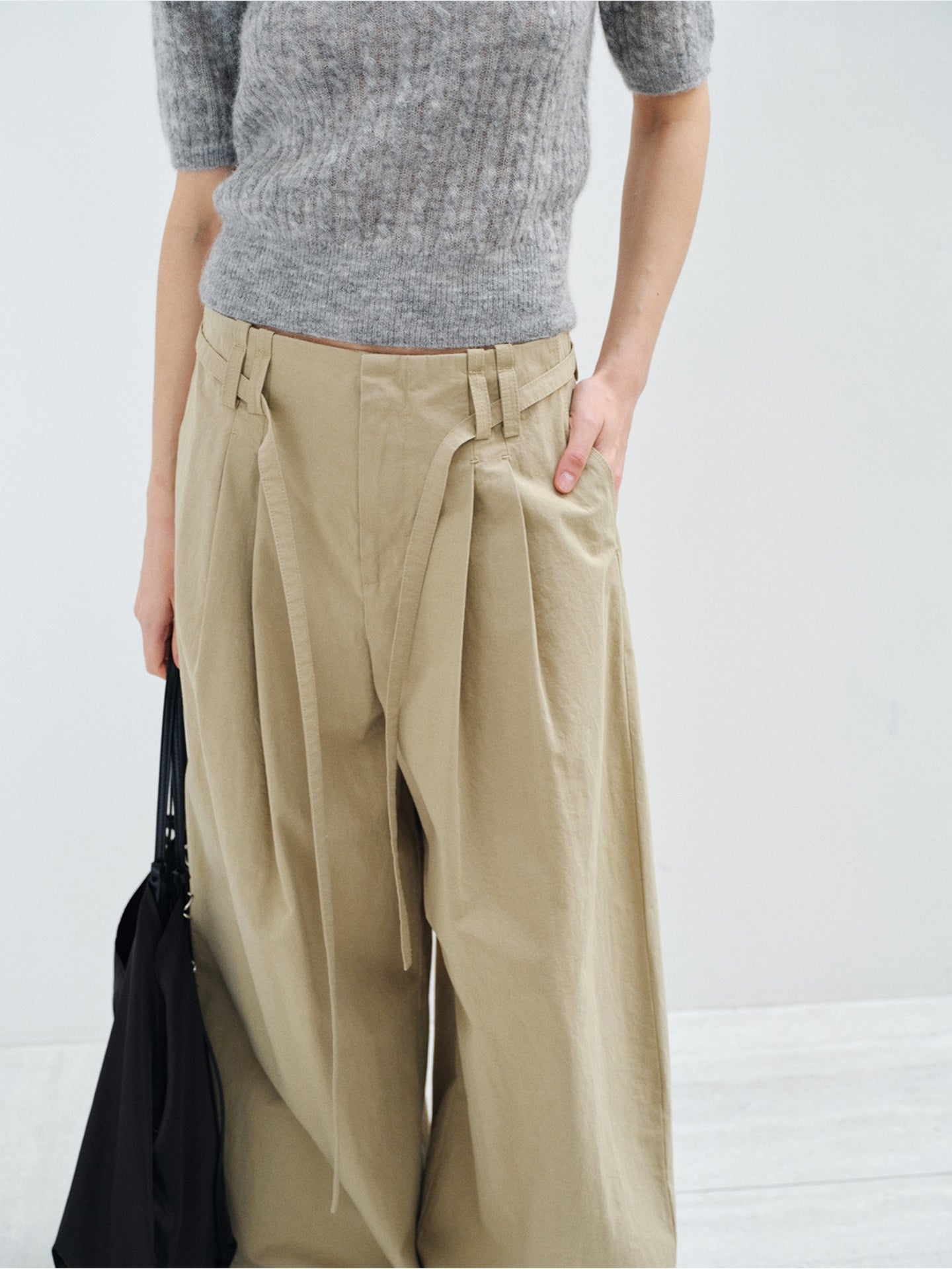 独創的なシルエットが主役級の存在感を放つ、ベルトデザイン・タックワイドパンツ。