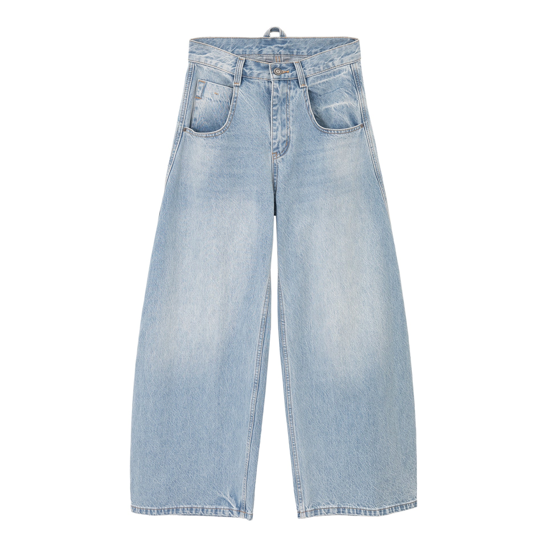 バックスタイルには、通常とは異なる五角形のポケットや、逆U字型のベルトループなど、こだわりのディテールが詰まった一本。