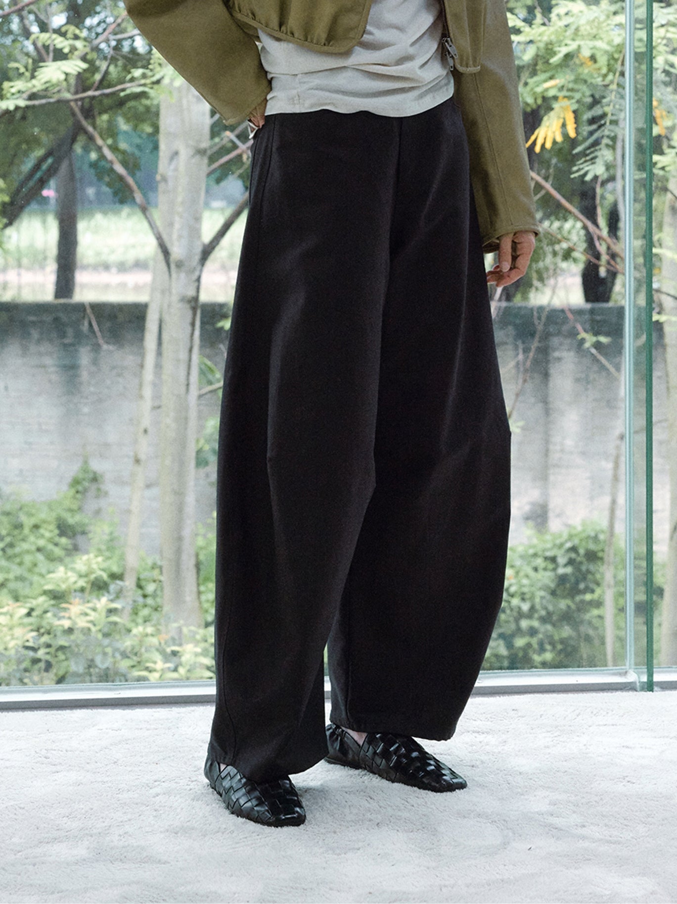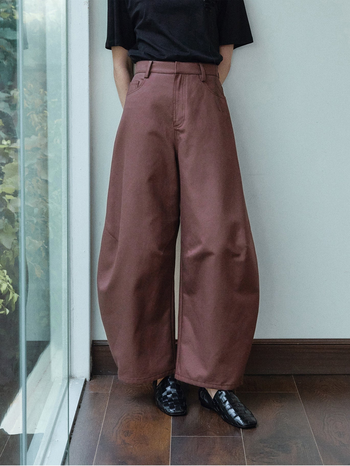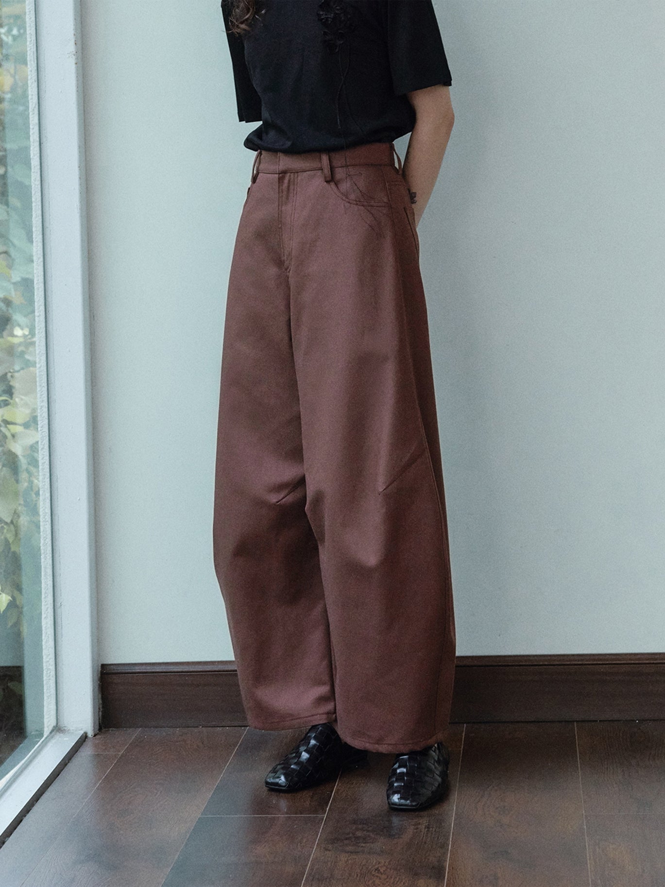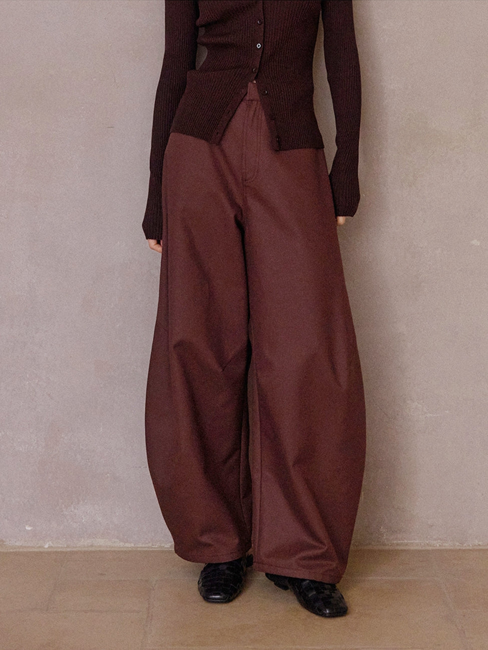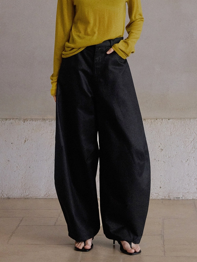 裾に向かってふっくらと広がる立体的なカーブシルエットが特徴のパンツ。