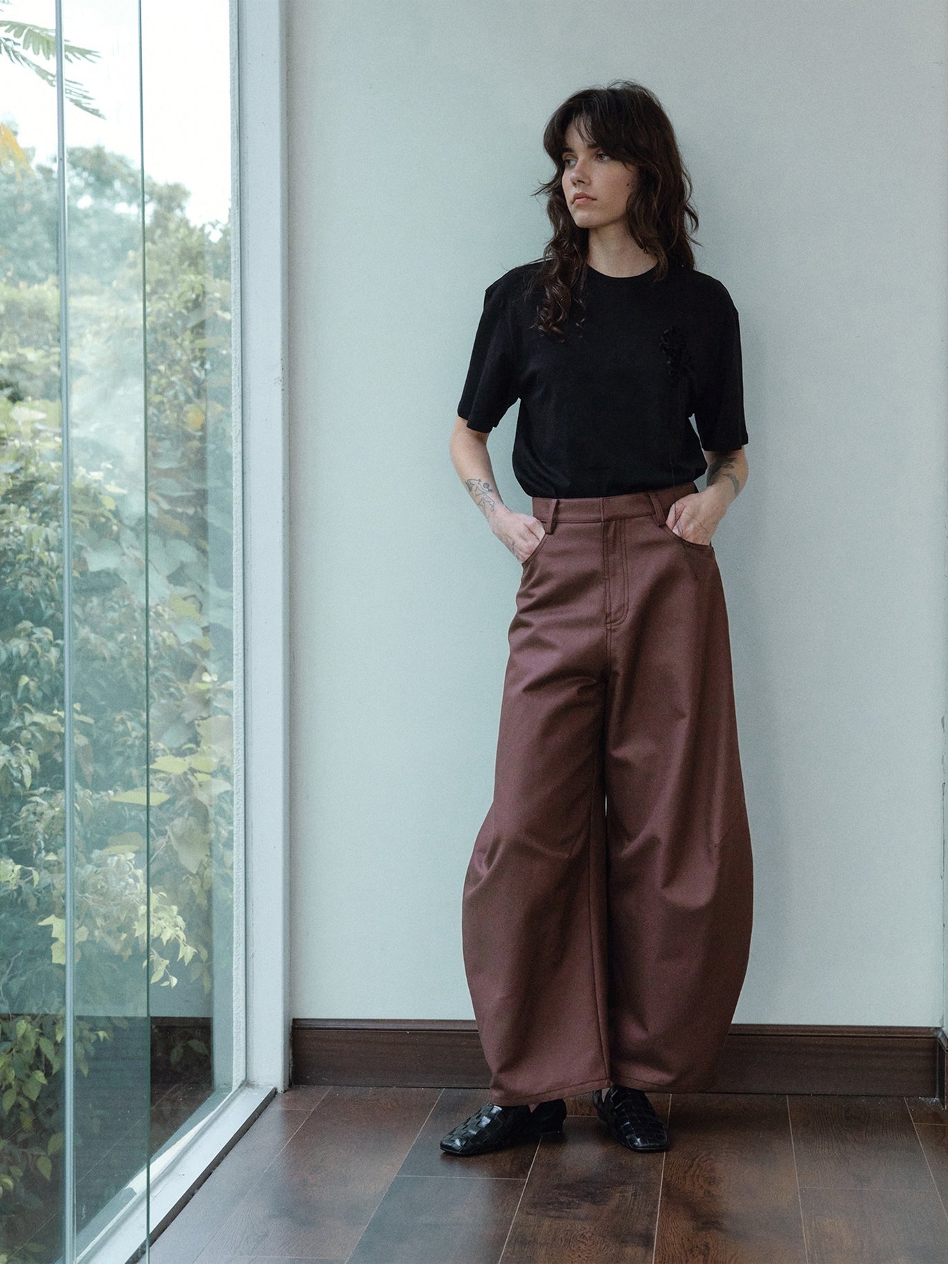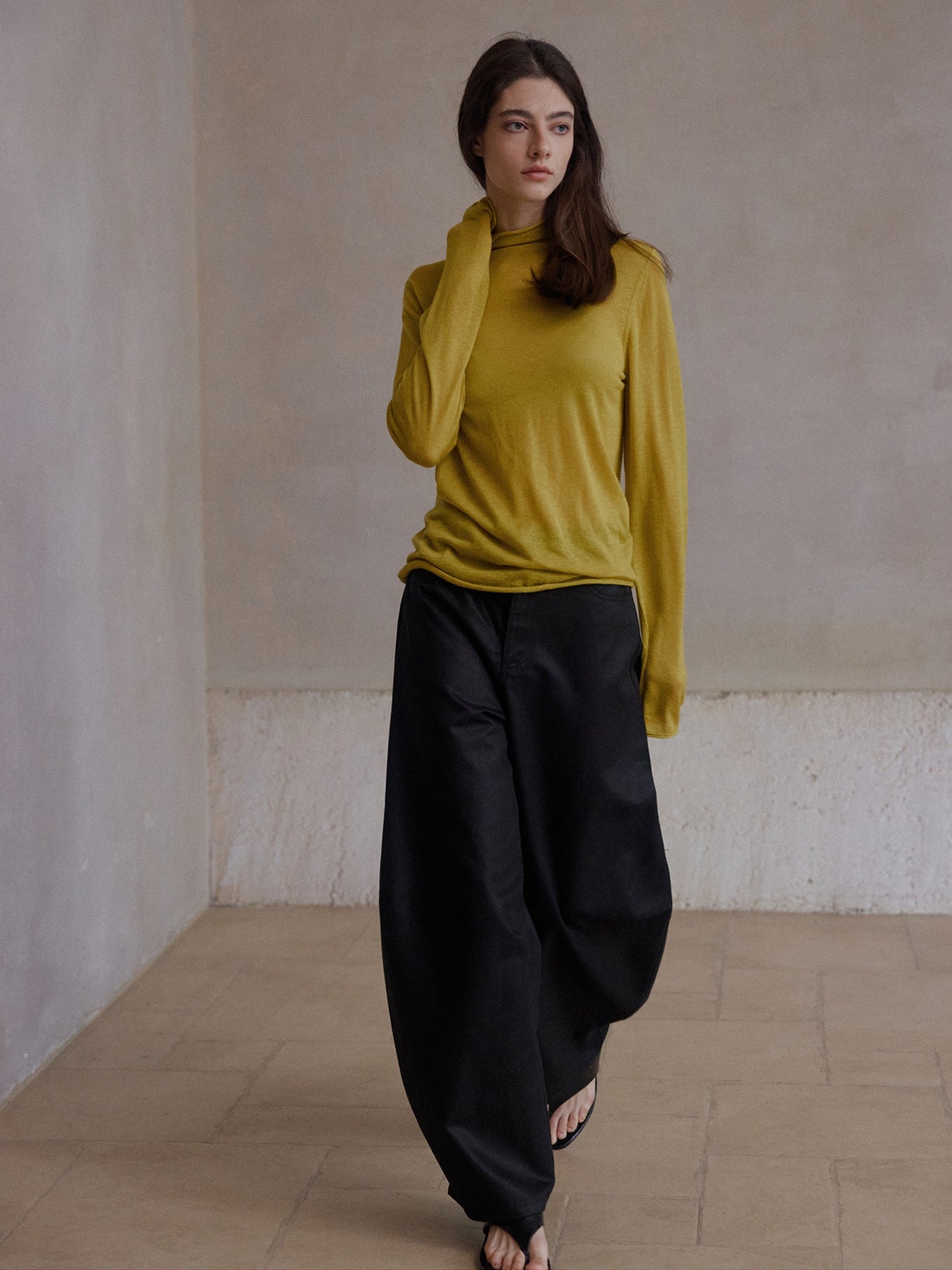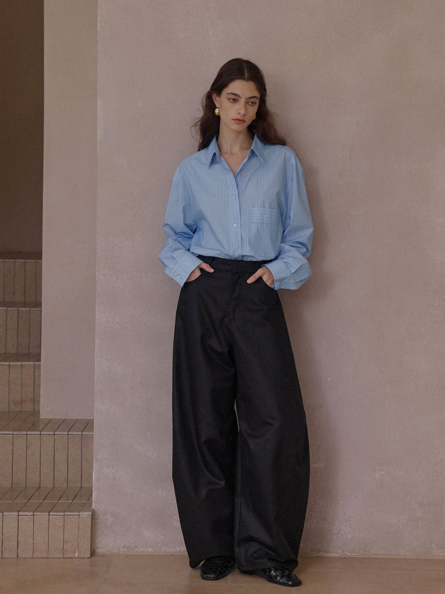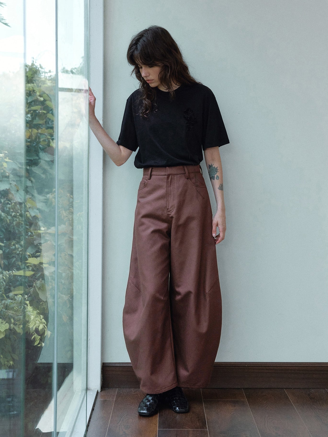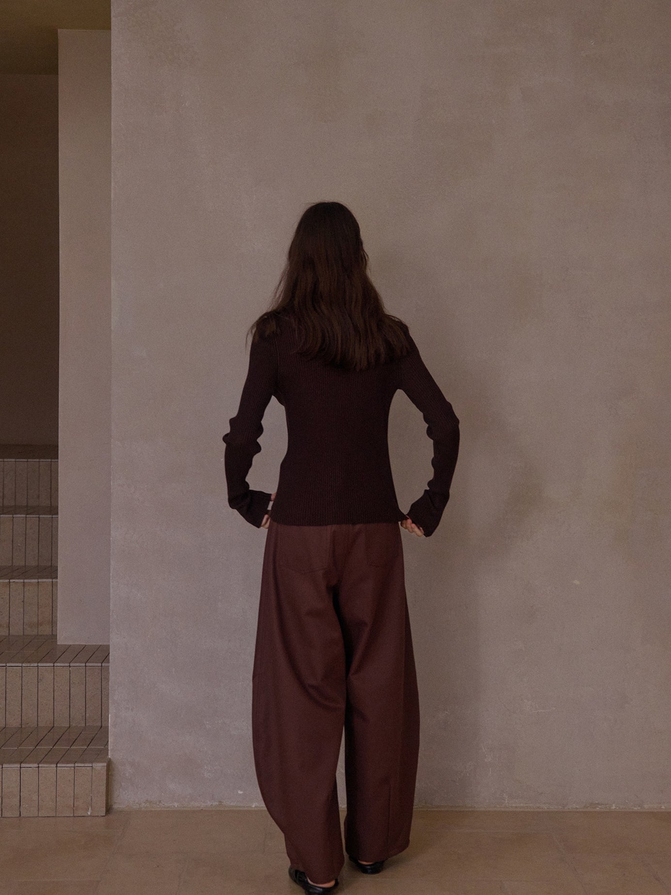 裾に向かってふっくらと広がる立体的なカーブシルエットが特徴のパンツ。