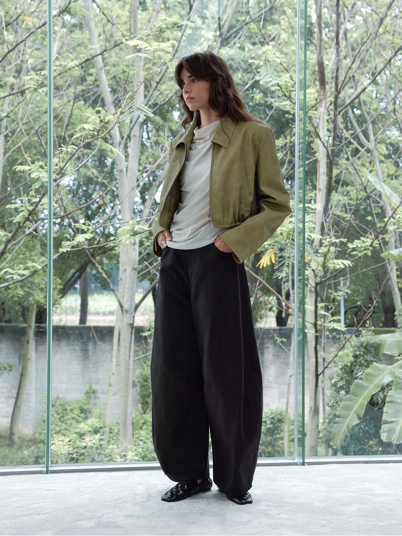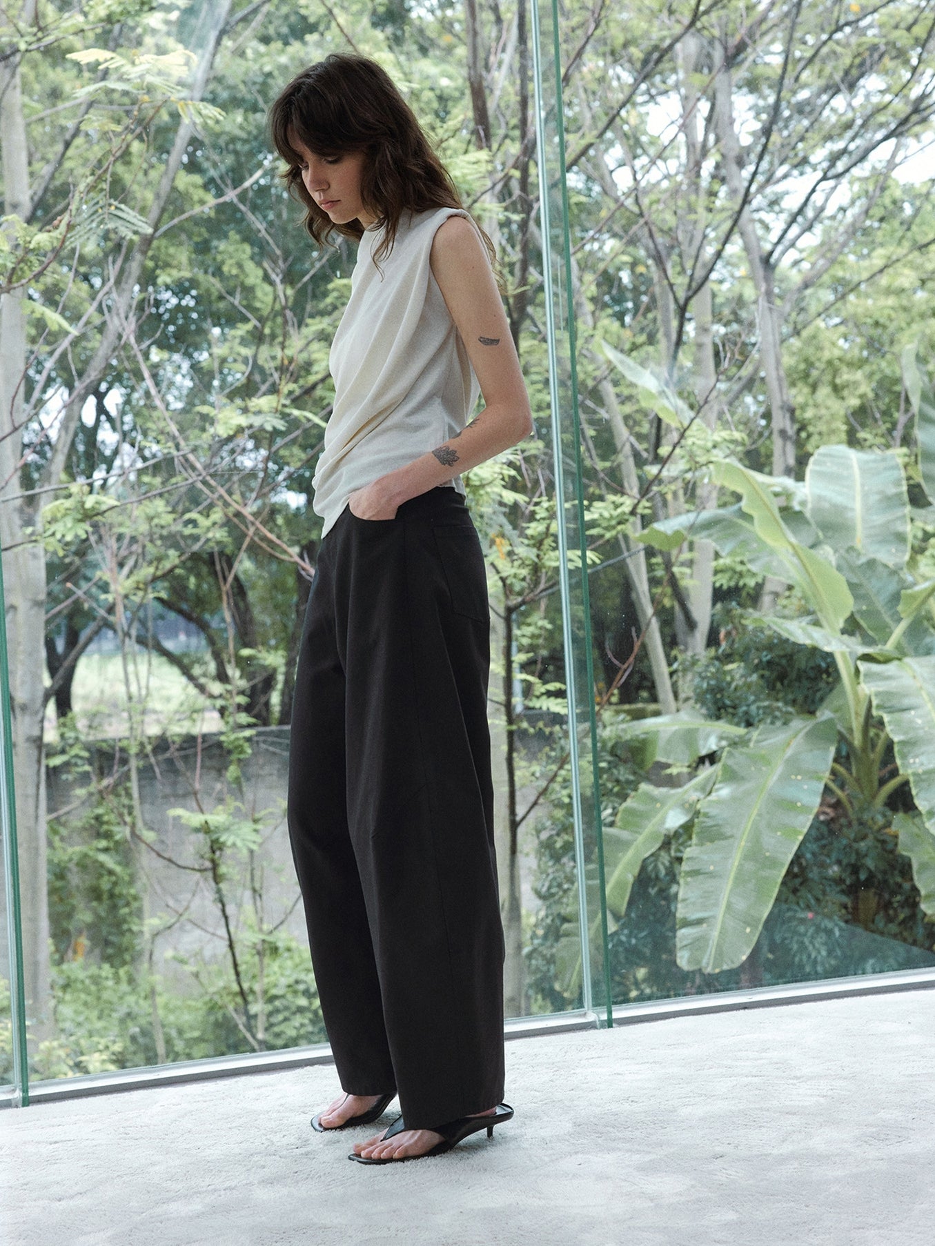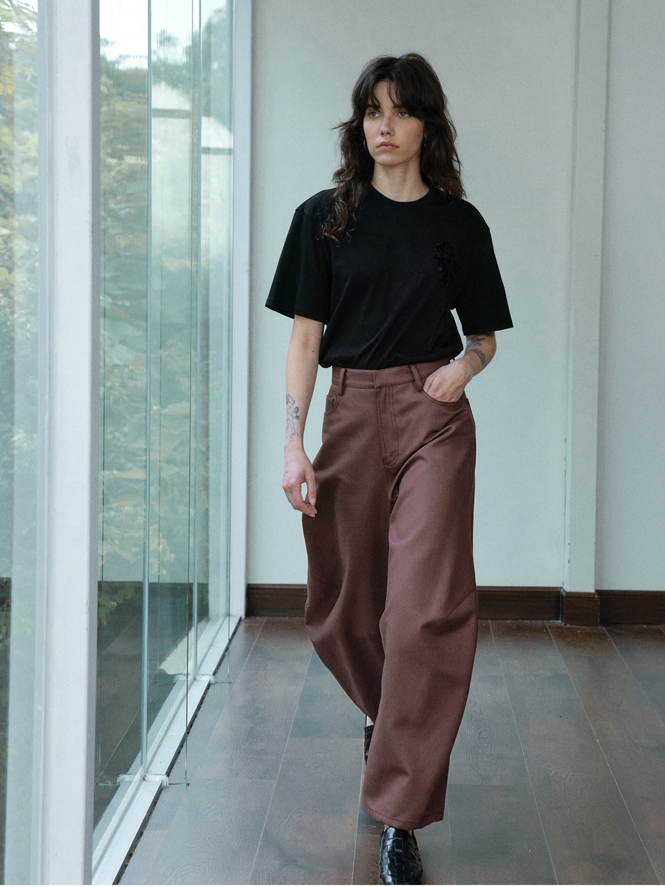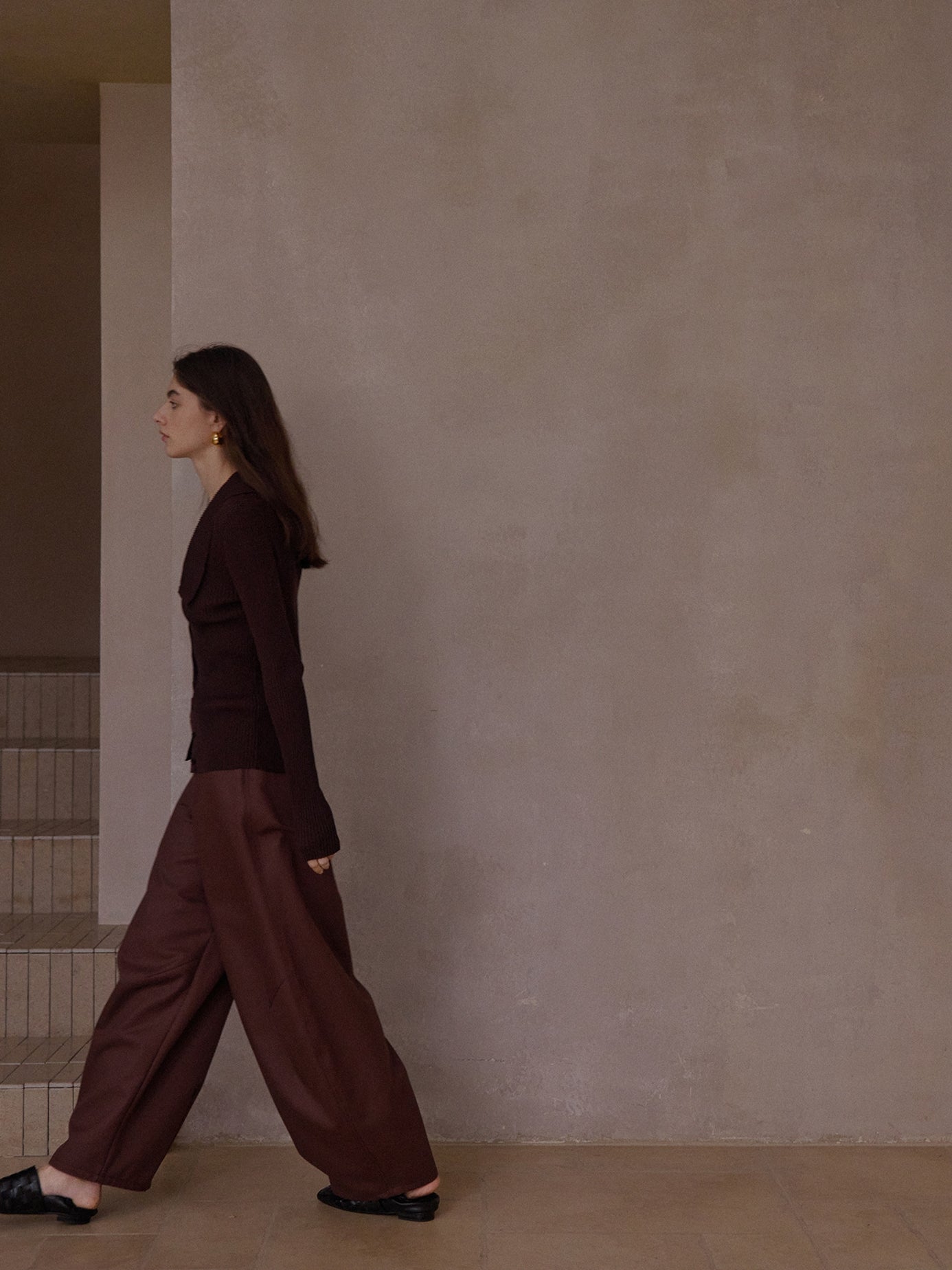 裾に向かってふっくらと広がる立体的なカーブシルエットが特徴のパンツ。