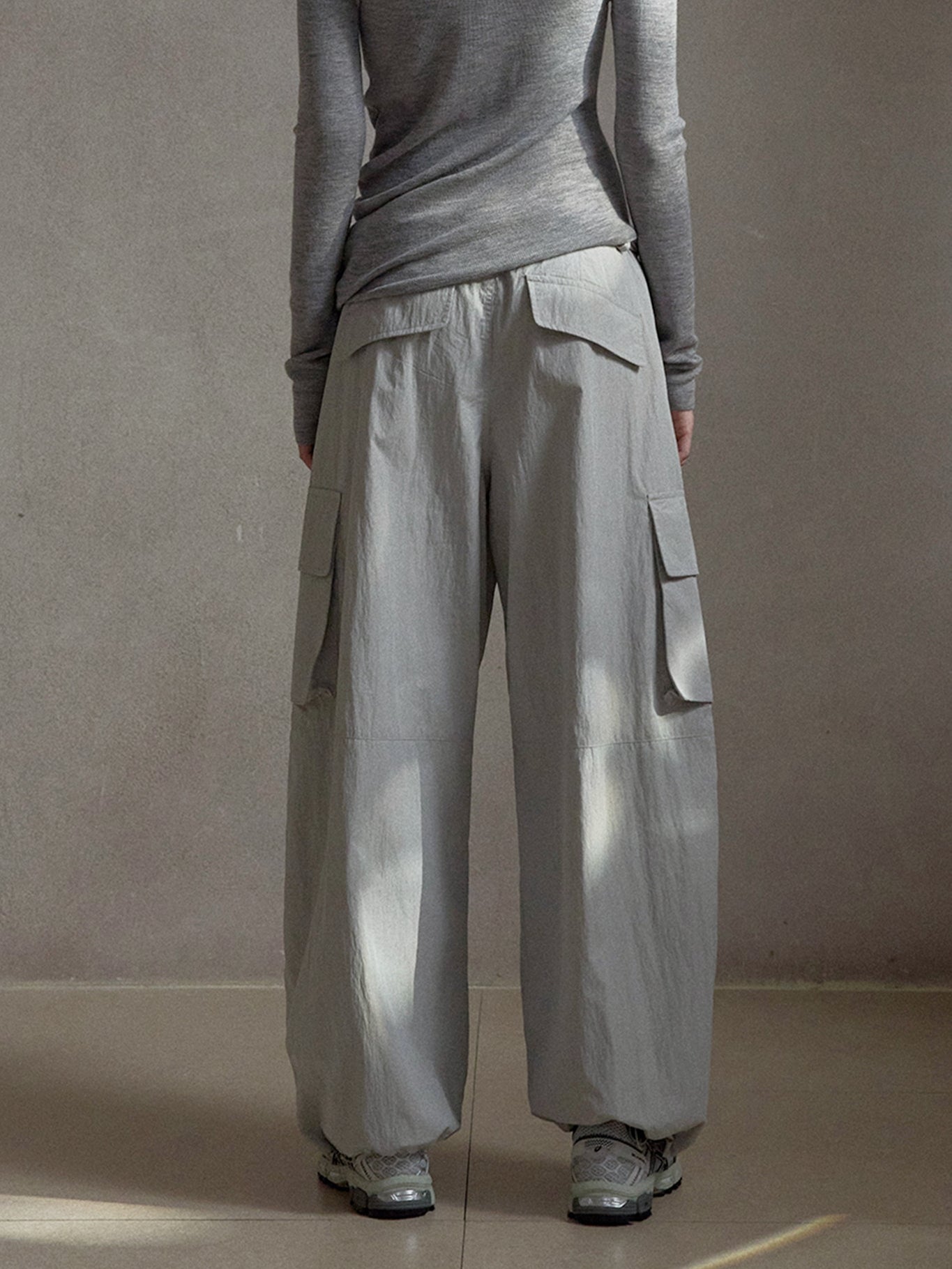 ドローストリングナイロンワイドカーゴパンツ