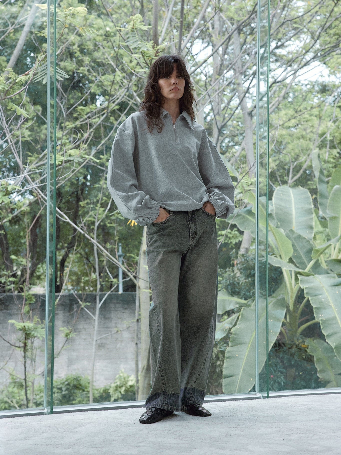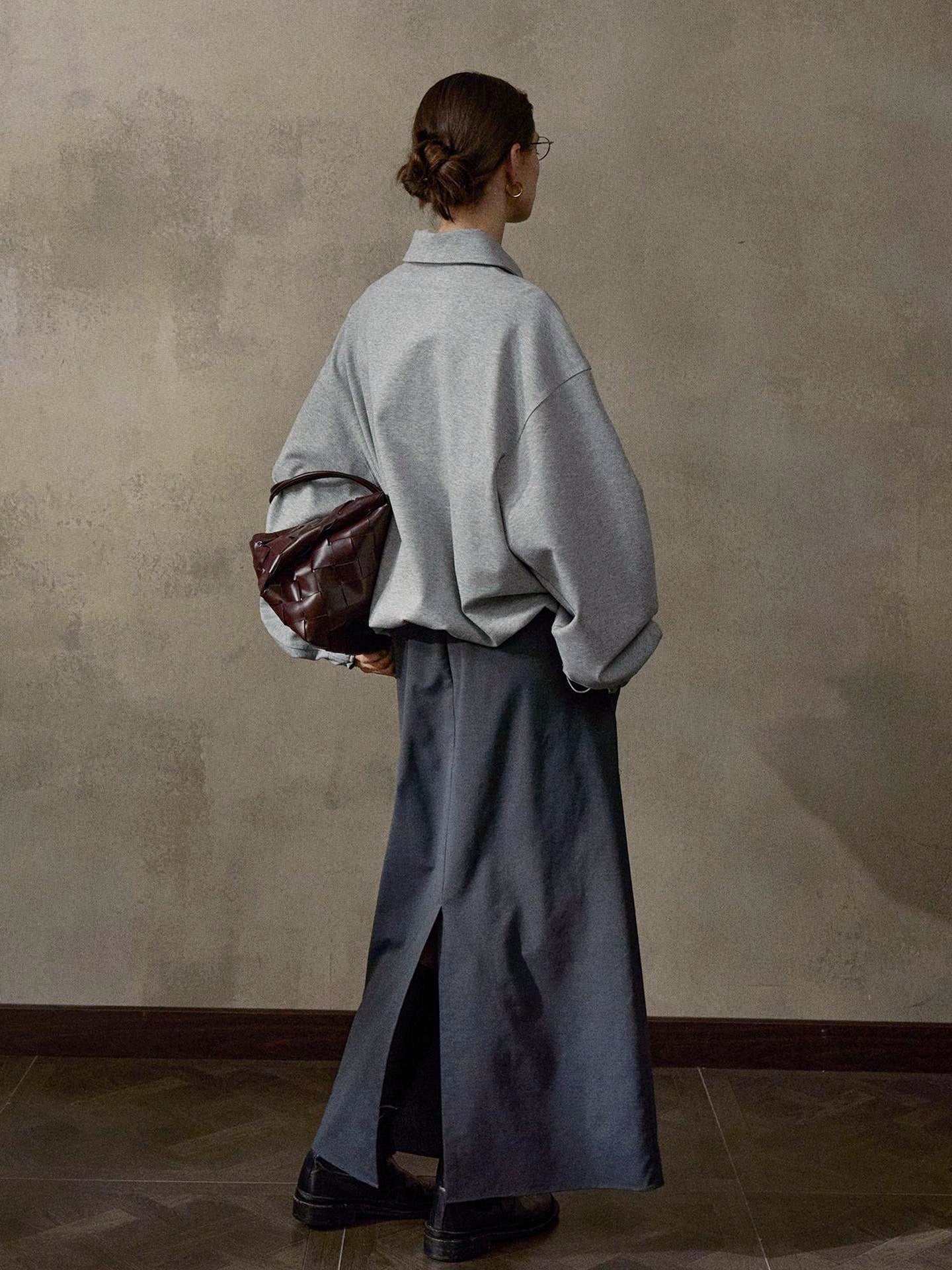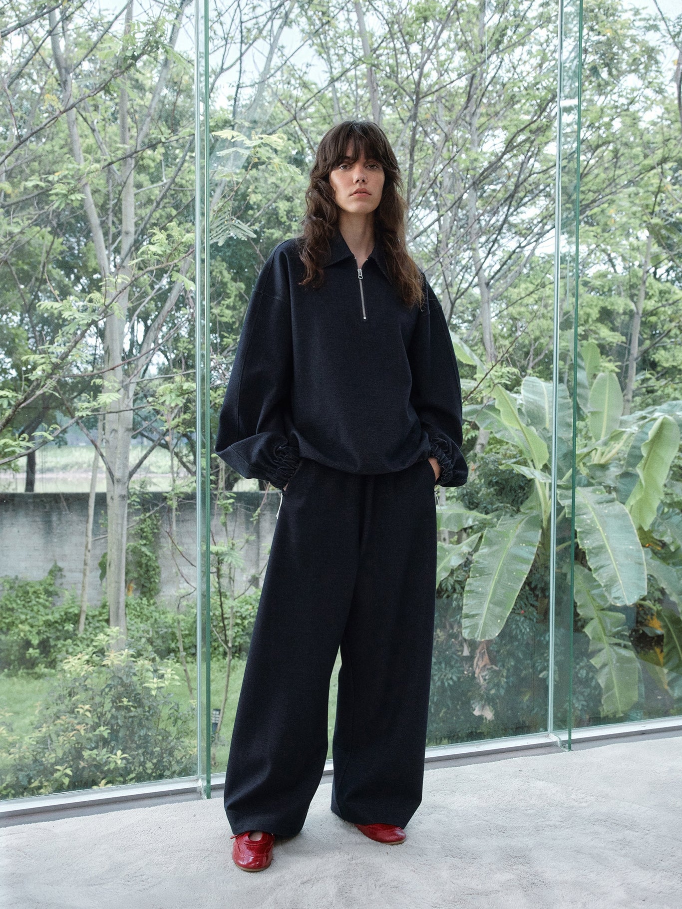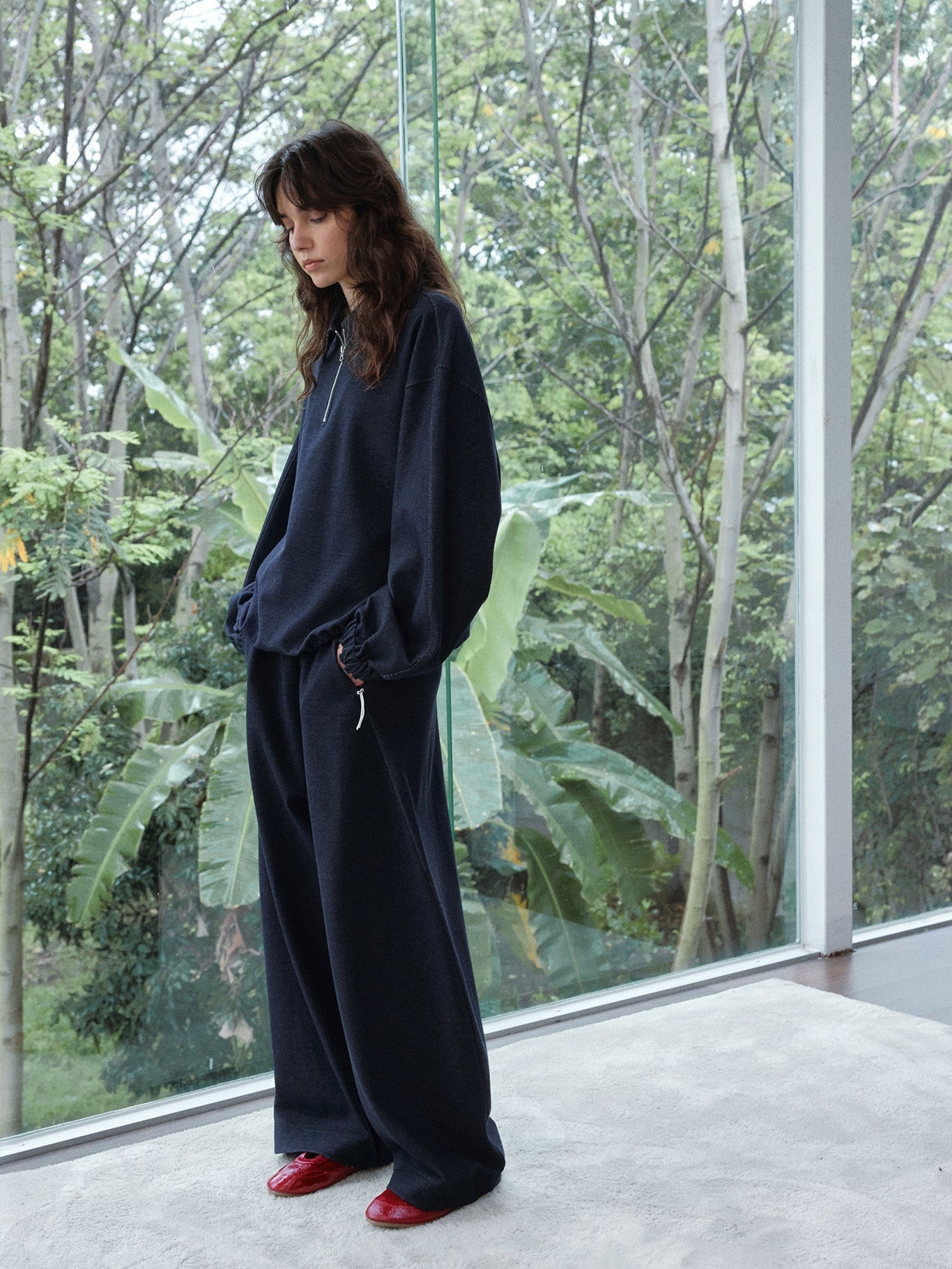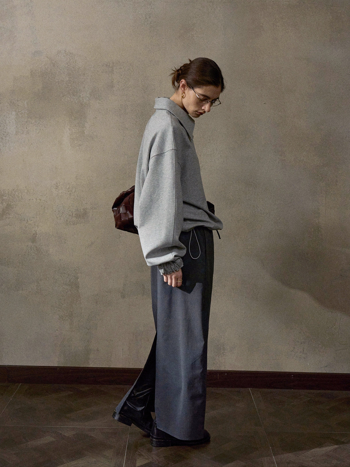 同素材の「カーブシルエット スウェットパンツ」とセットアップで着用可能。