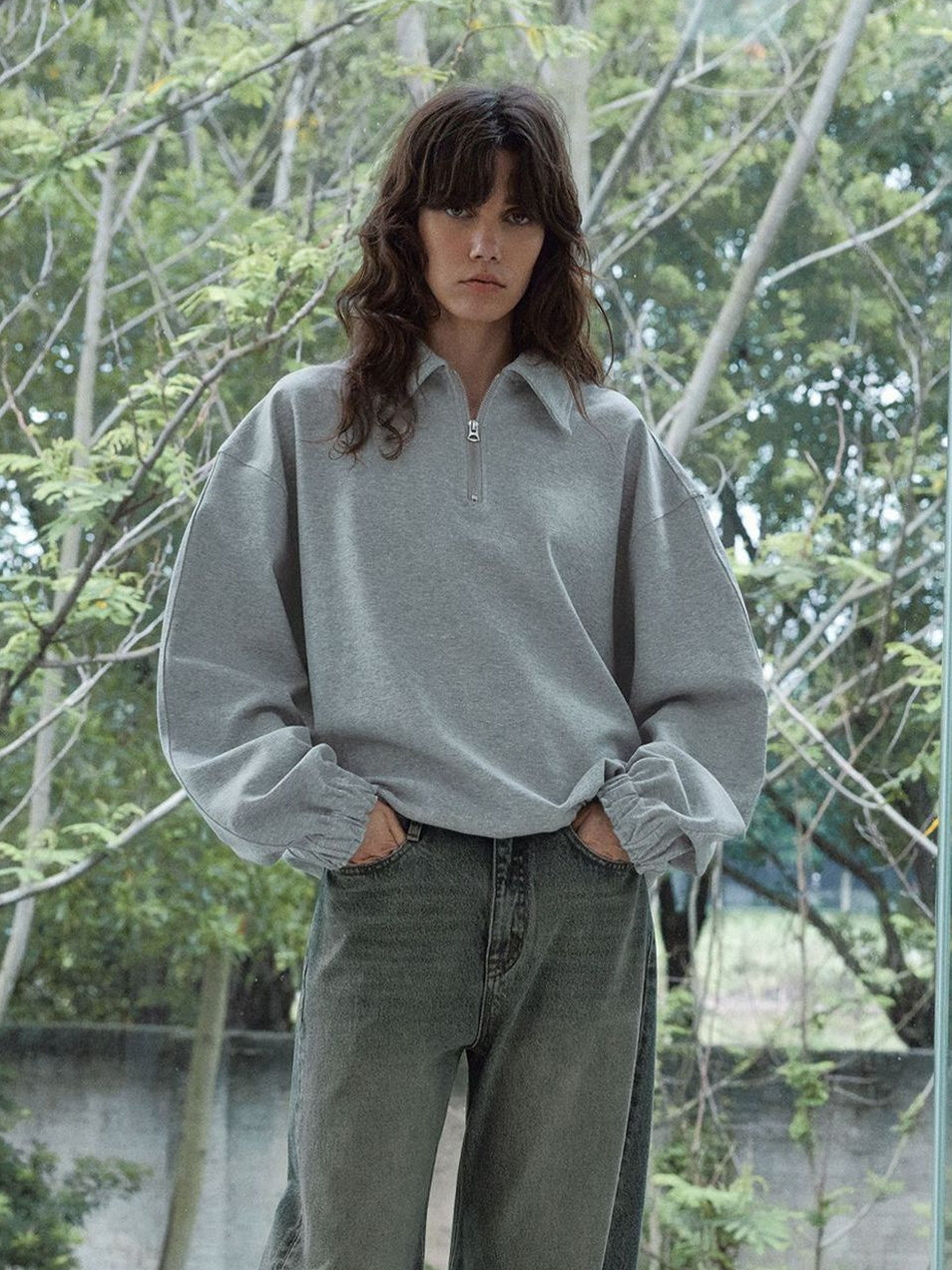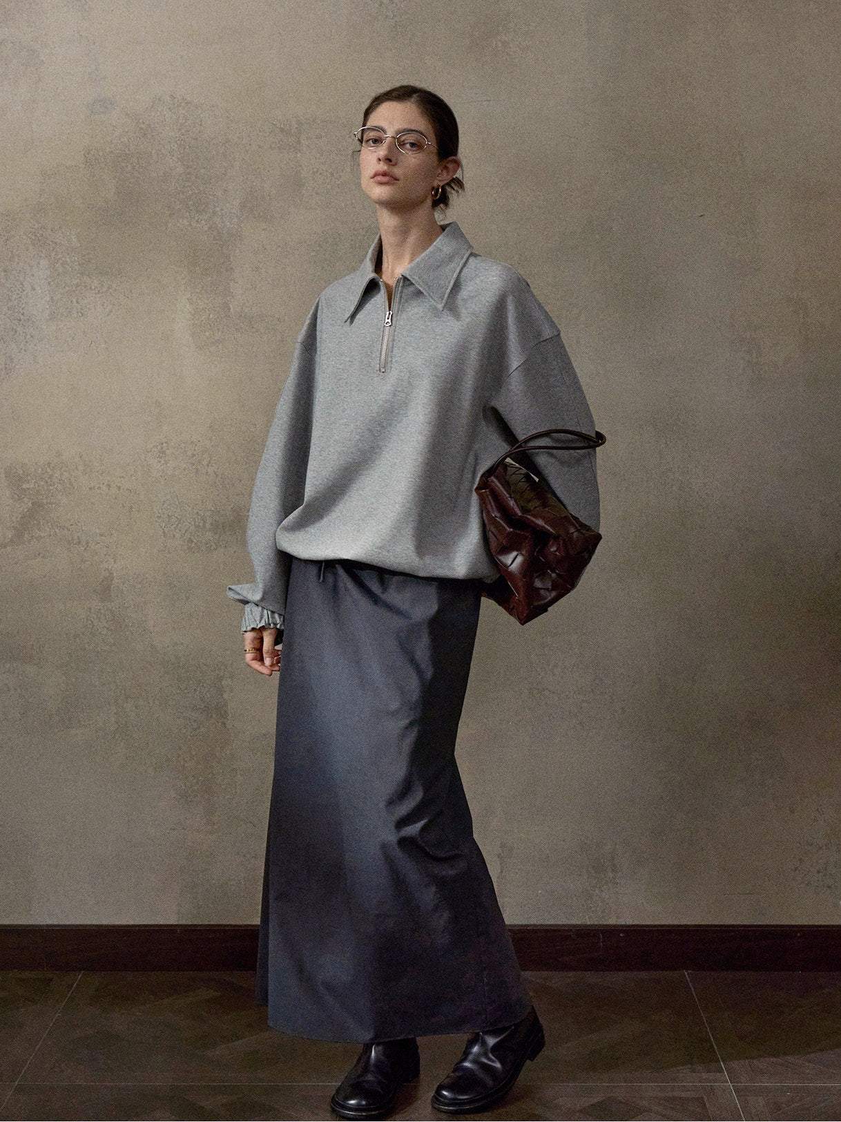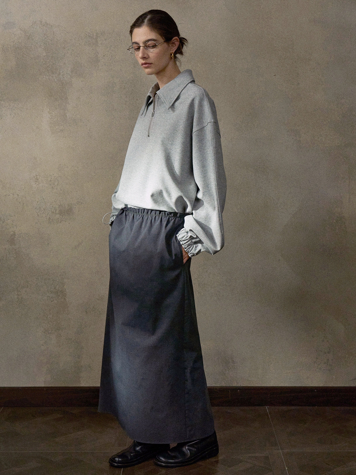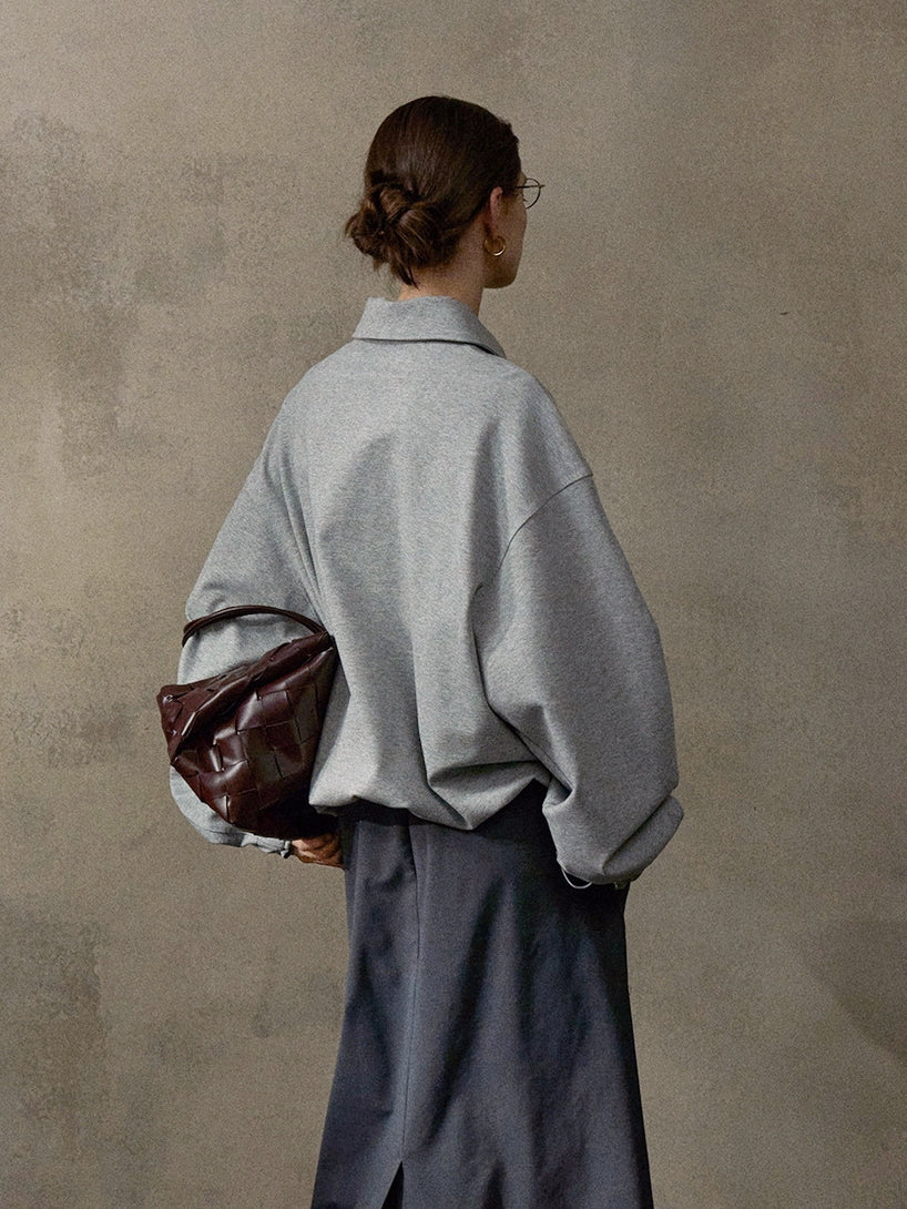 ドロップショルダーで抜け感を演出しつつ、袖口のゴム仕様でシルエットにメリハリをプラス。