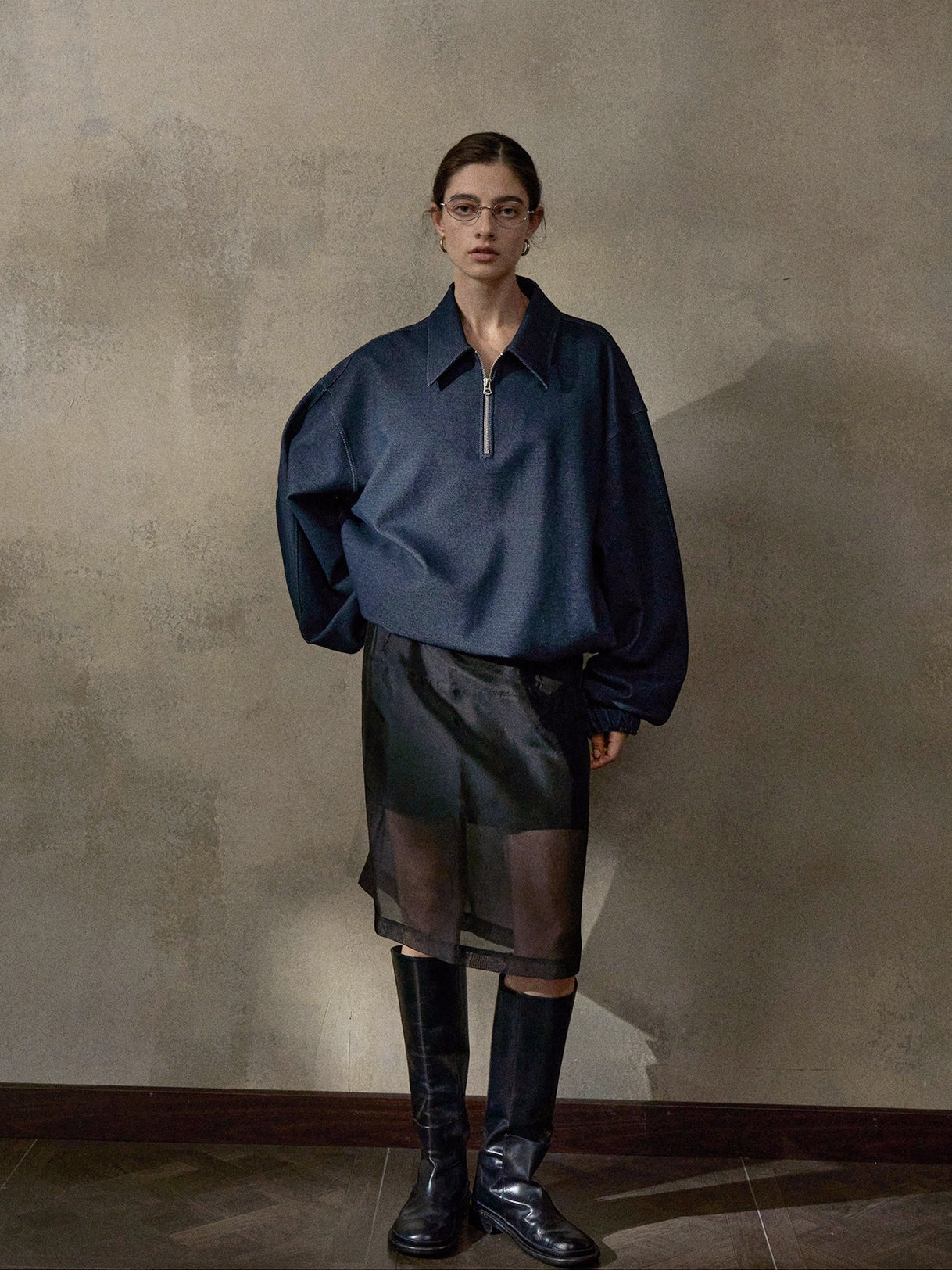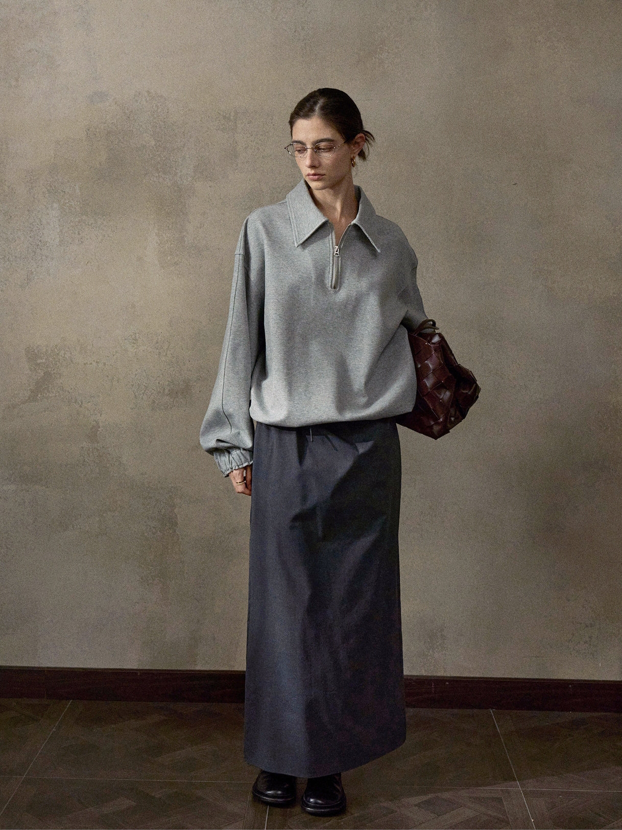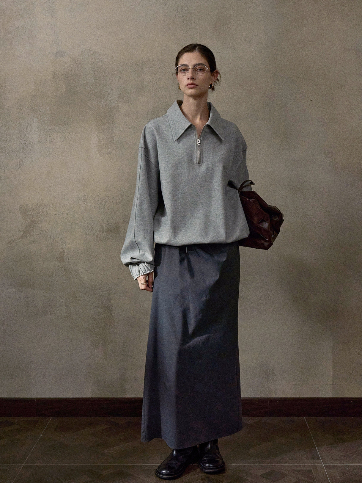 ドロップショルダーで抜け感を演出しつつ、袖口のゴム仕様でシルエットにメリハリをプラス。