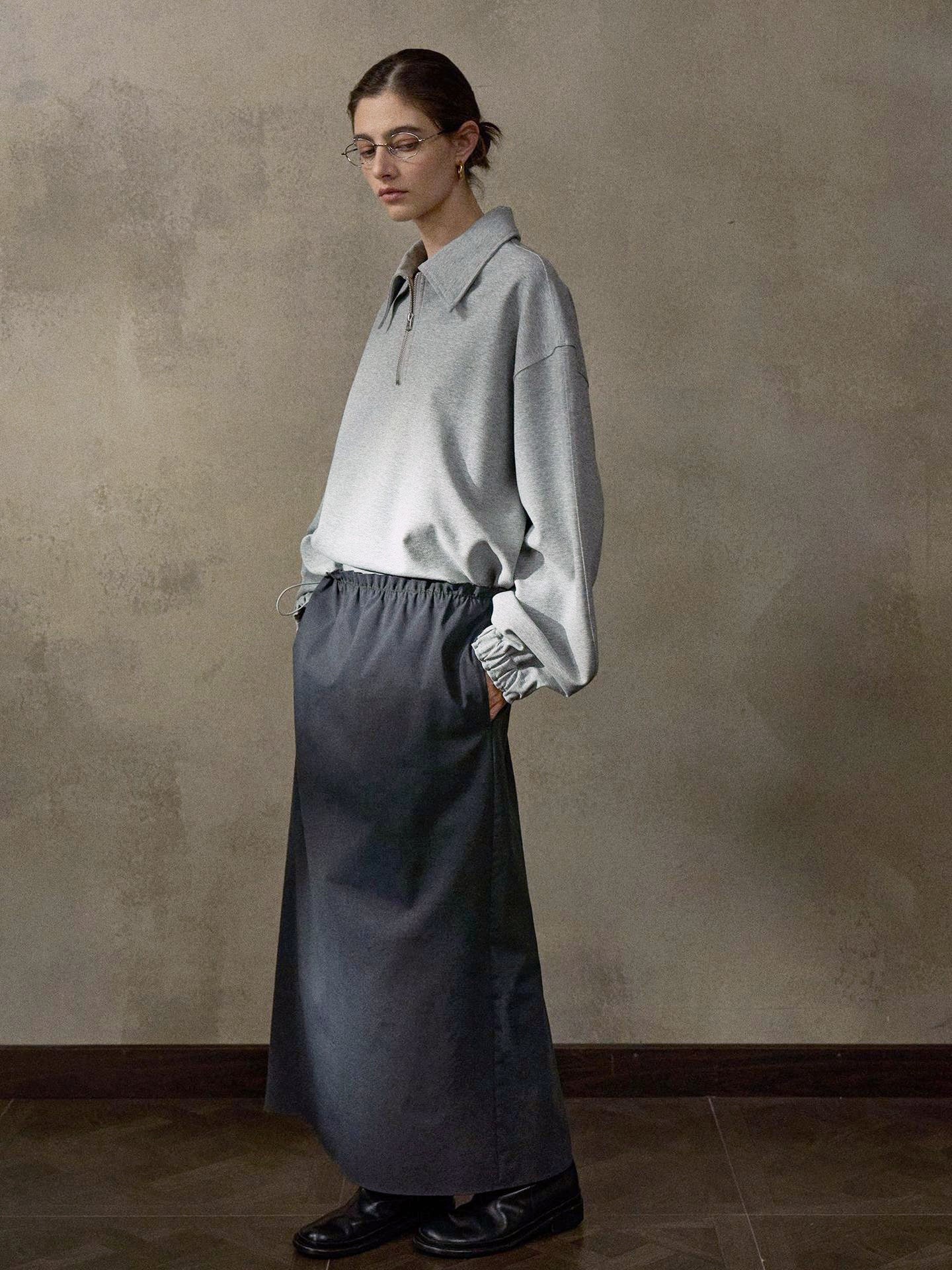 裾はドローストリング仕様で、お好みに応じてブラウジングも可能。