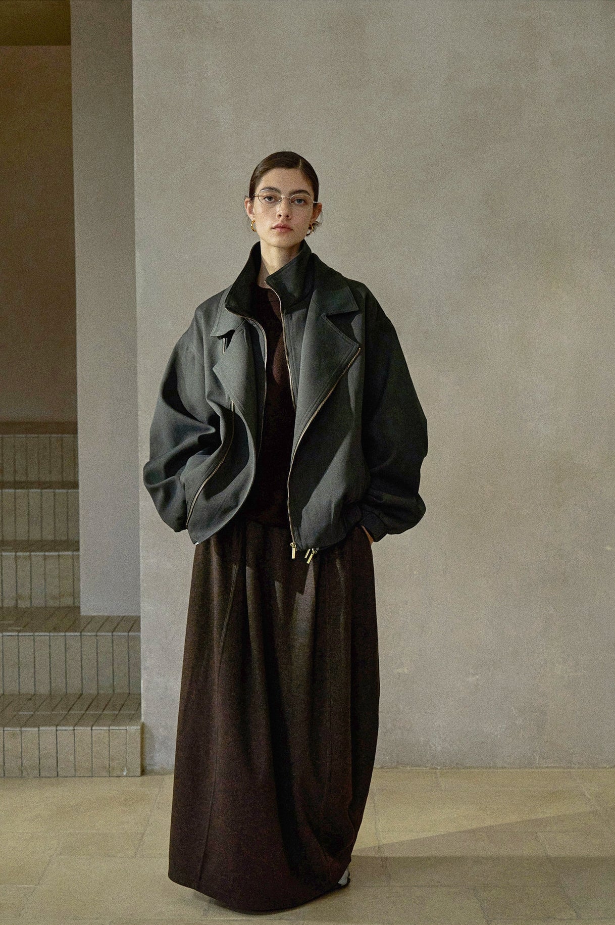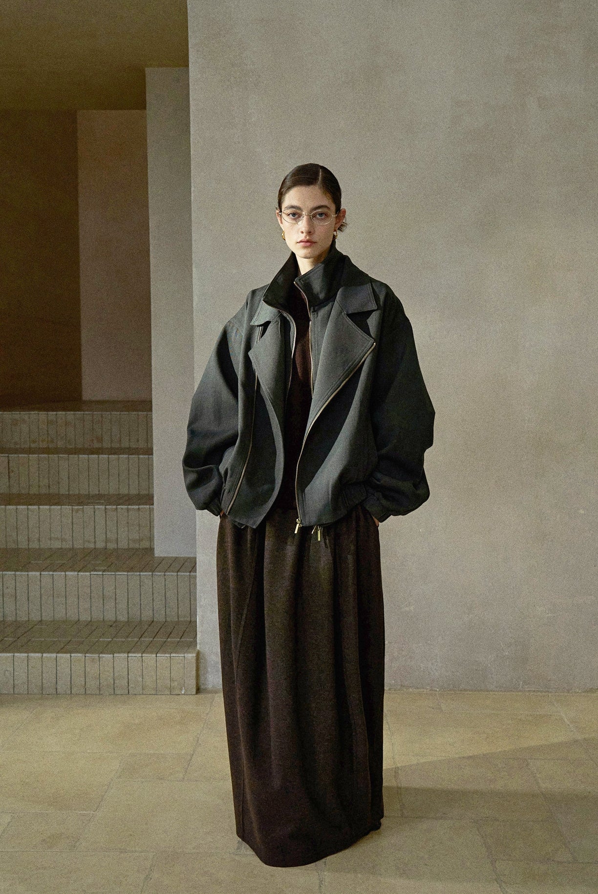 マットな質感と程よい落ち感がスタイリングを洗練された印象に導く。