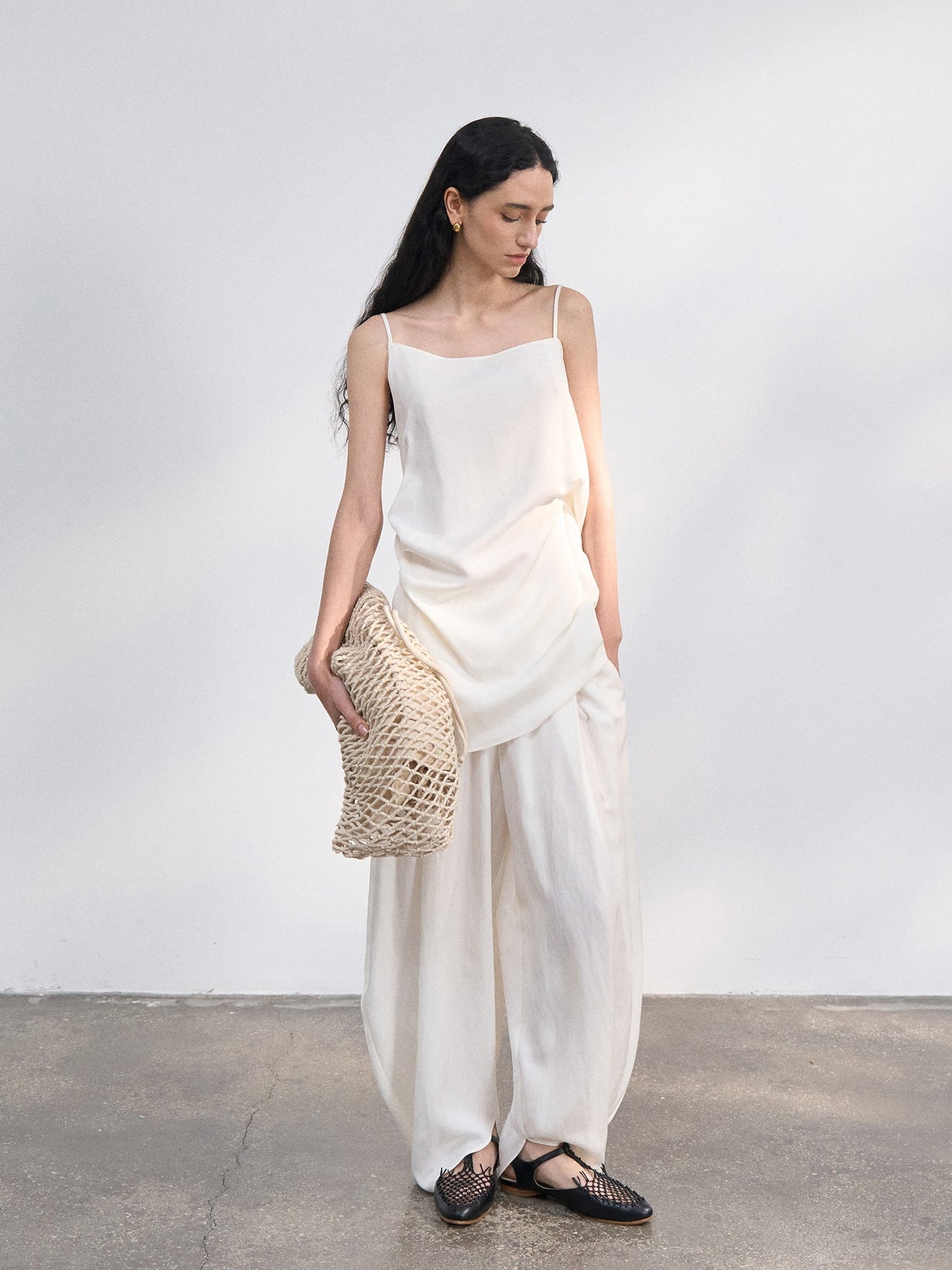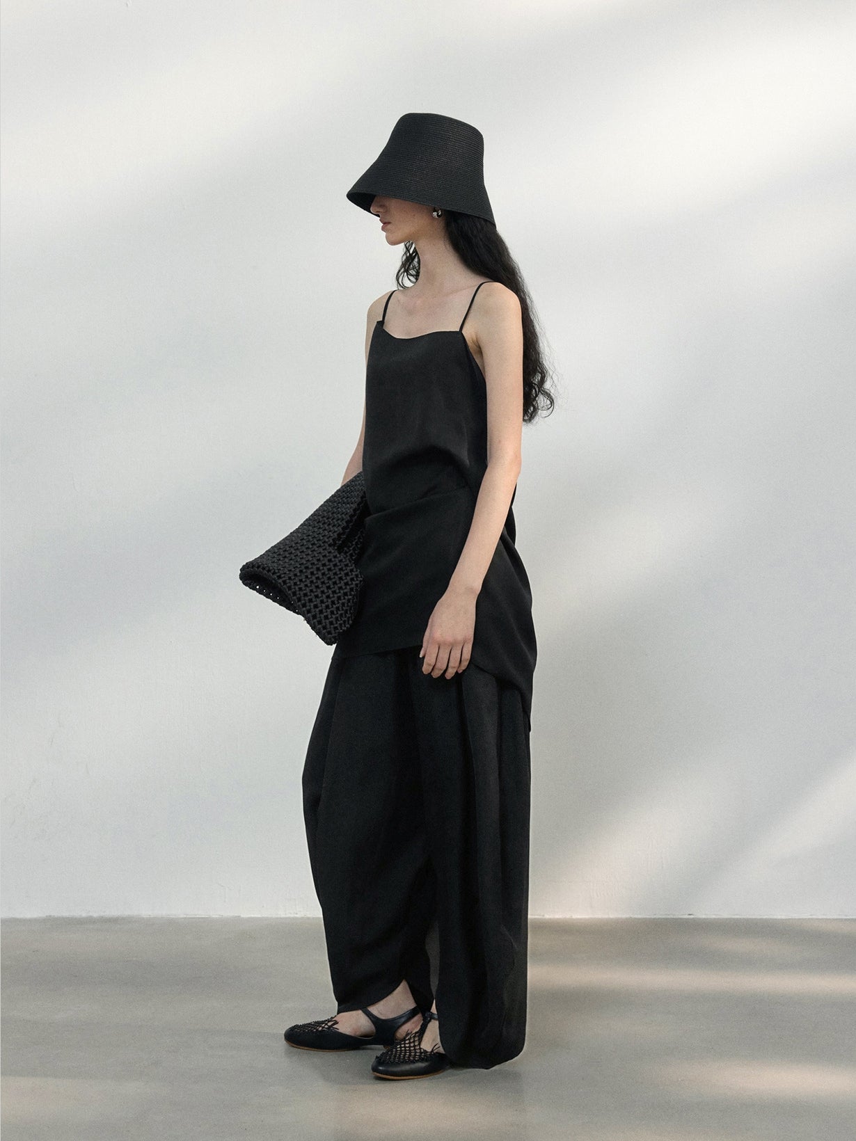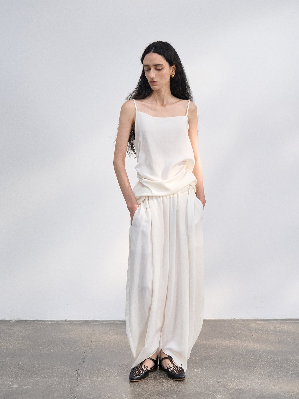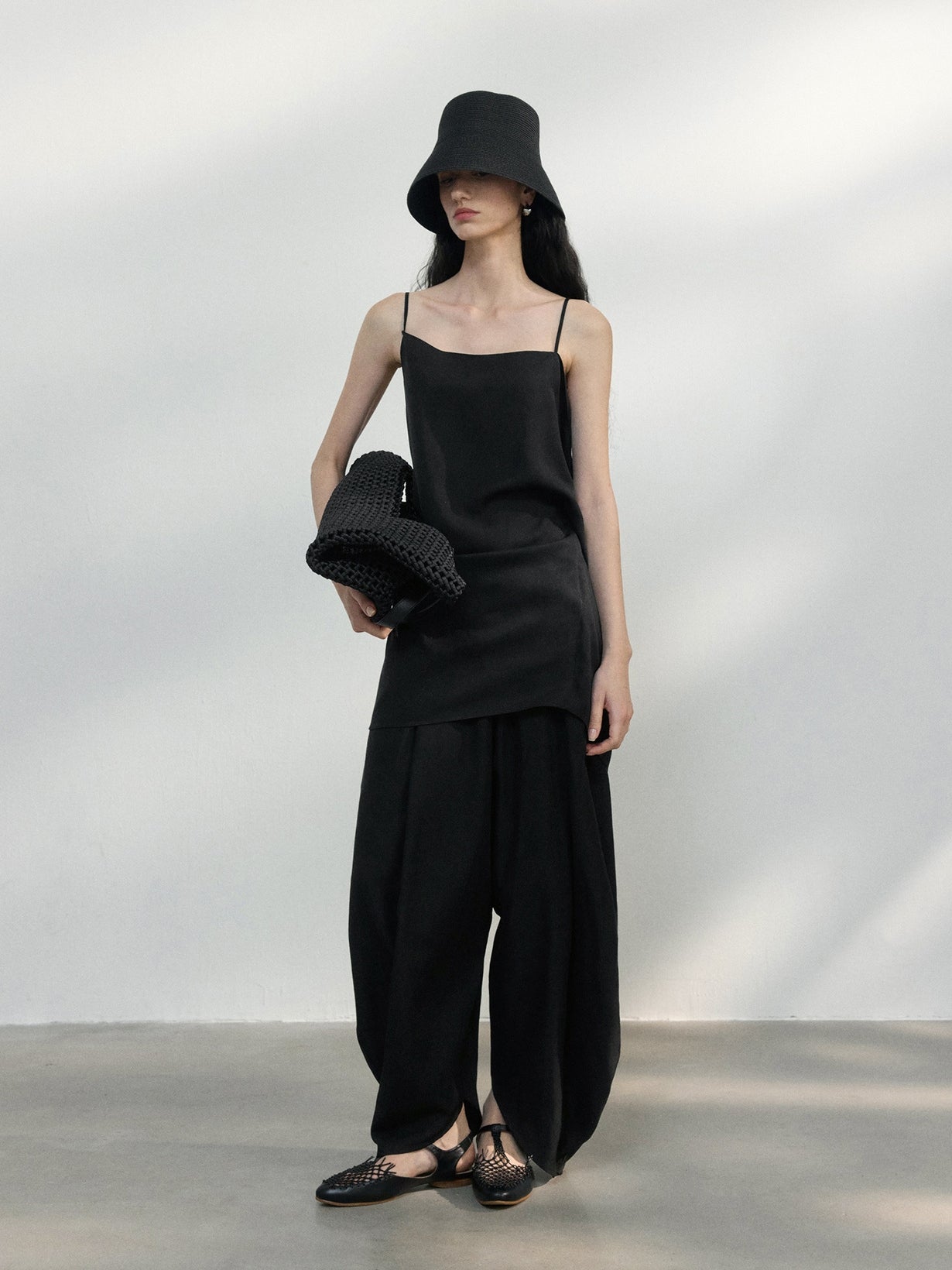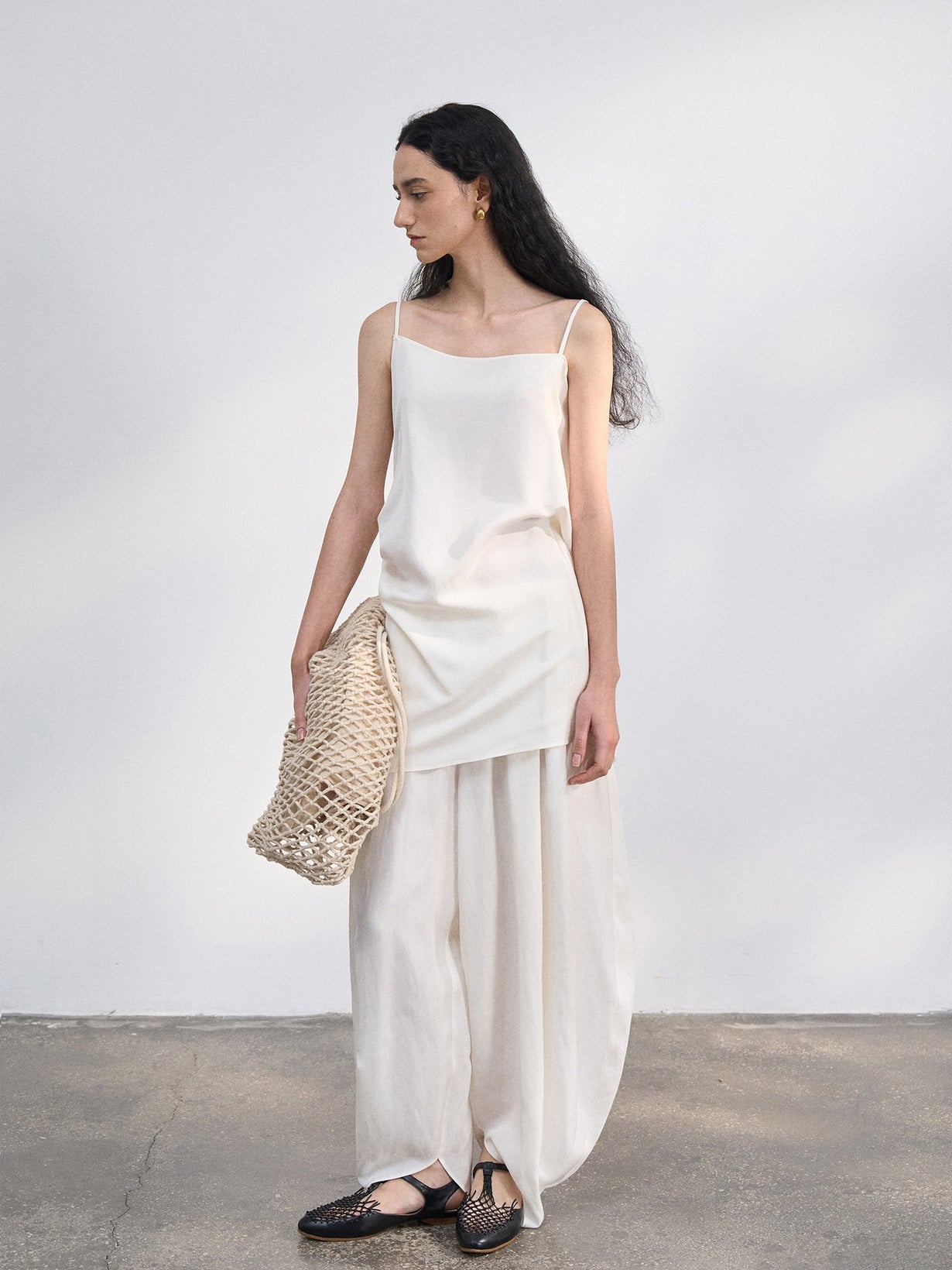 同素材の「リネン混アシンメトリーキャミソール」とセットアップでの着用もおすすめです。