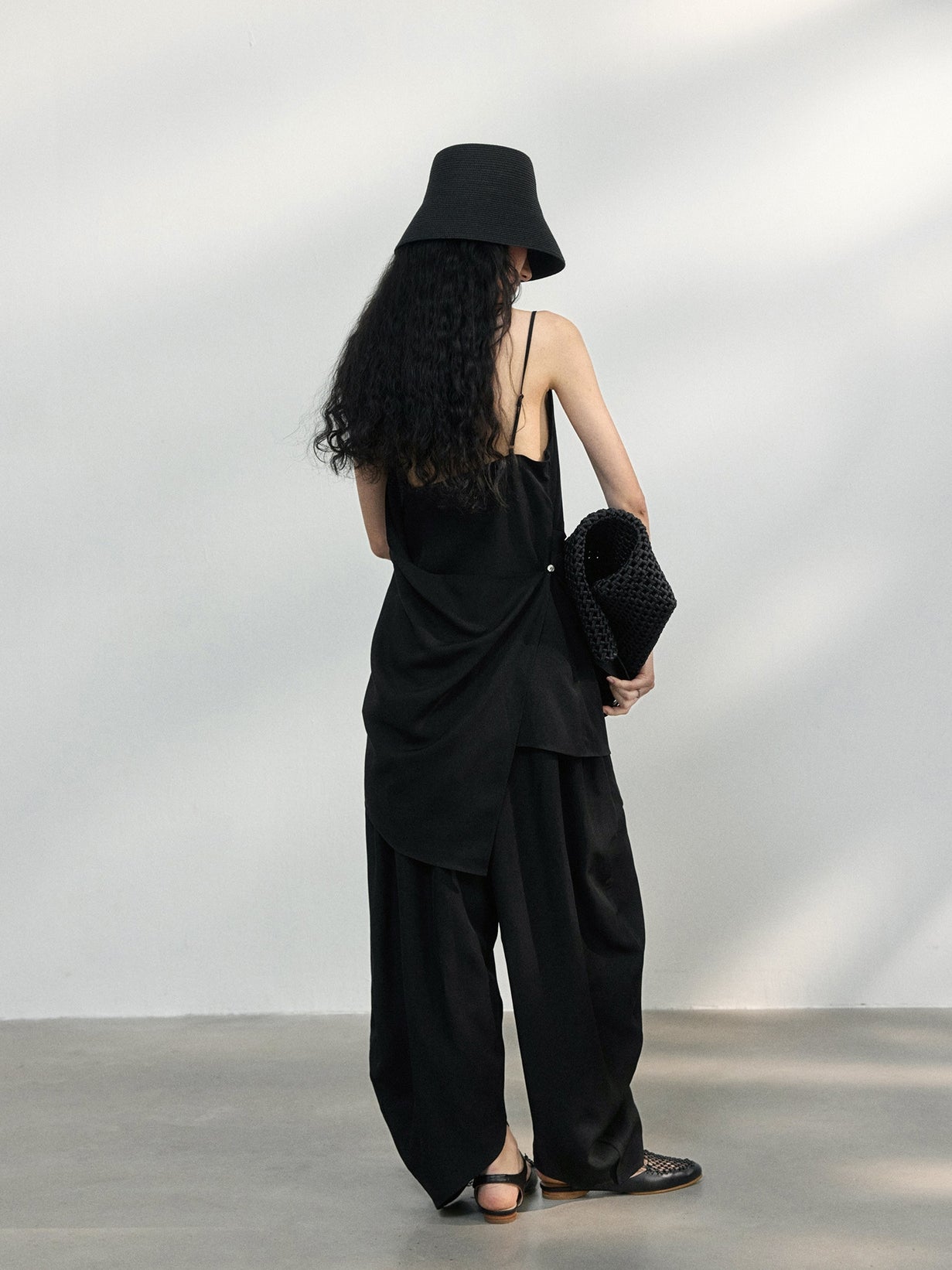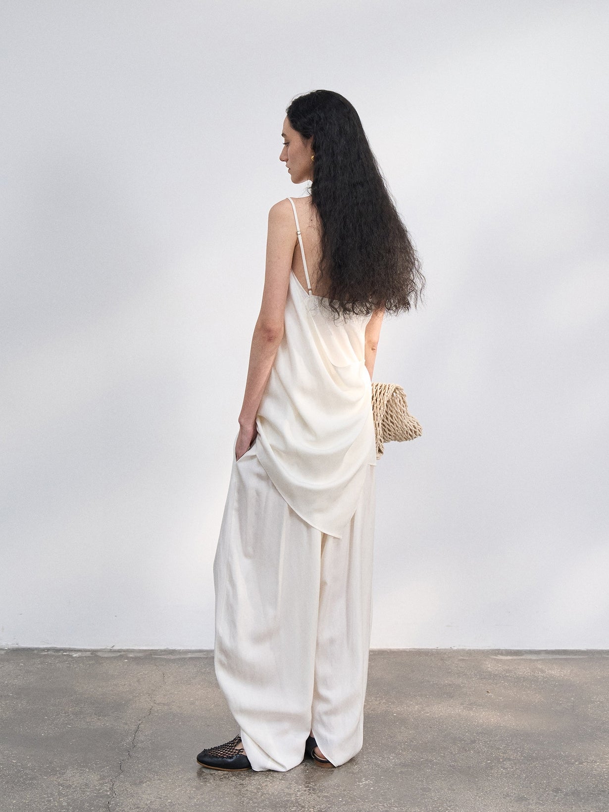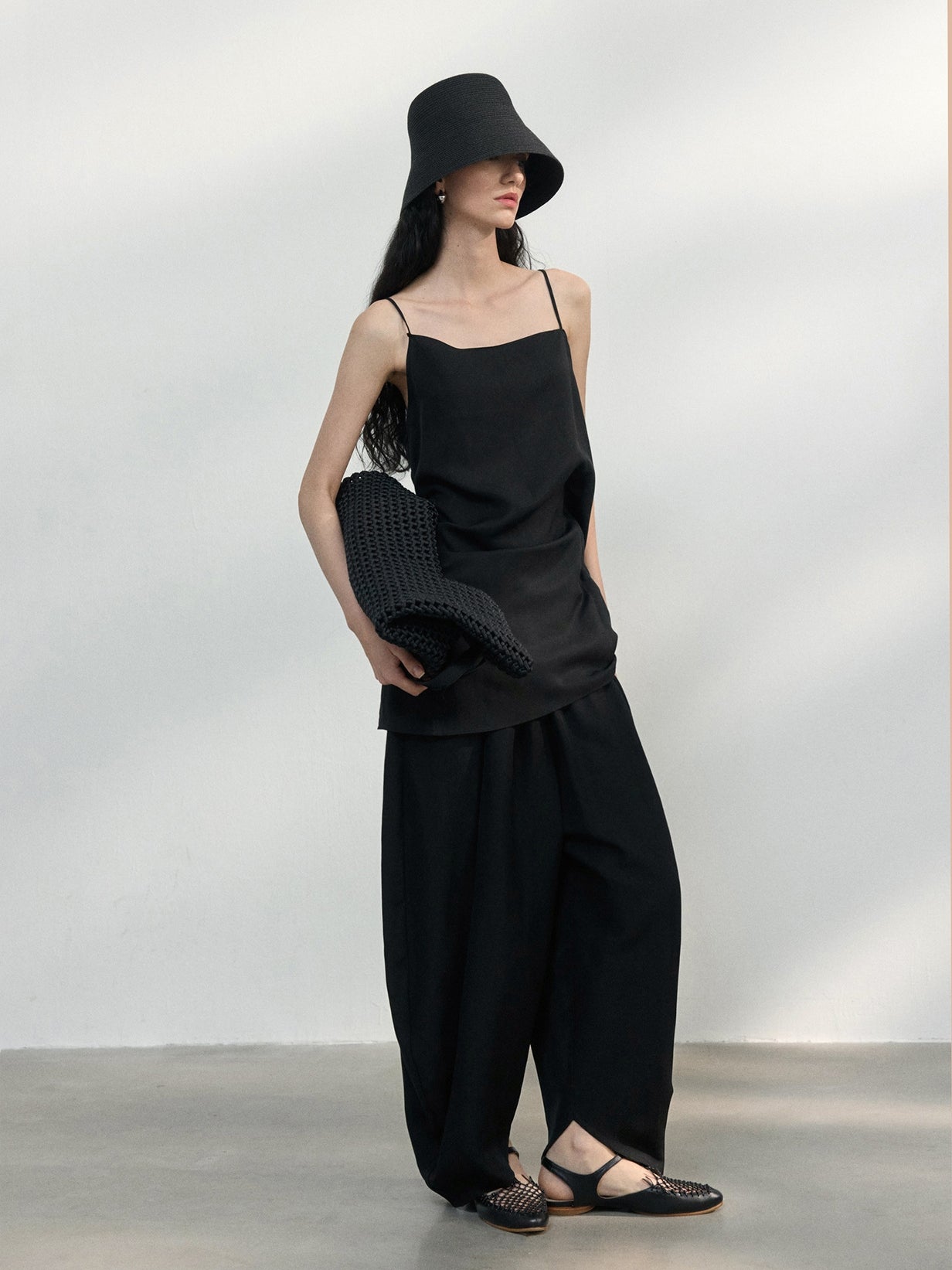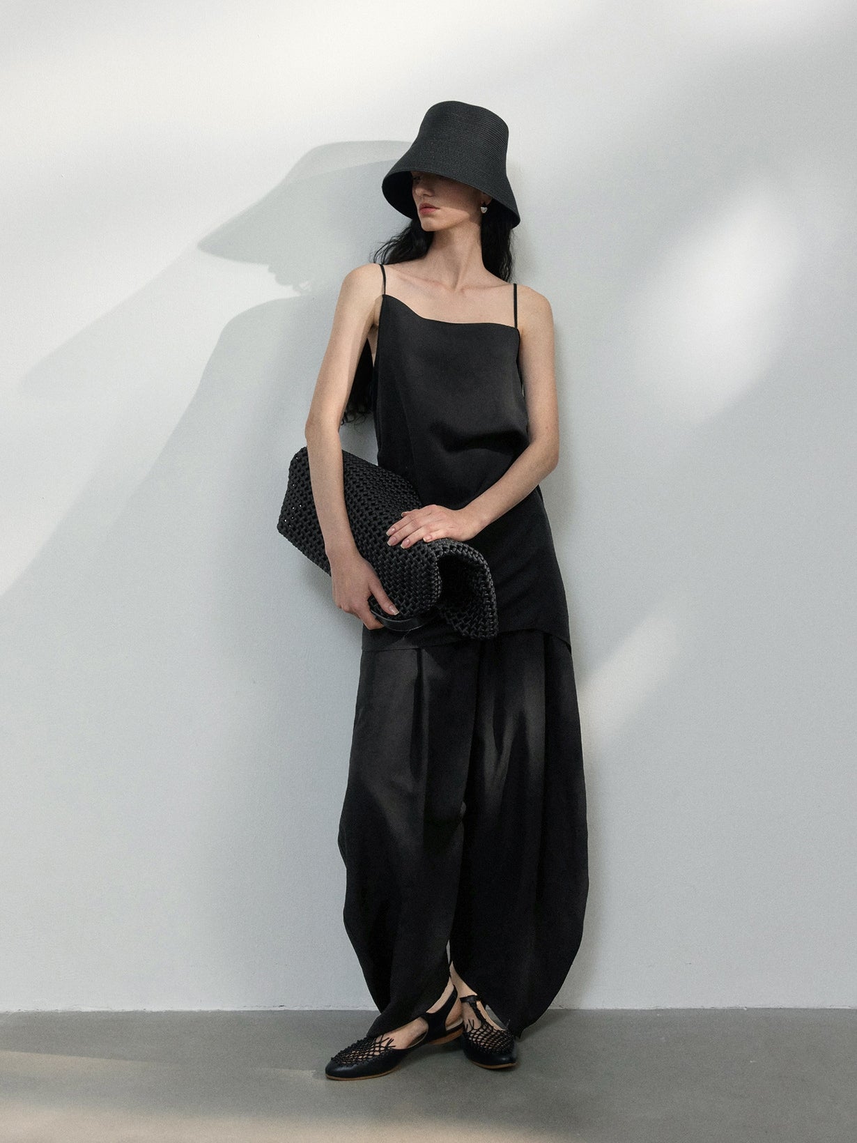 同素材の「リネン混アシンメトリーキャミソール」とセットアップでの着用もおすすめです。