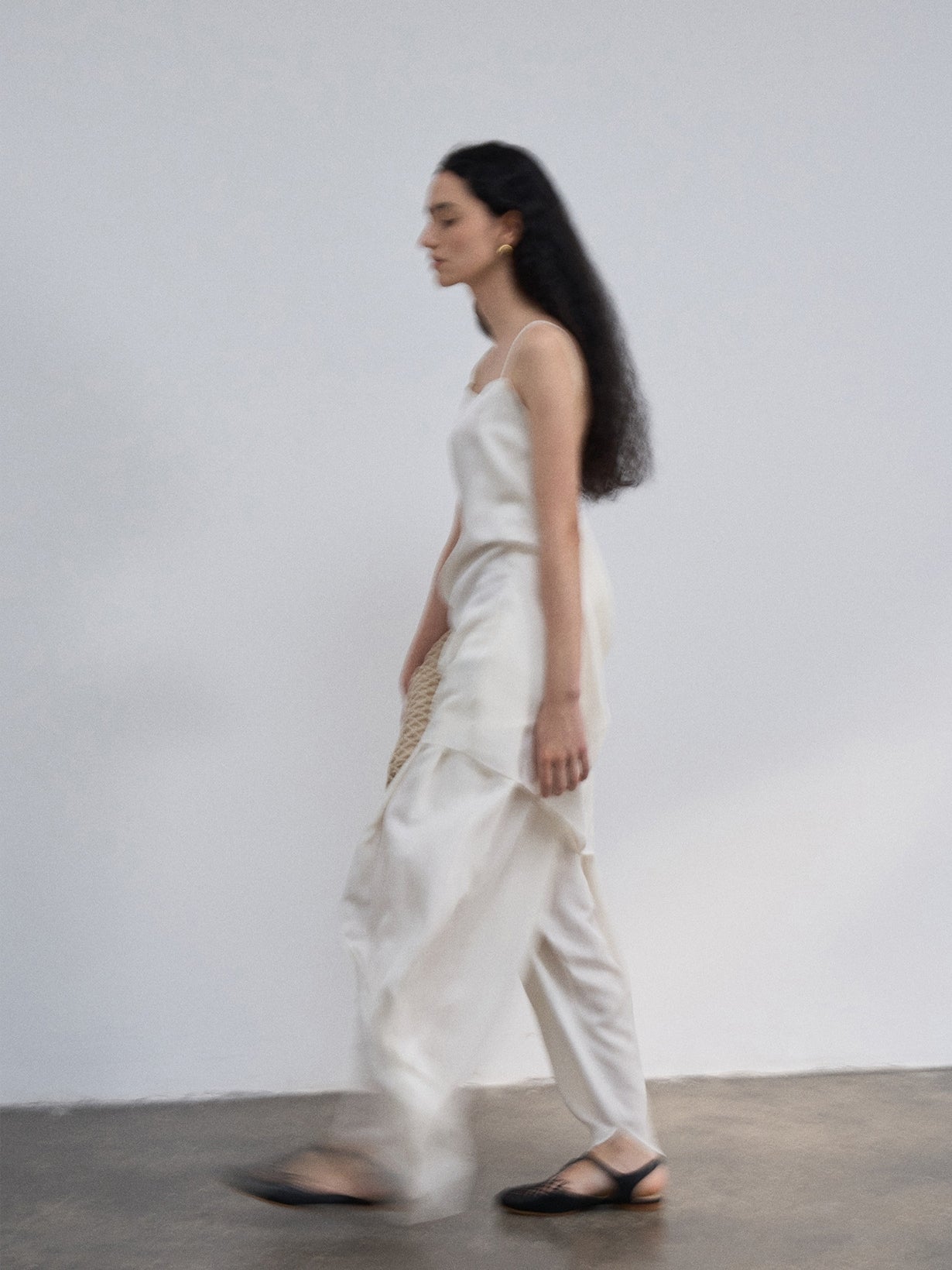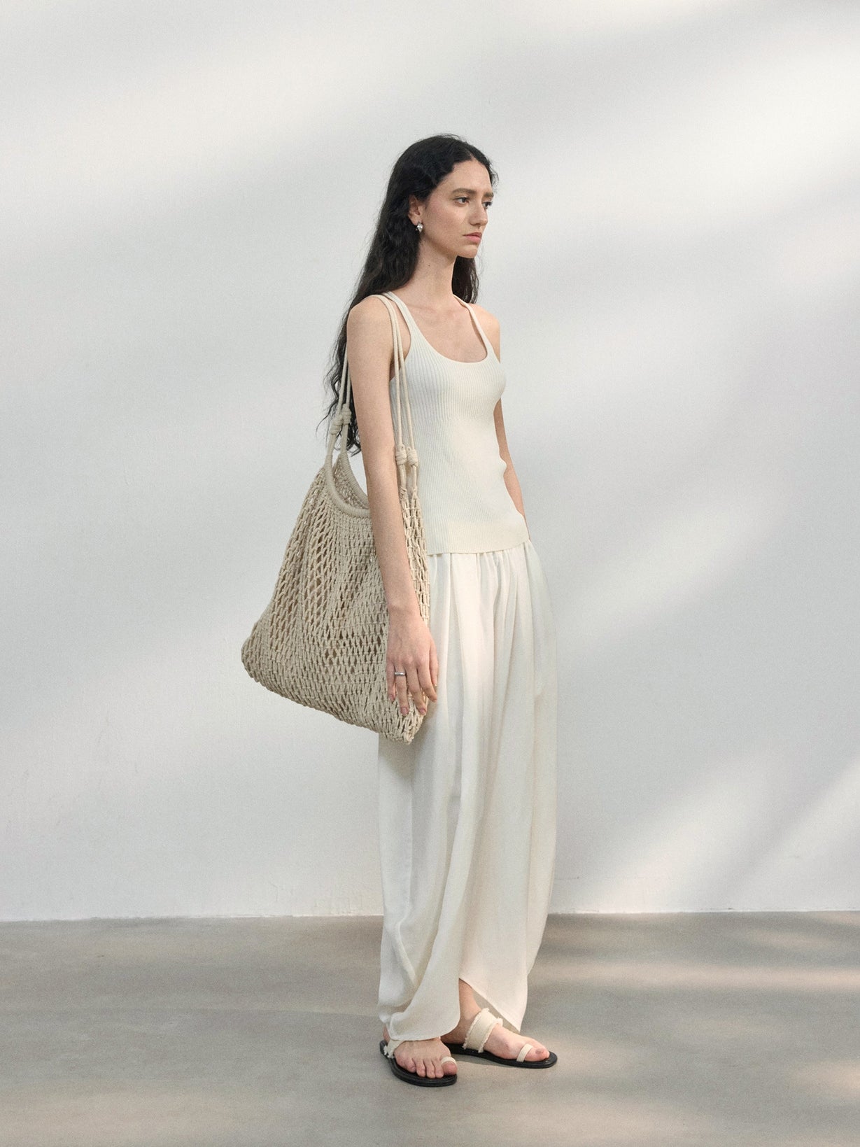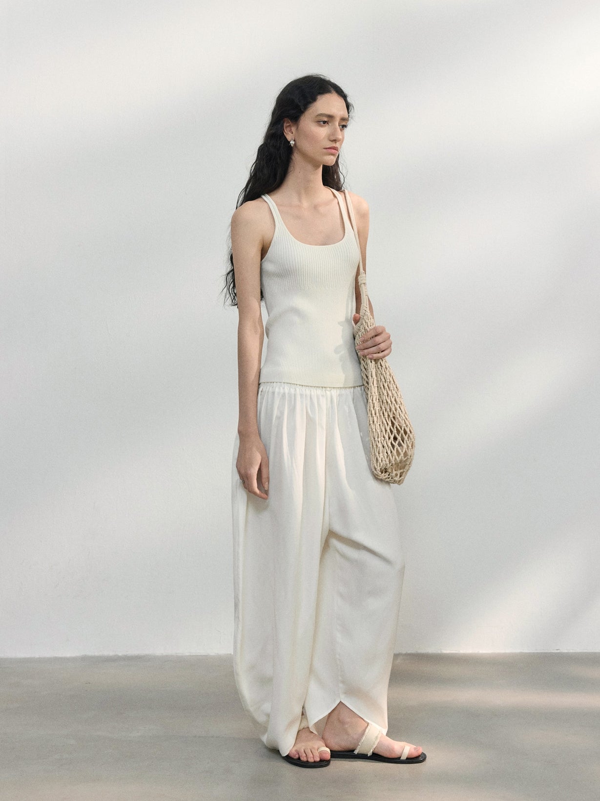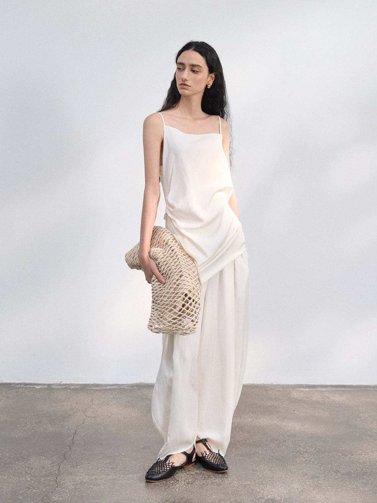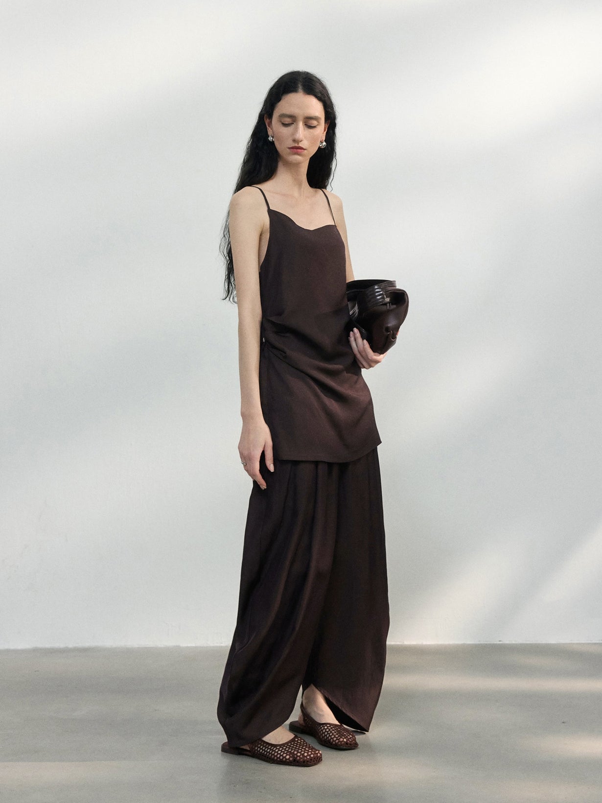 同素材の「リネン混アシンメトリーキャミソール」とセットアップでの着用もおすすめです。