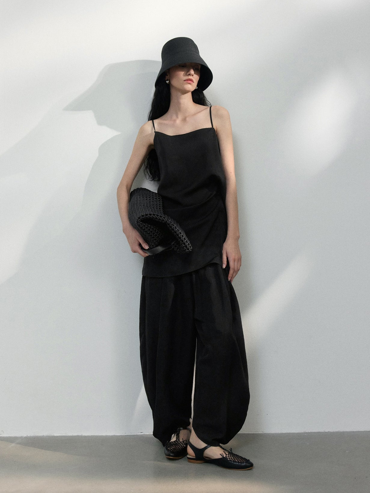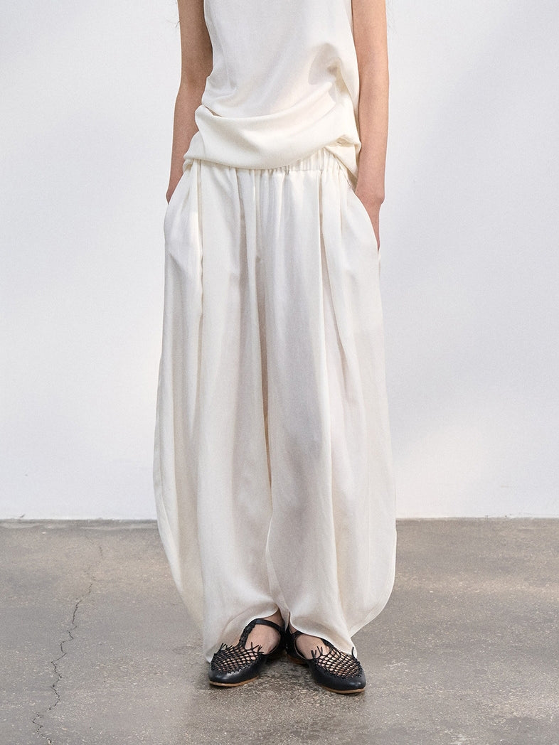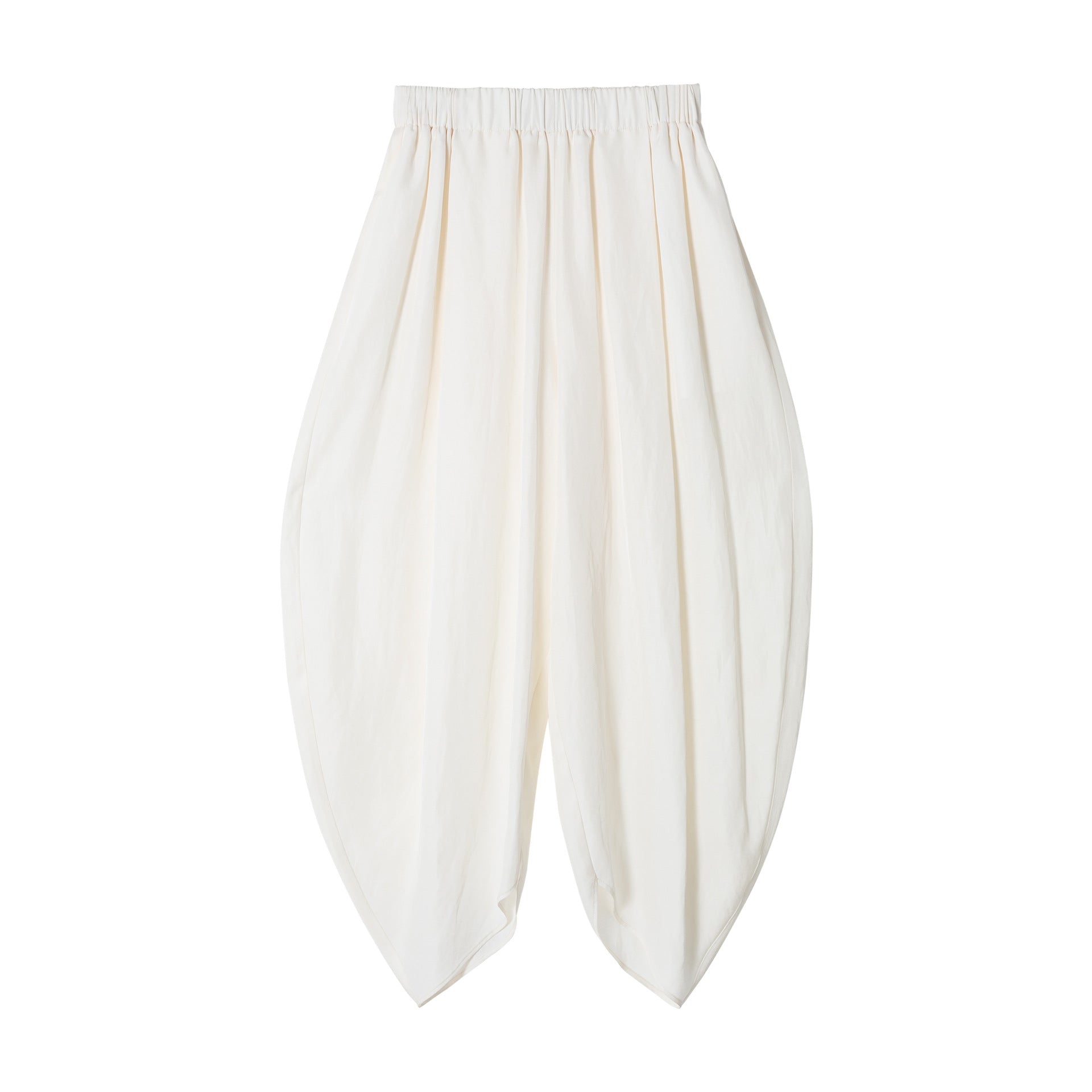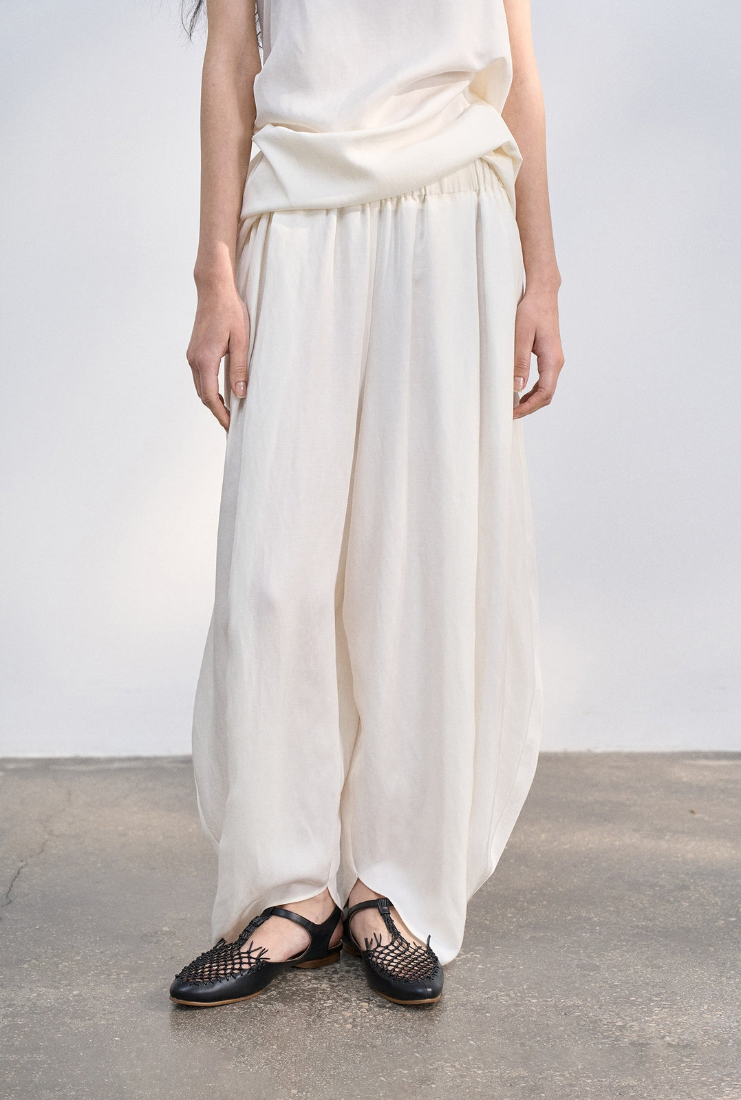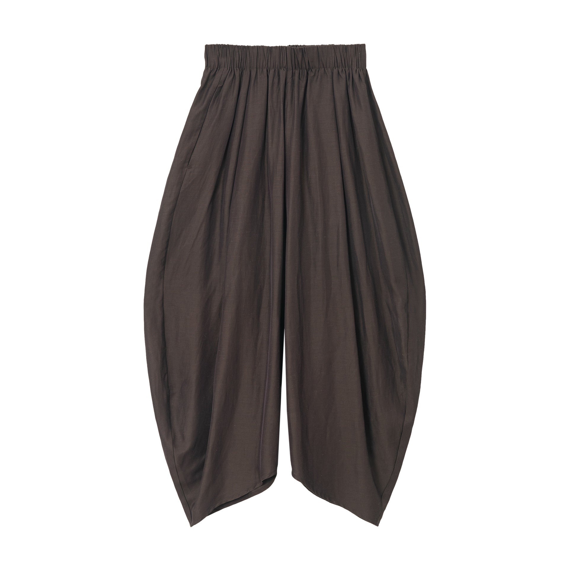 リネン混のしなやかなドレープバルーンイージーパンツ。