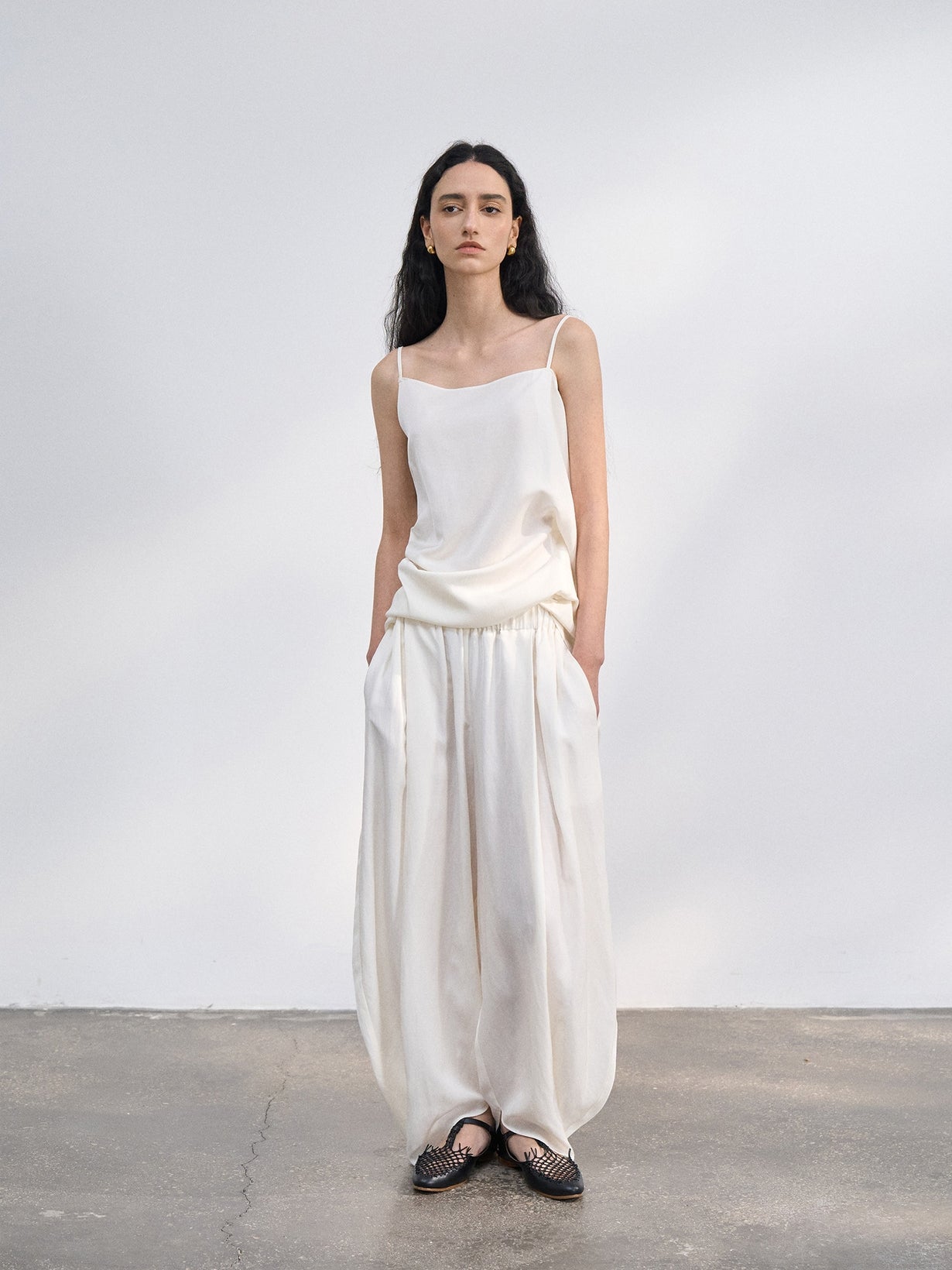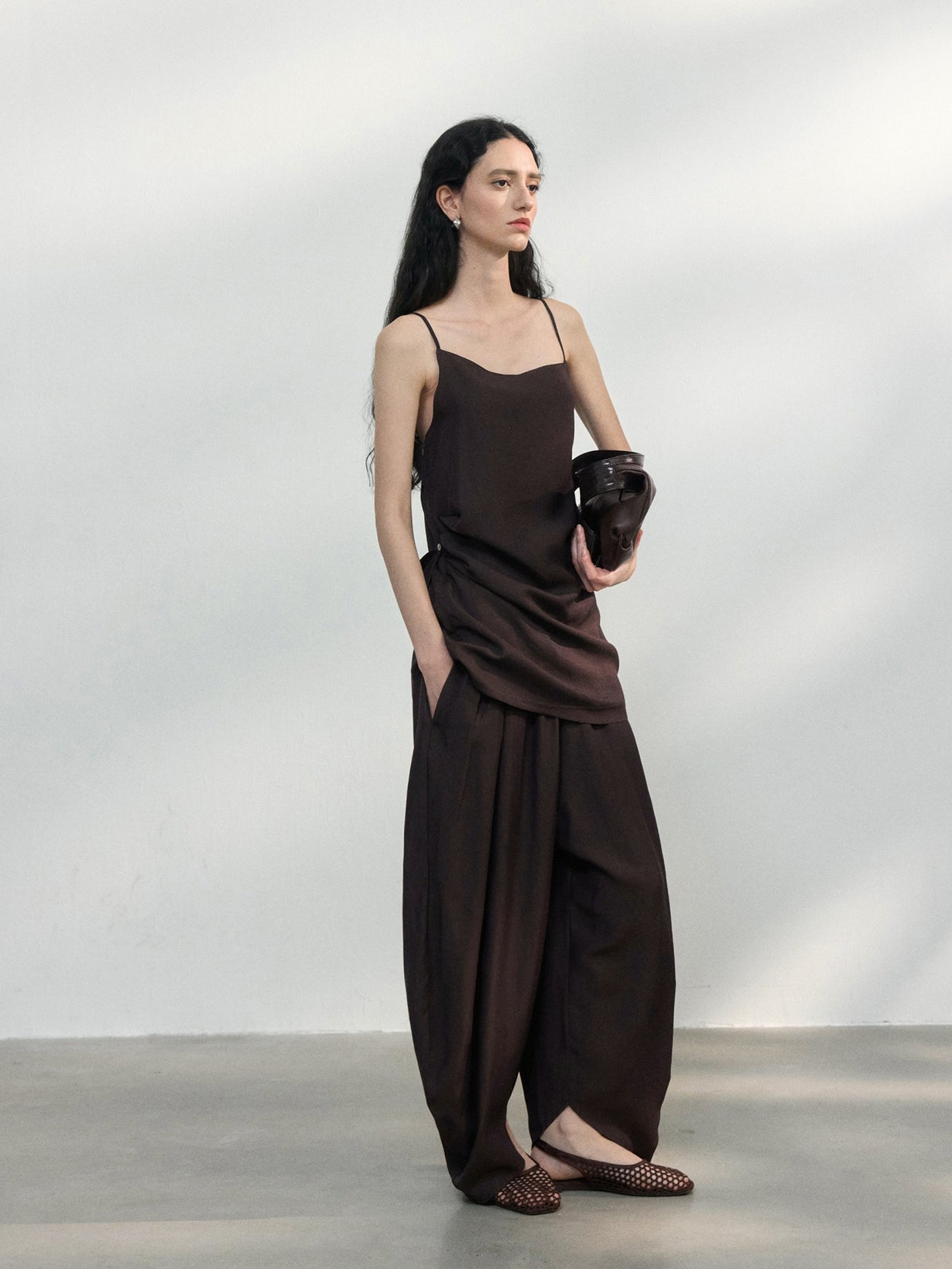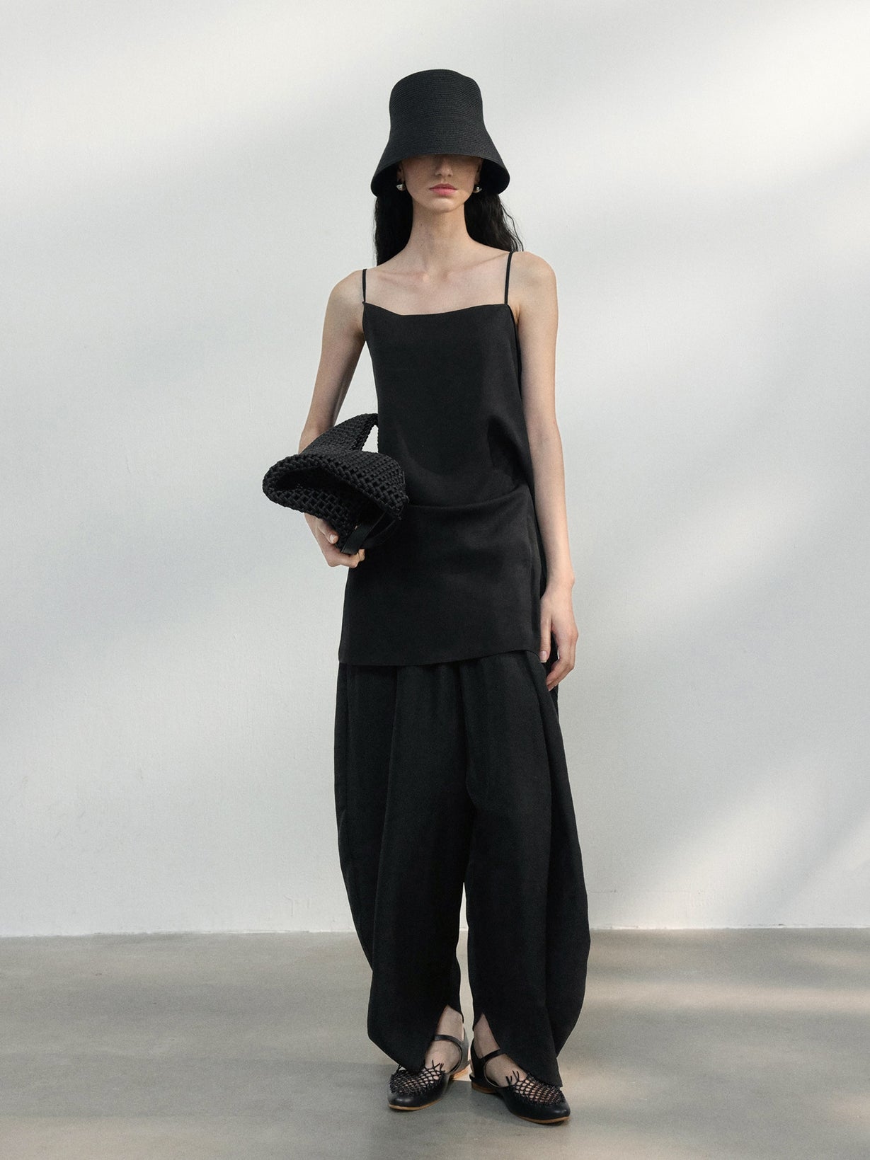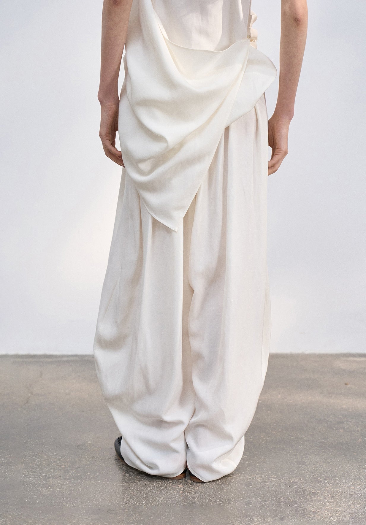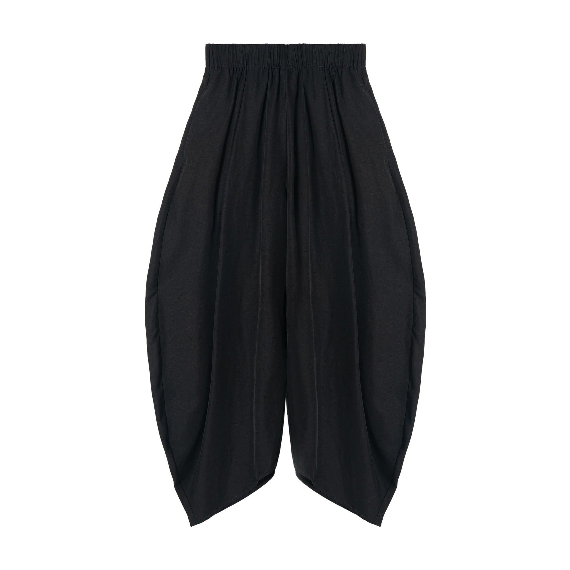 リネン混のしなやかなドレープバルーンイージーパンツ。