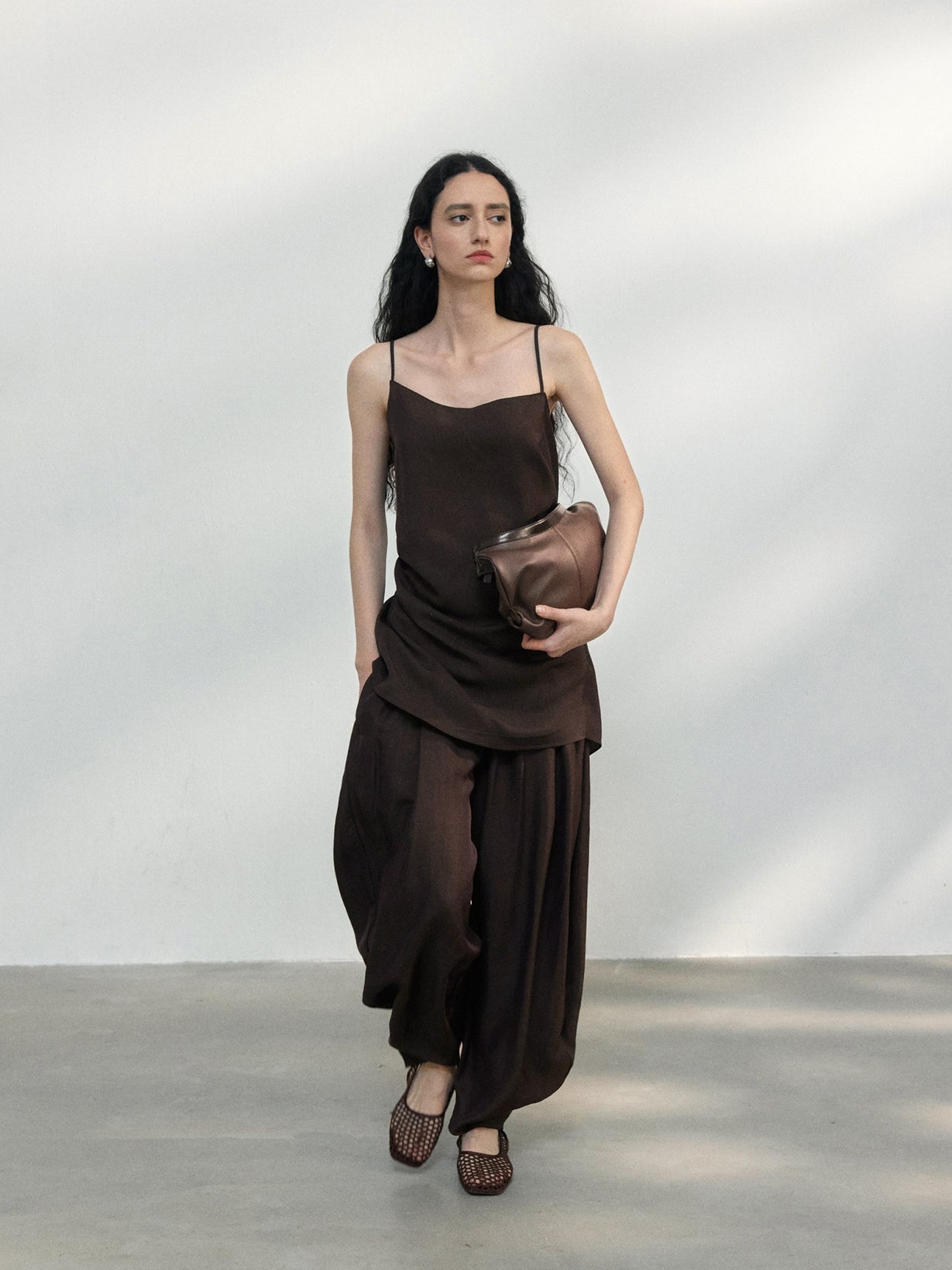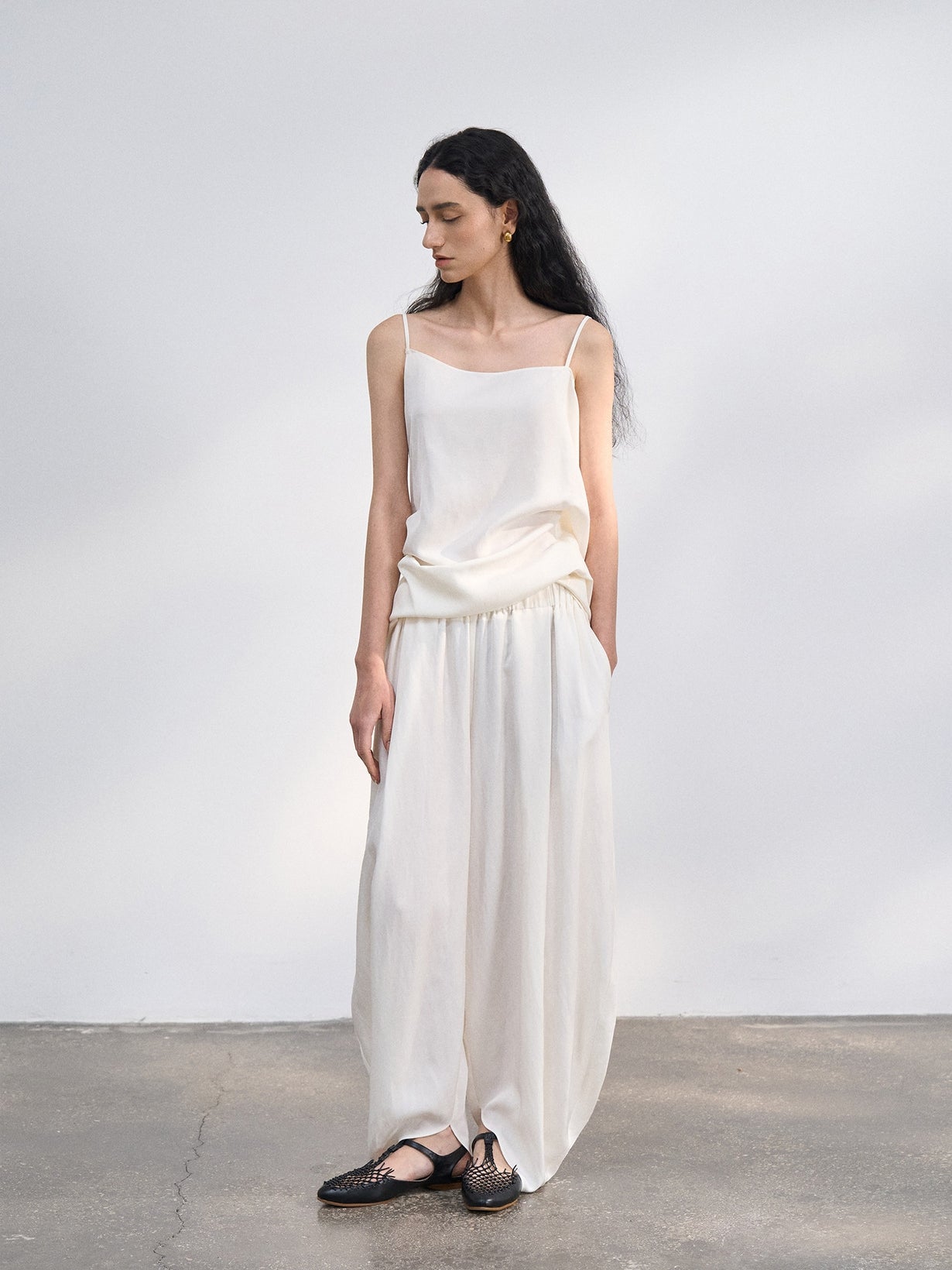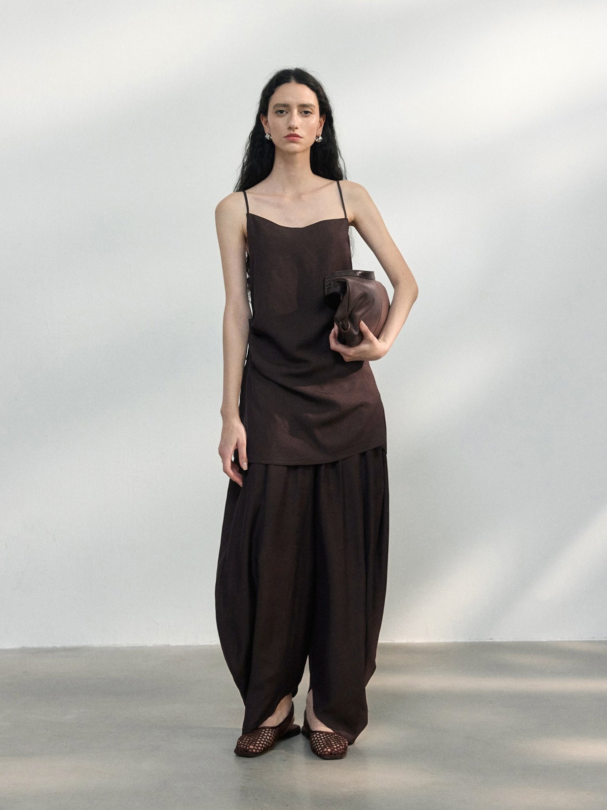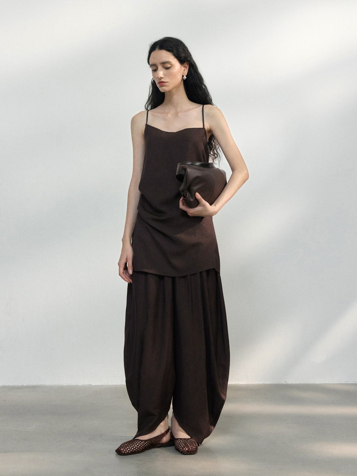 リネン混のしなやかなドレープバルーンイージーパンツ。