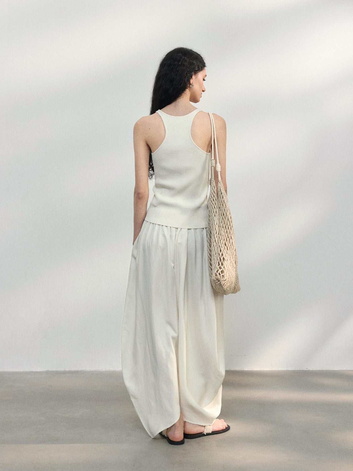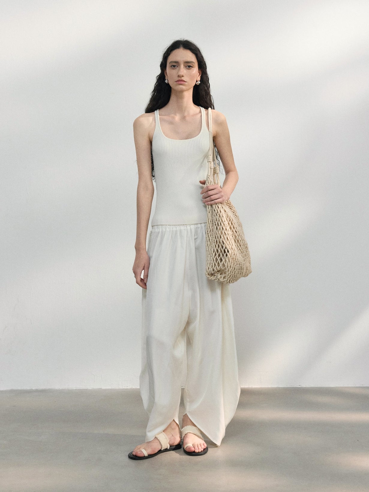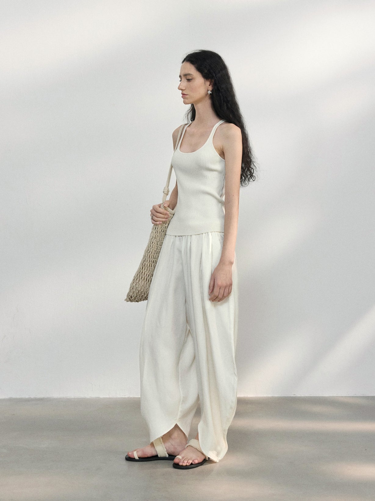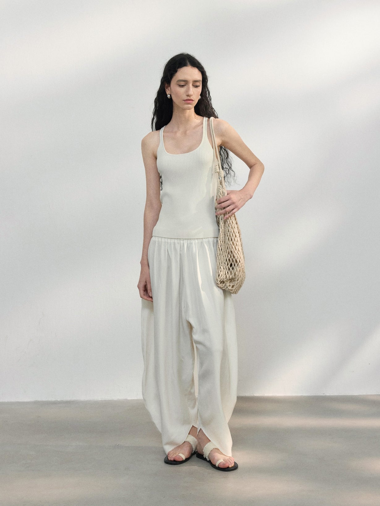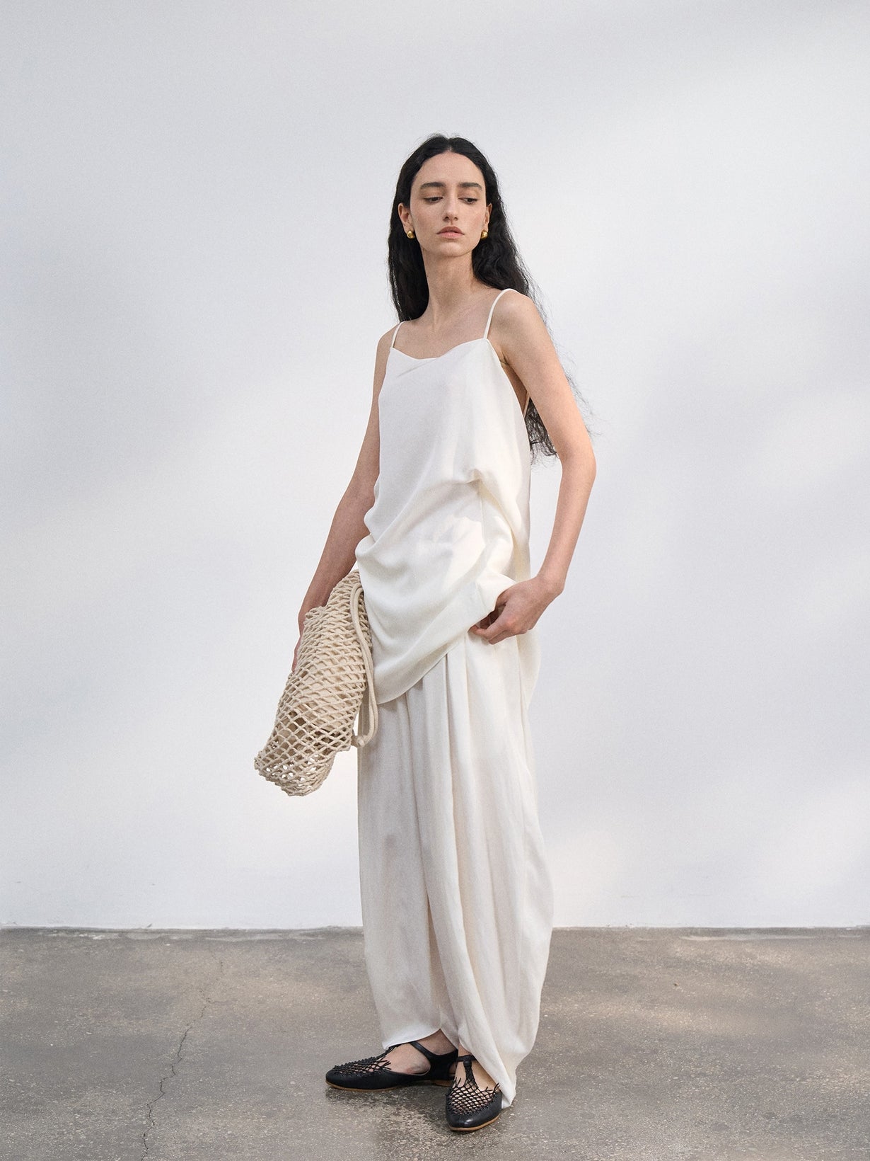 リネン混のしなやかなドレープバルーンイージーパンツ。