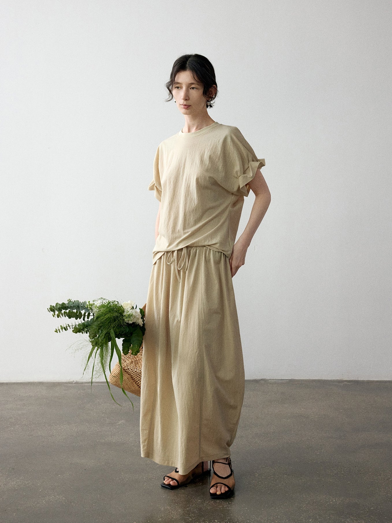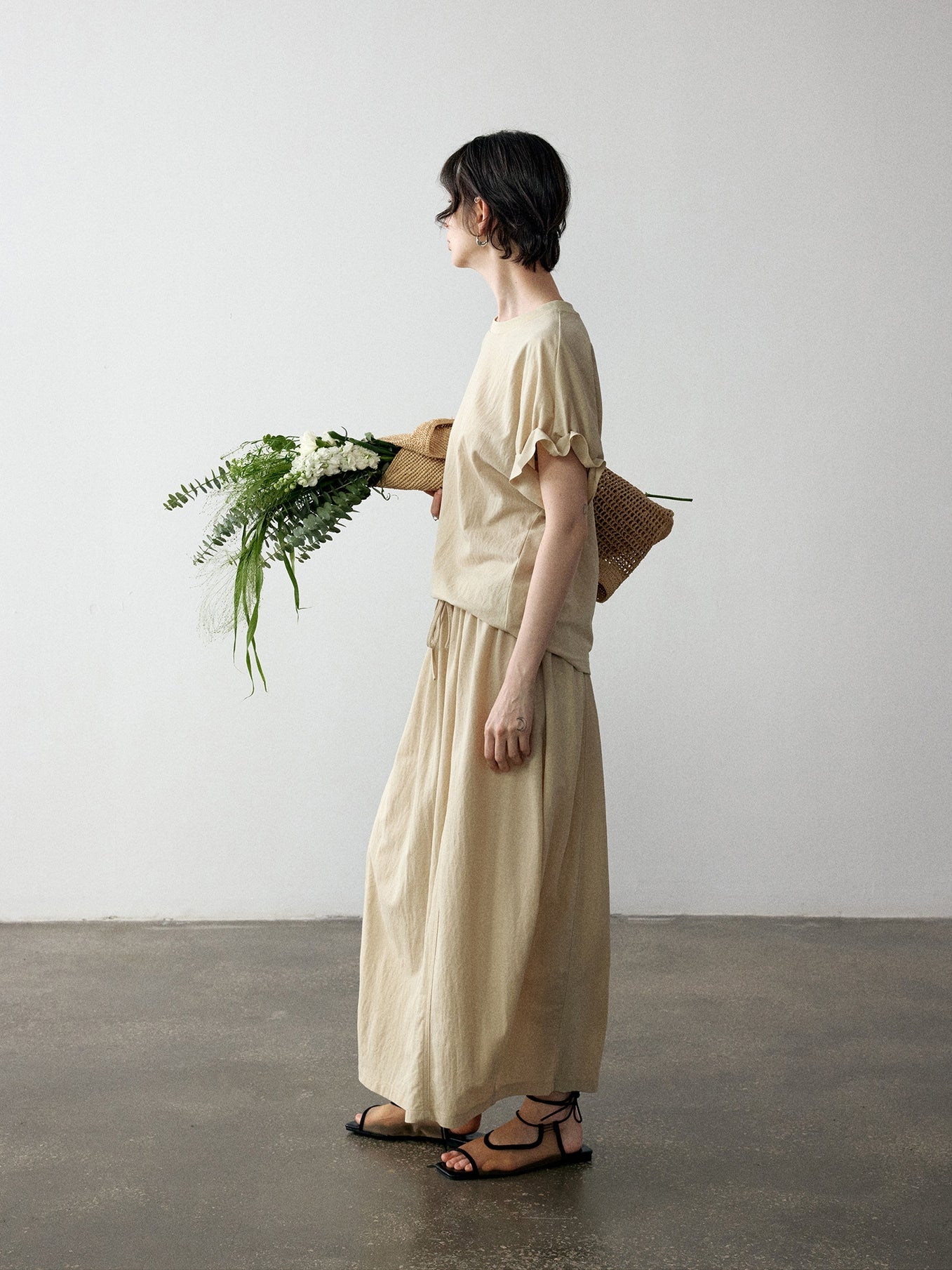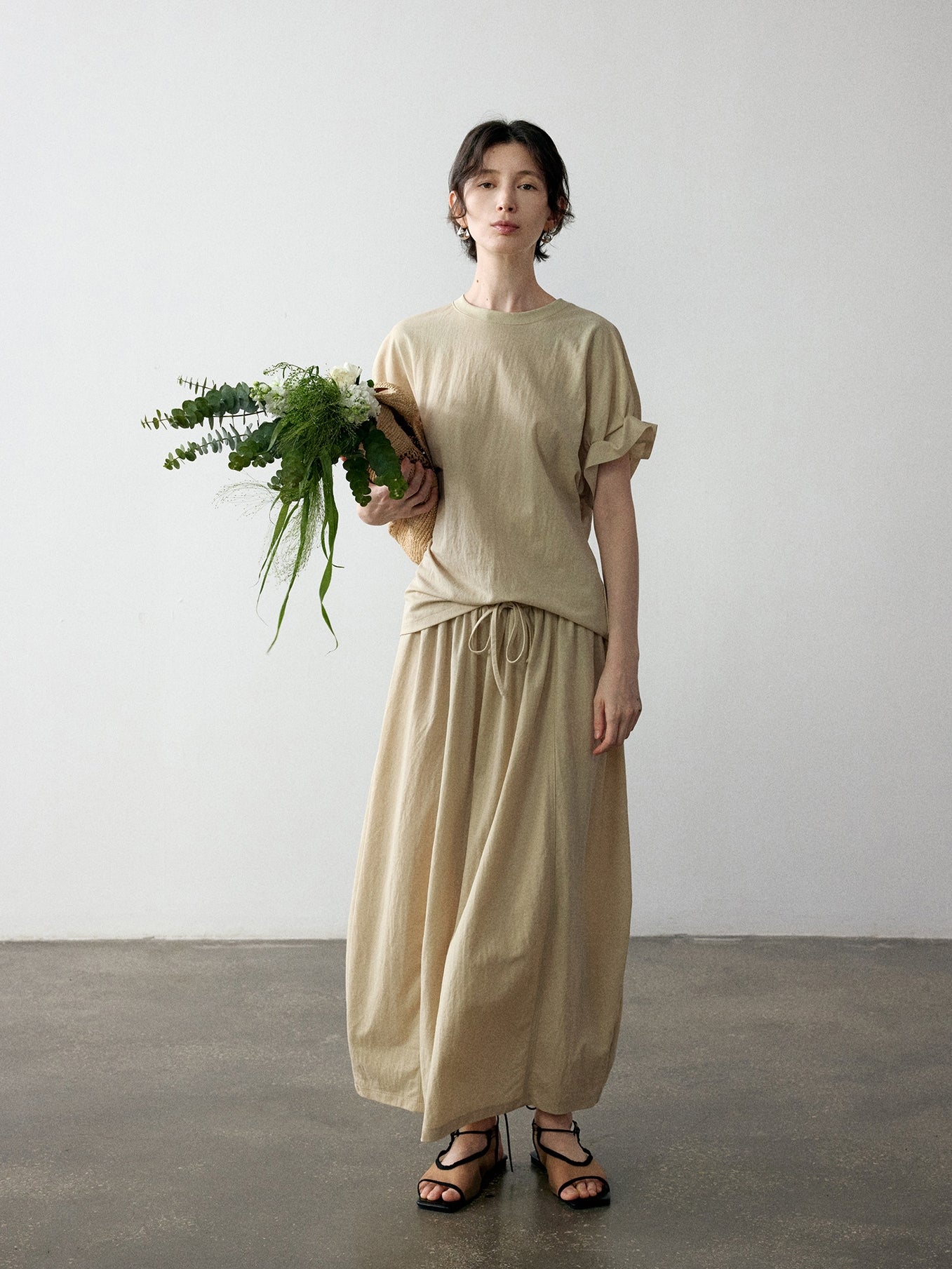 同素材の「リネン混バルーンロングスカート」とセットアップでの着用もおすすめです。