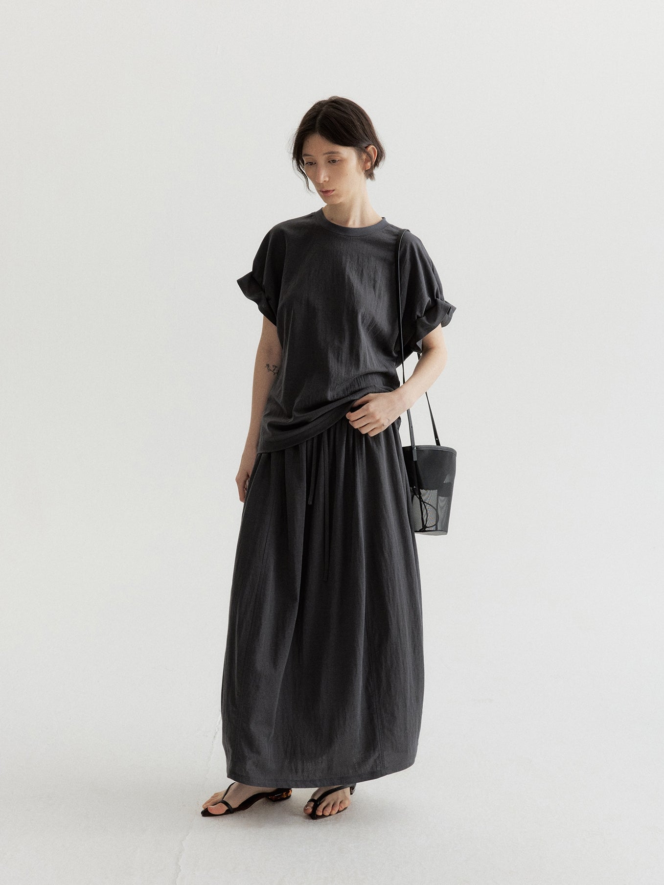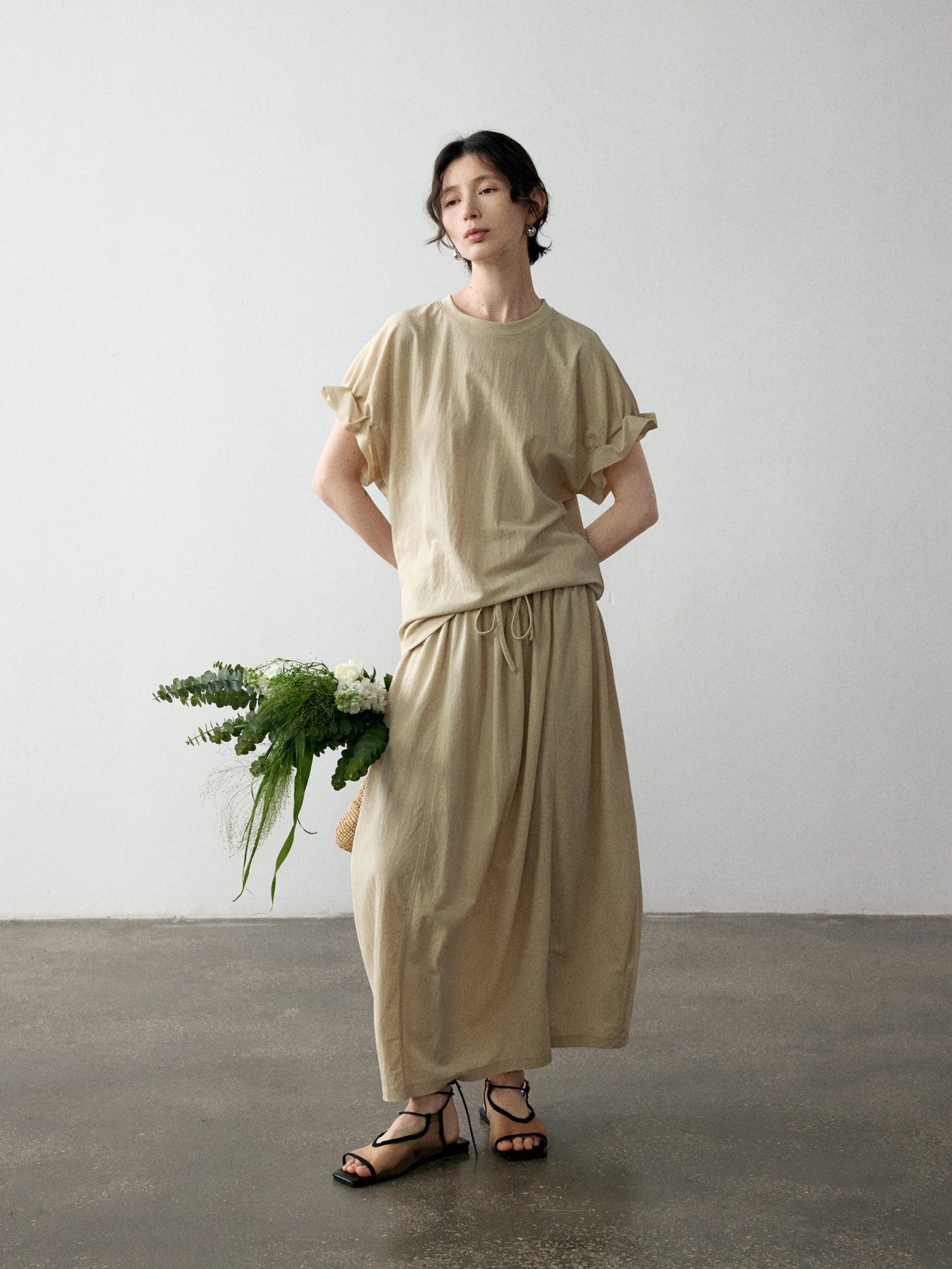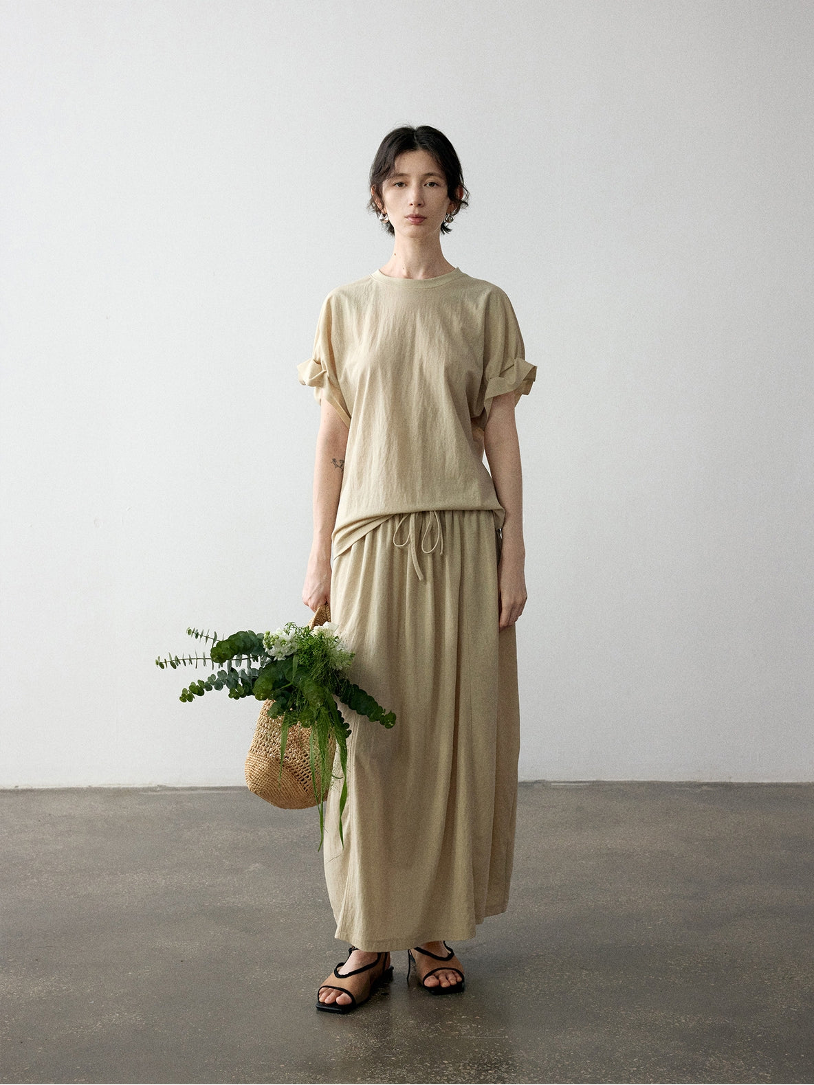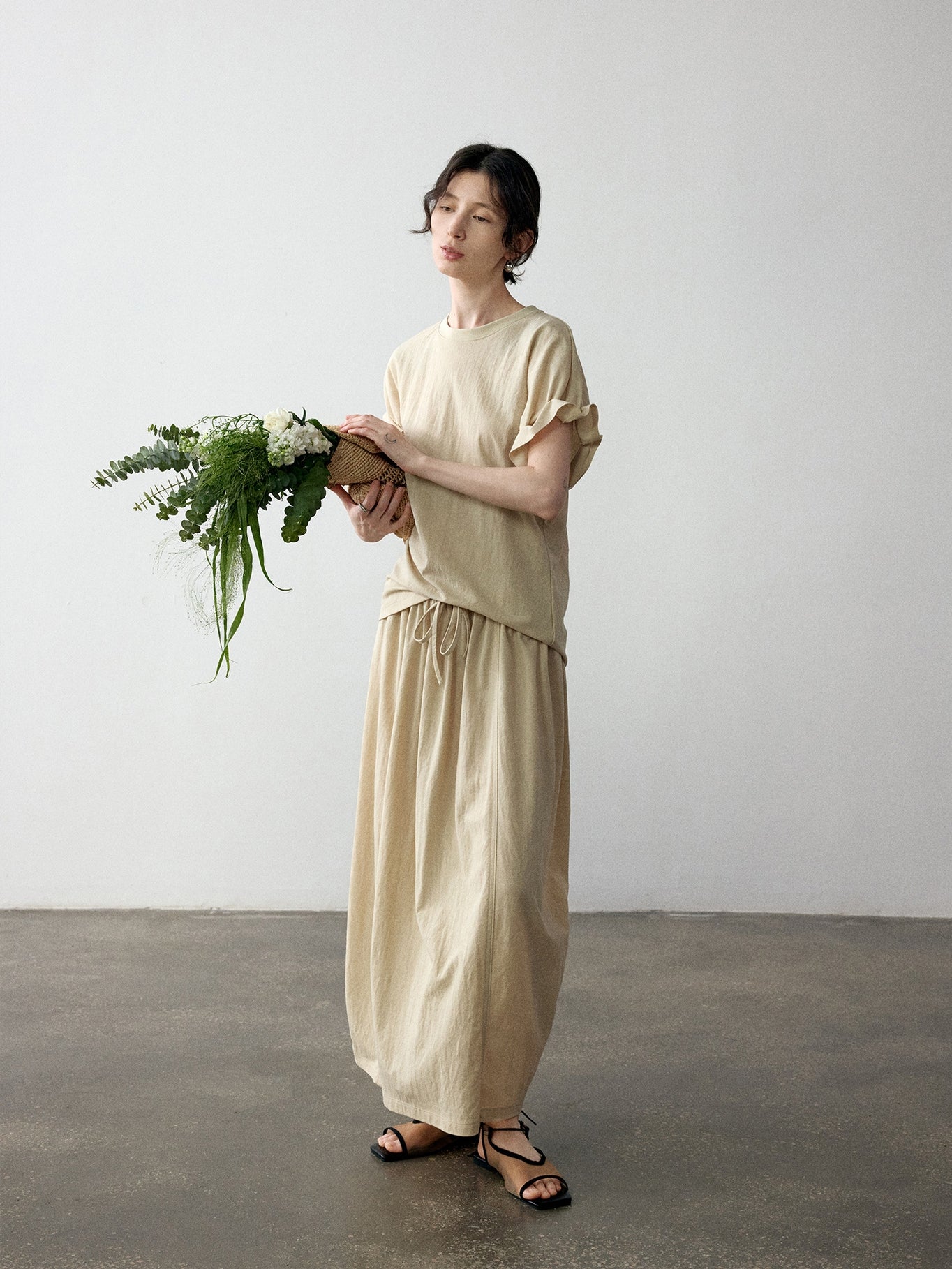 同素材の「リネン混バルーンロングスカート」とセットアップでの着用もおすすめです。