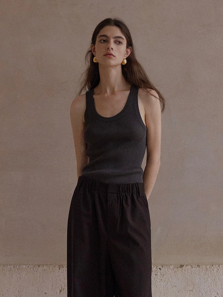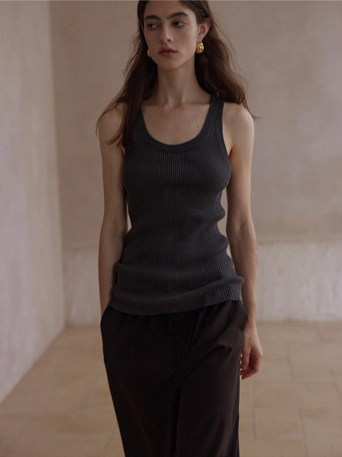 太さの異なるリブ編みが立体感を生み出す、表情豊かなニットタンクトップ。