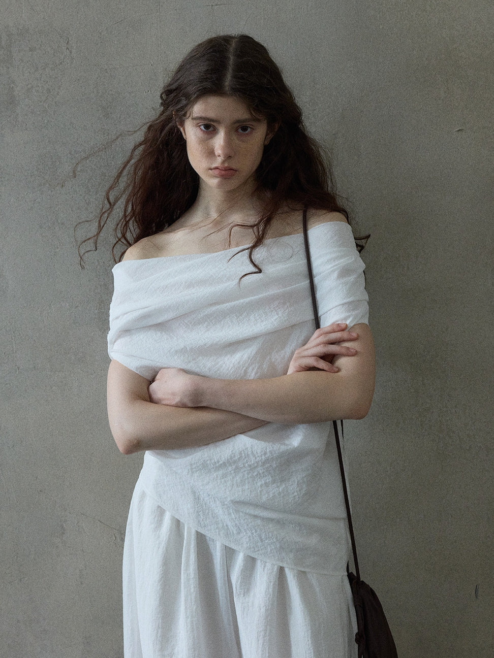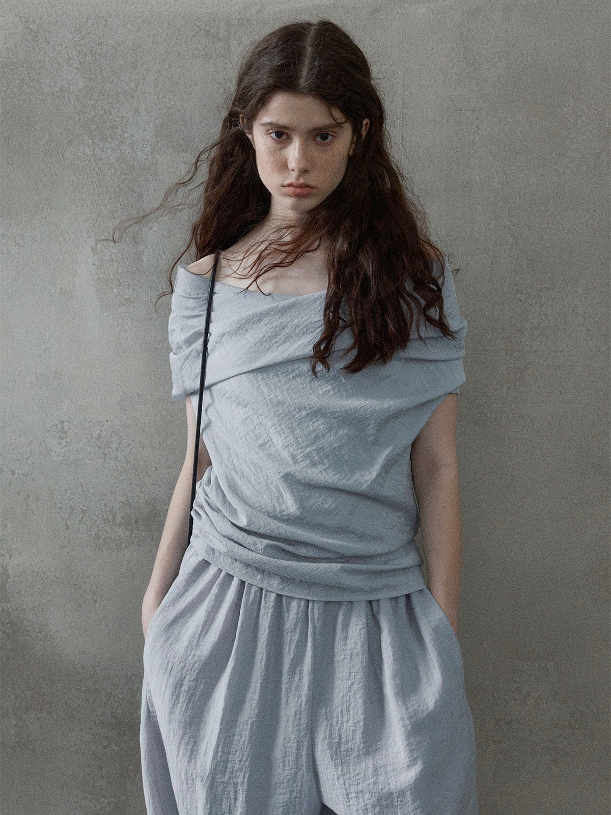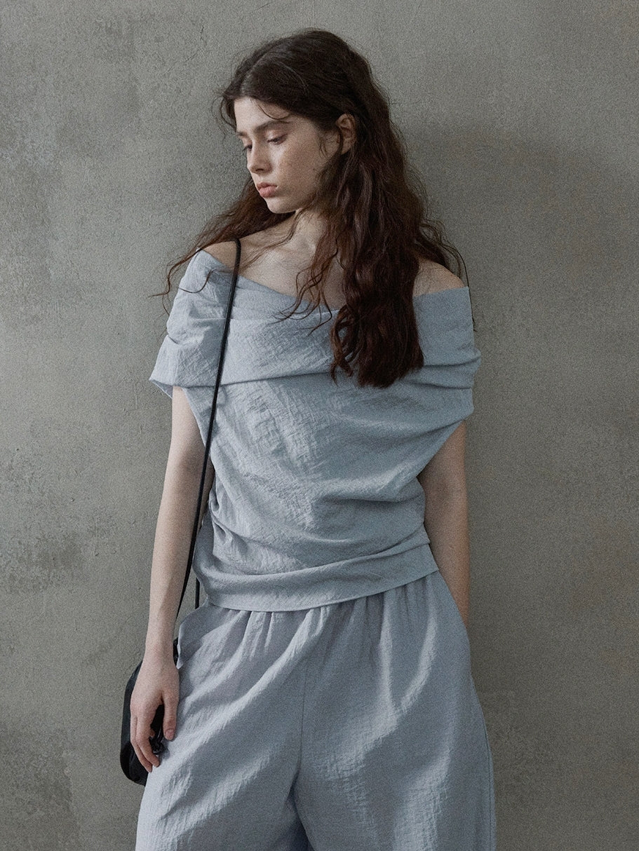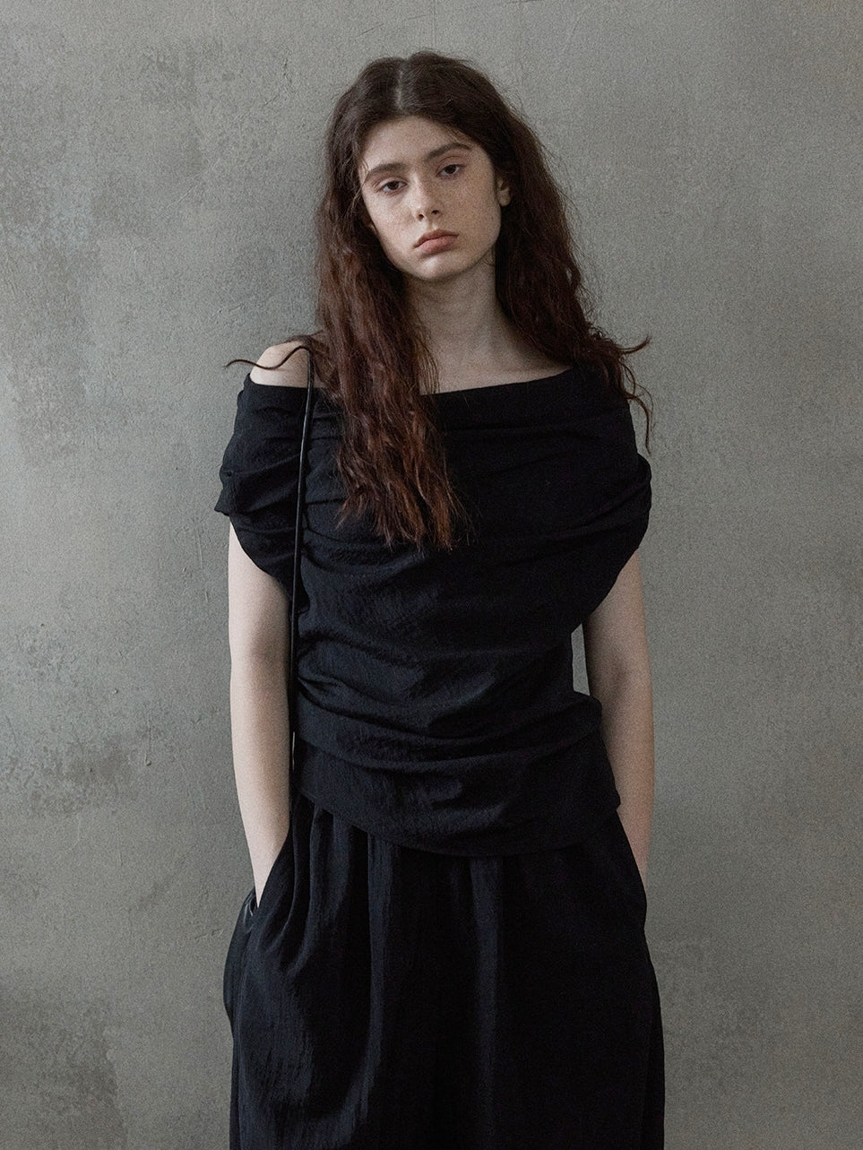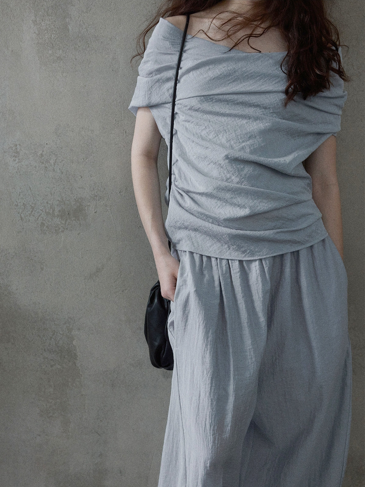 リヨセルドレープオフショルダーブラウス【セットアップ可】