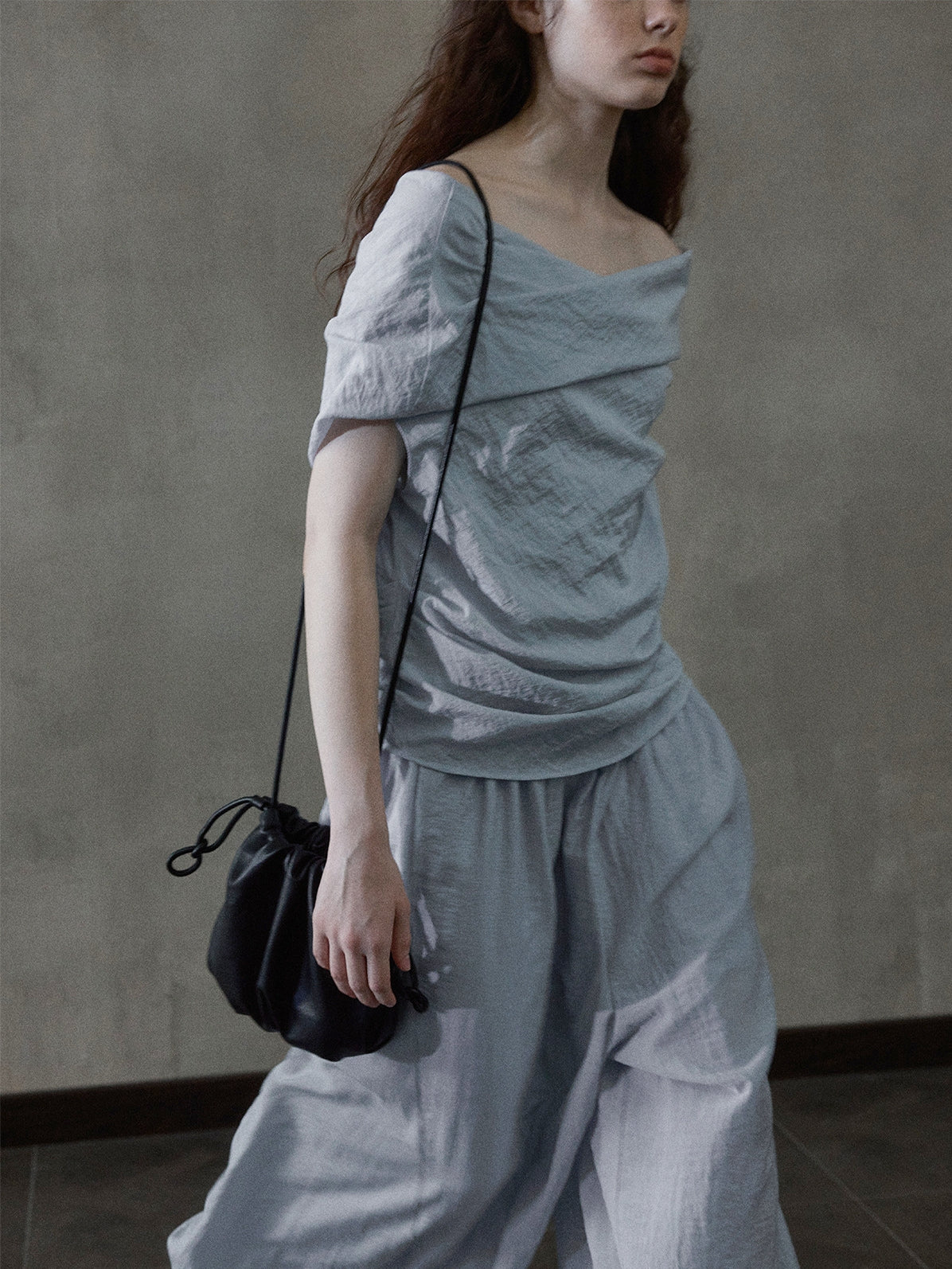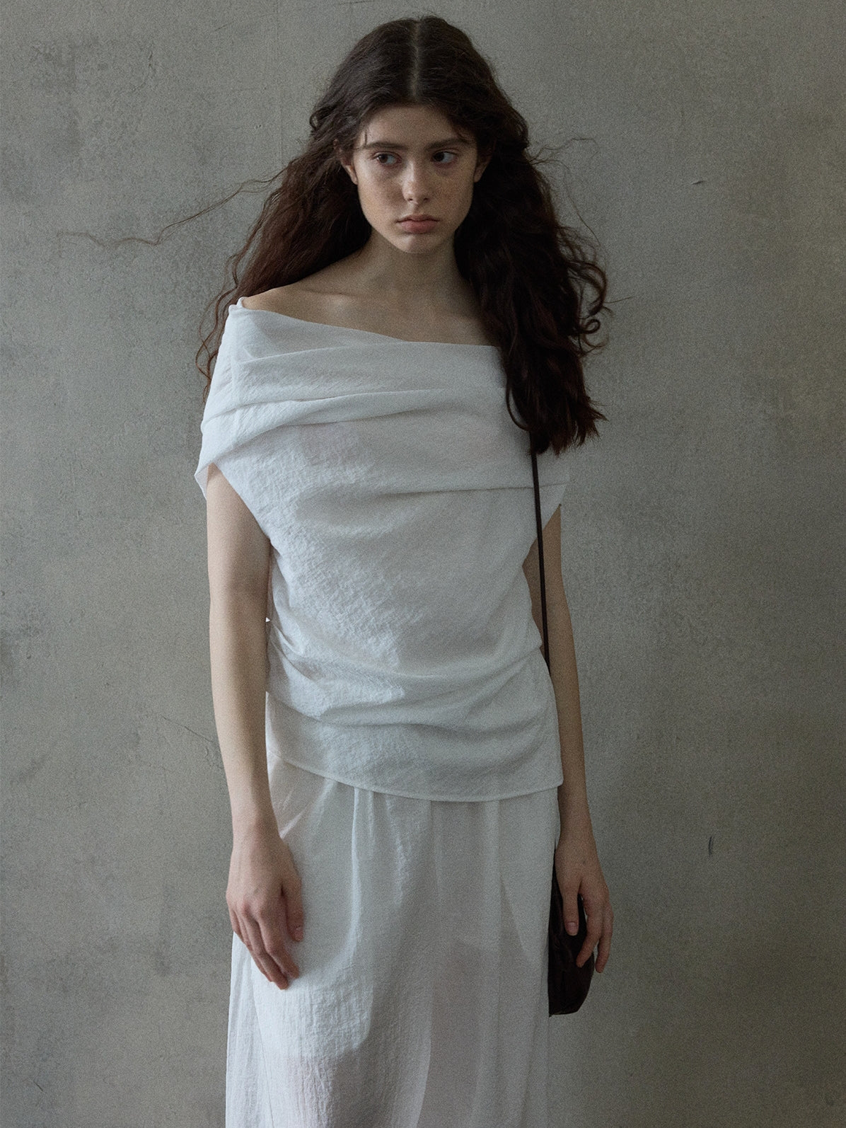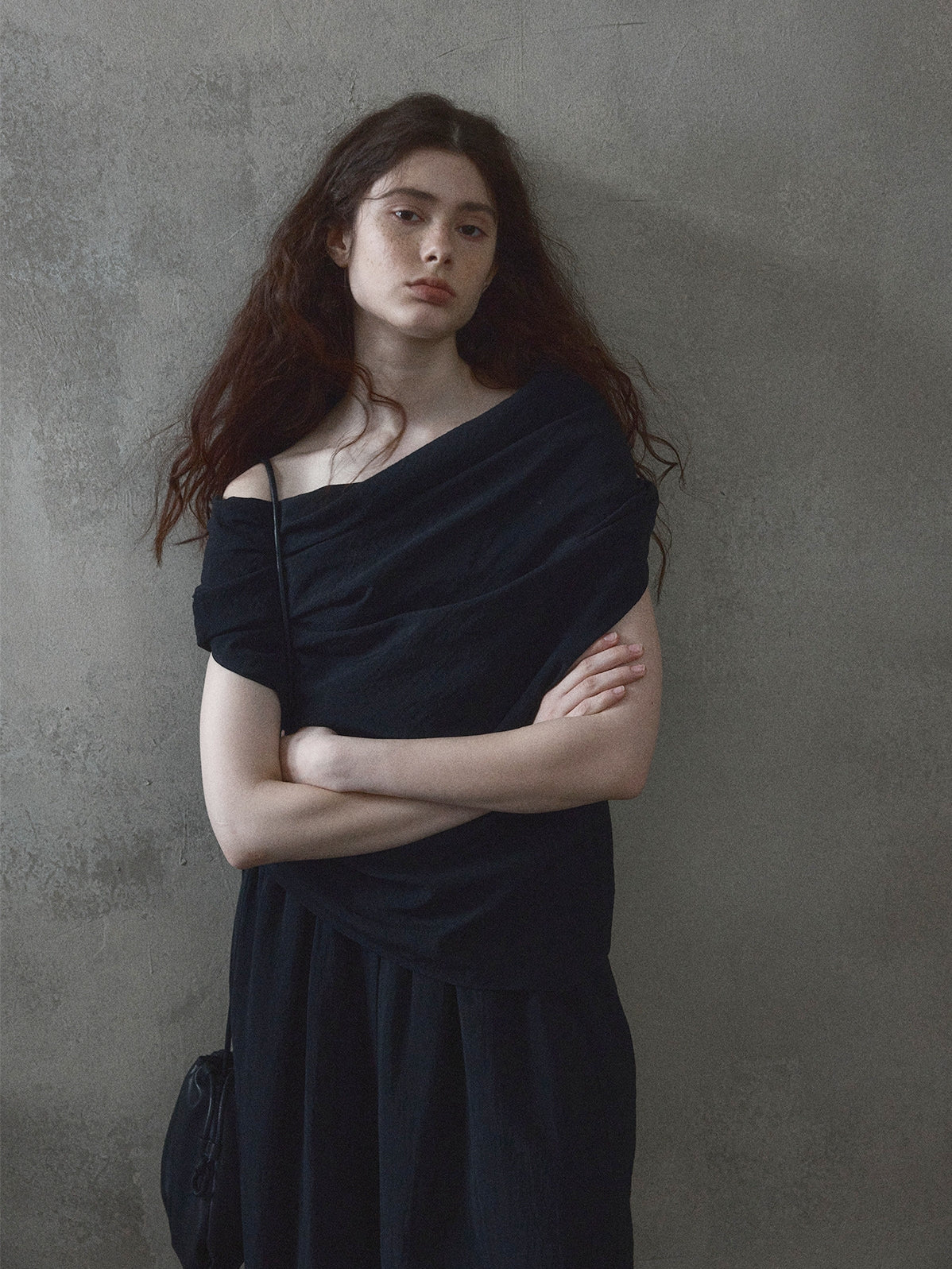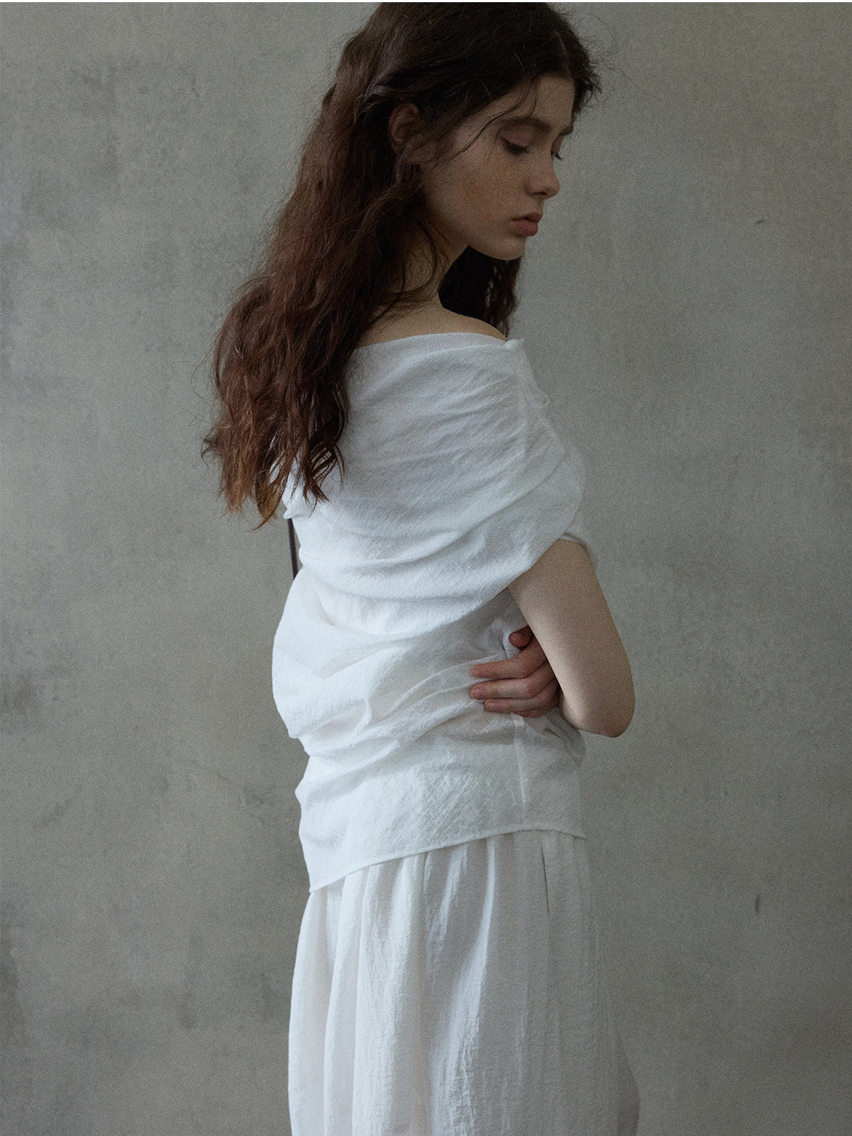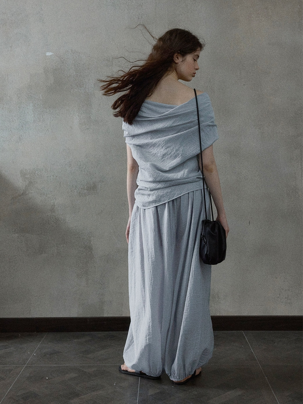 リヨセルドレープオフショルダーブラウス【セットアップ可】