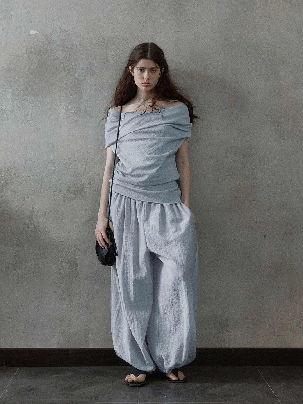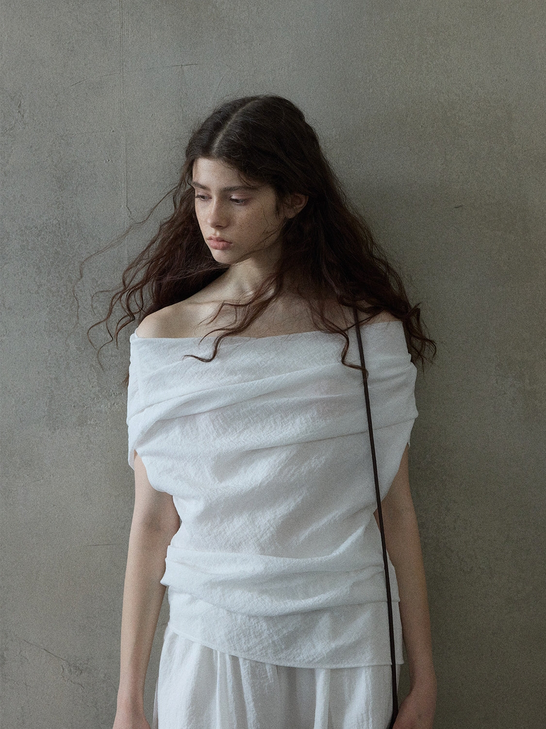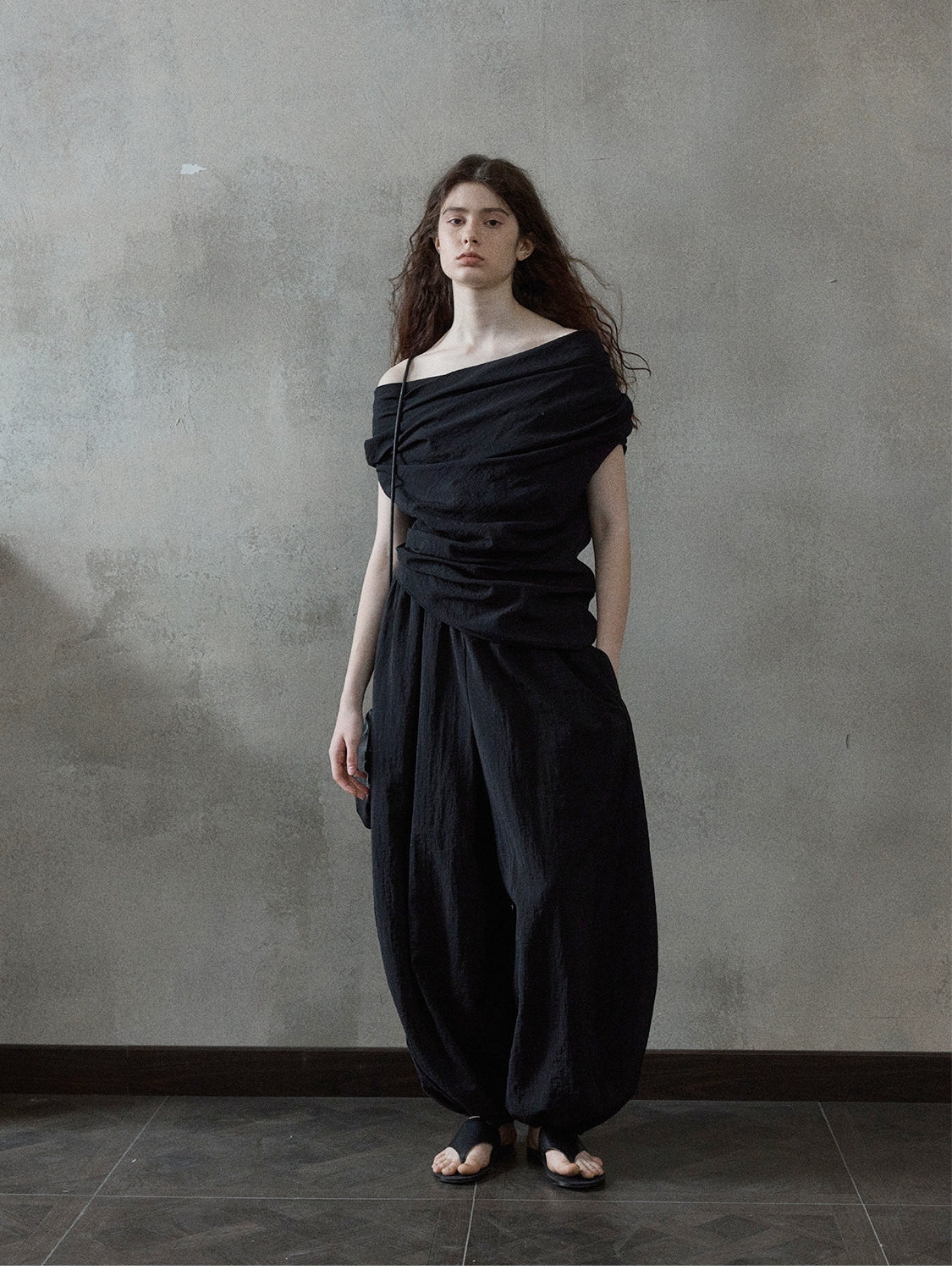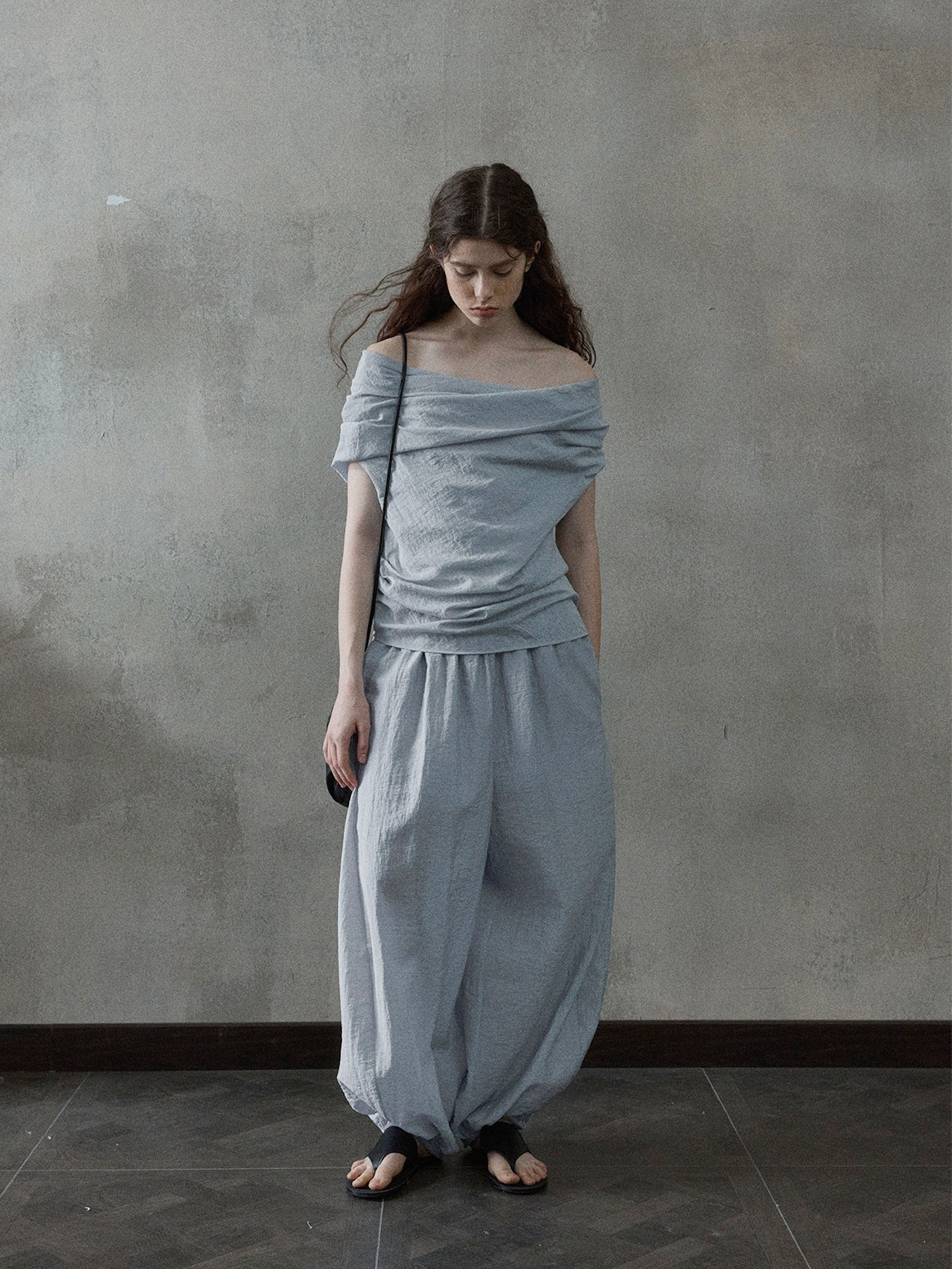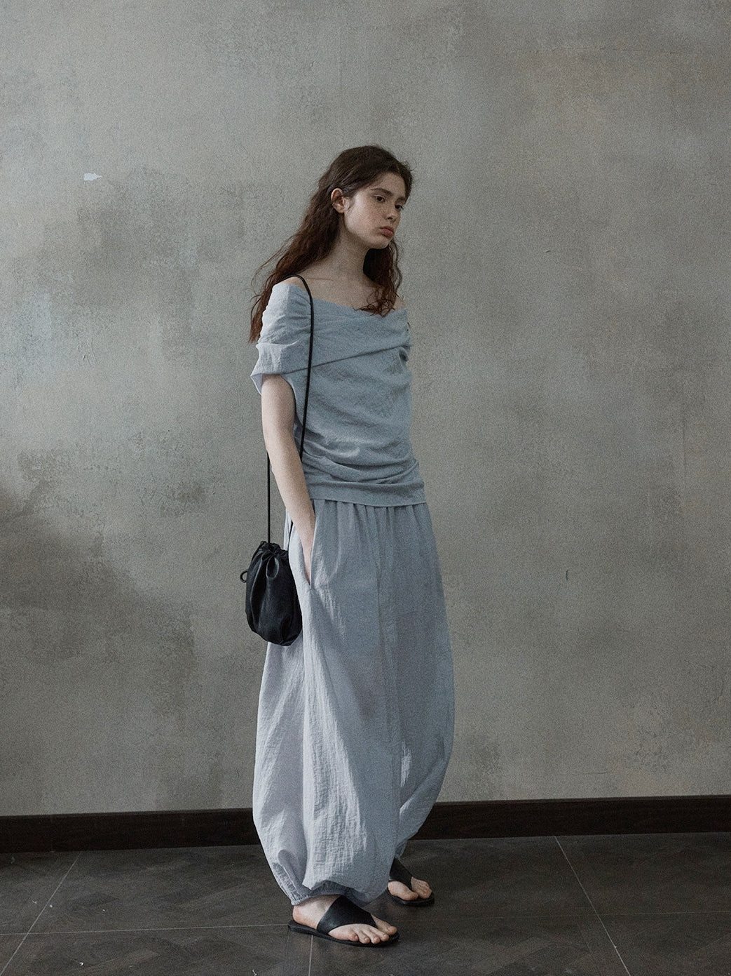リヨセルドレープオフショルダーブラウス【セットアップ可】