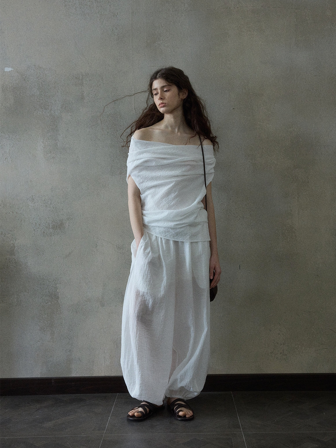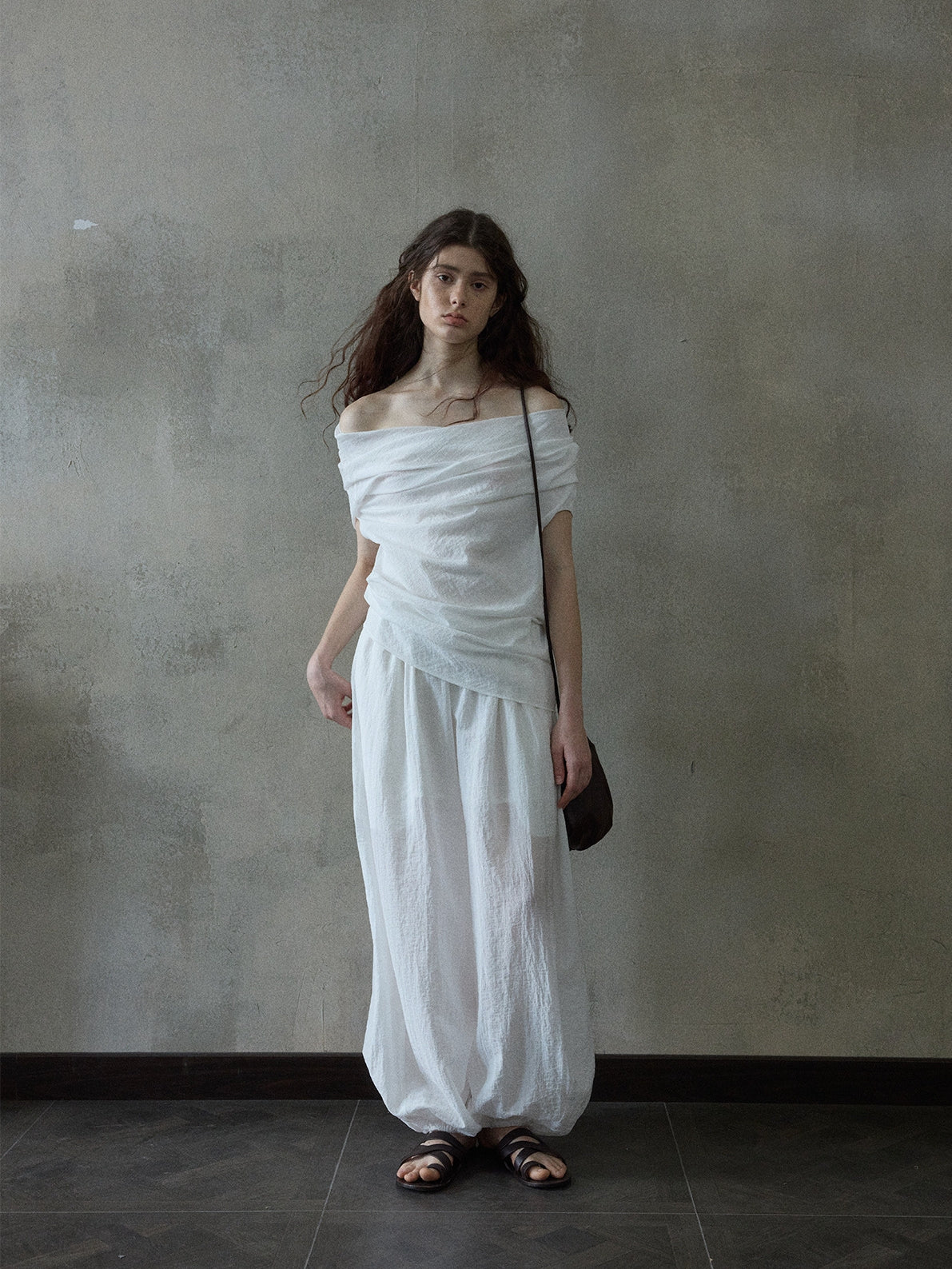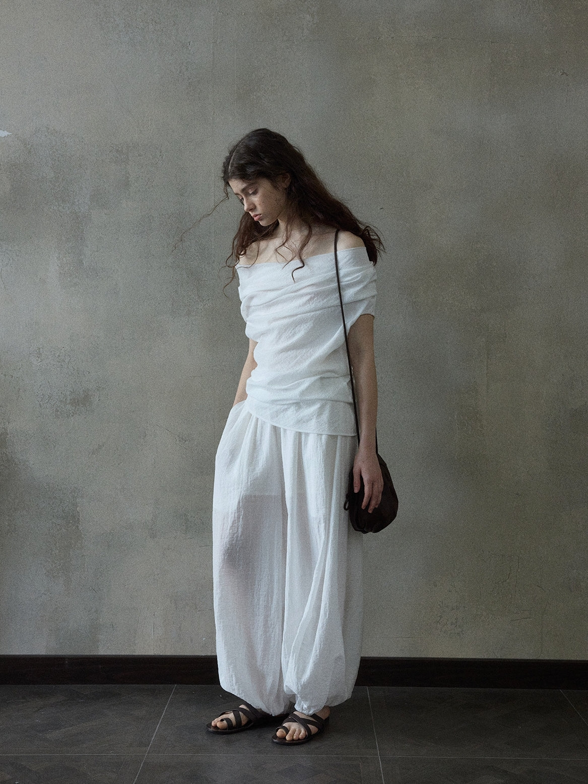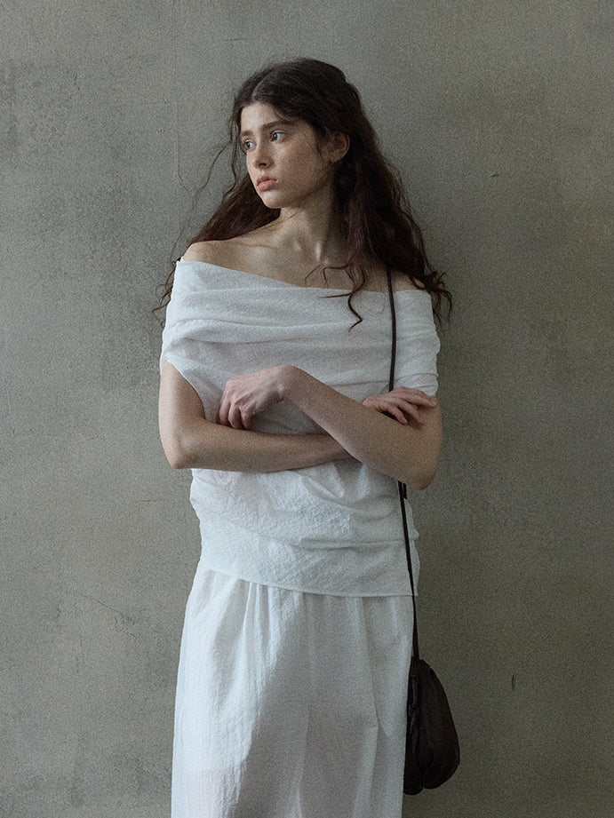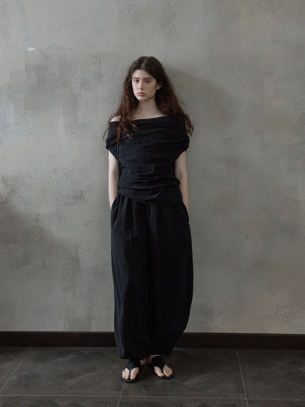 リヨセルドレープオフショルダーブラウス【セットアップ可】