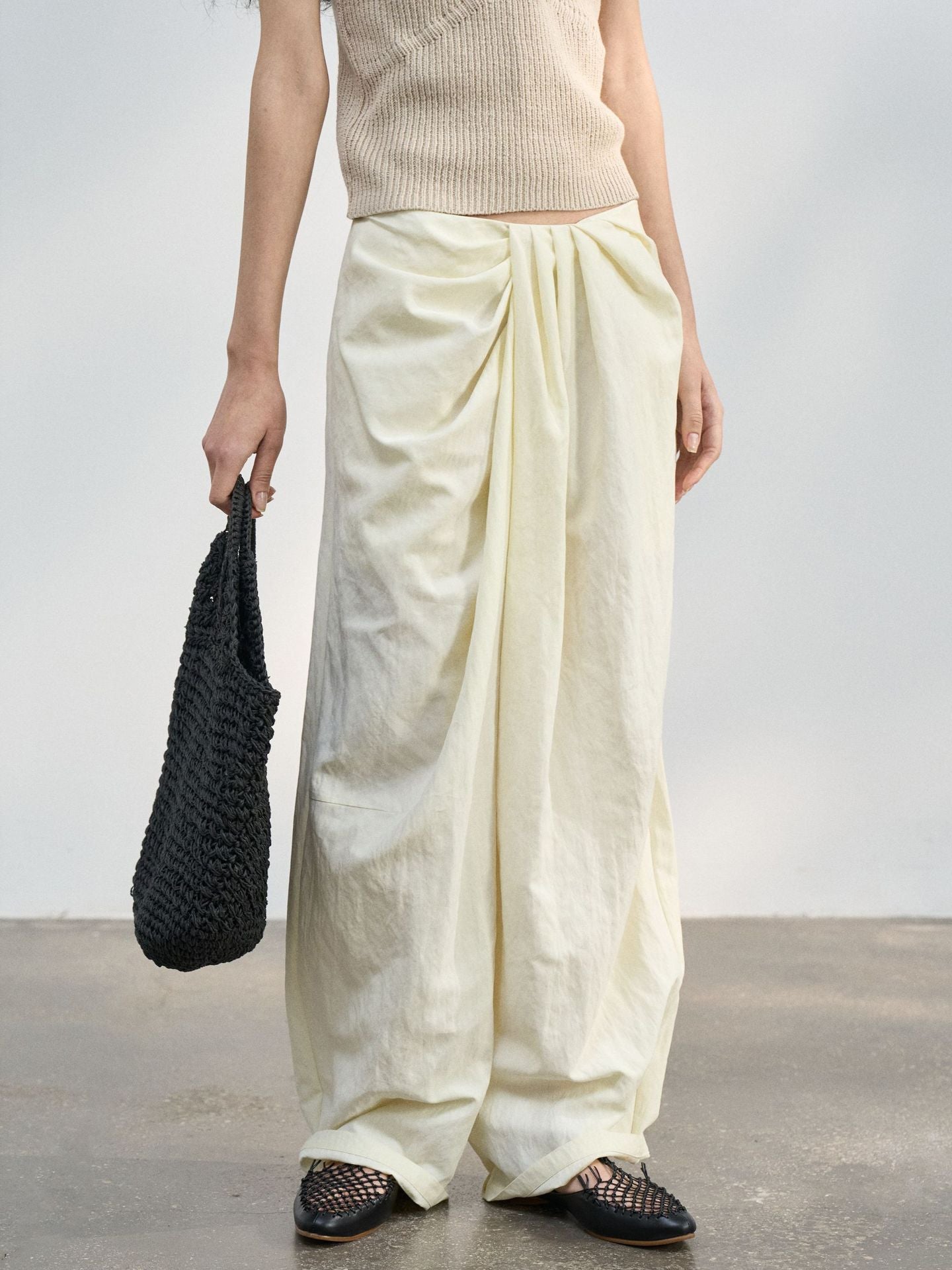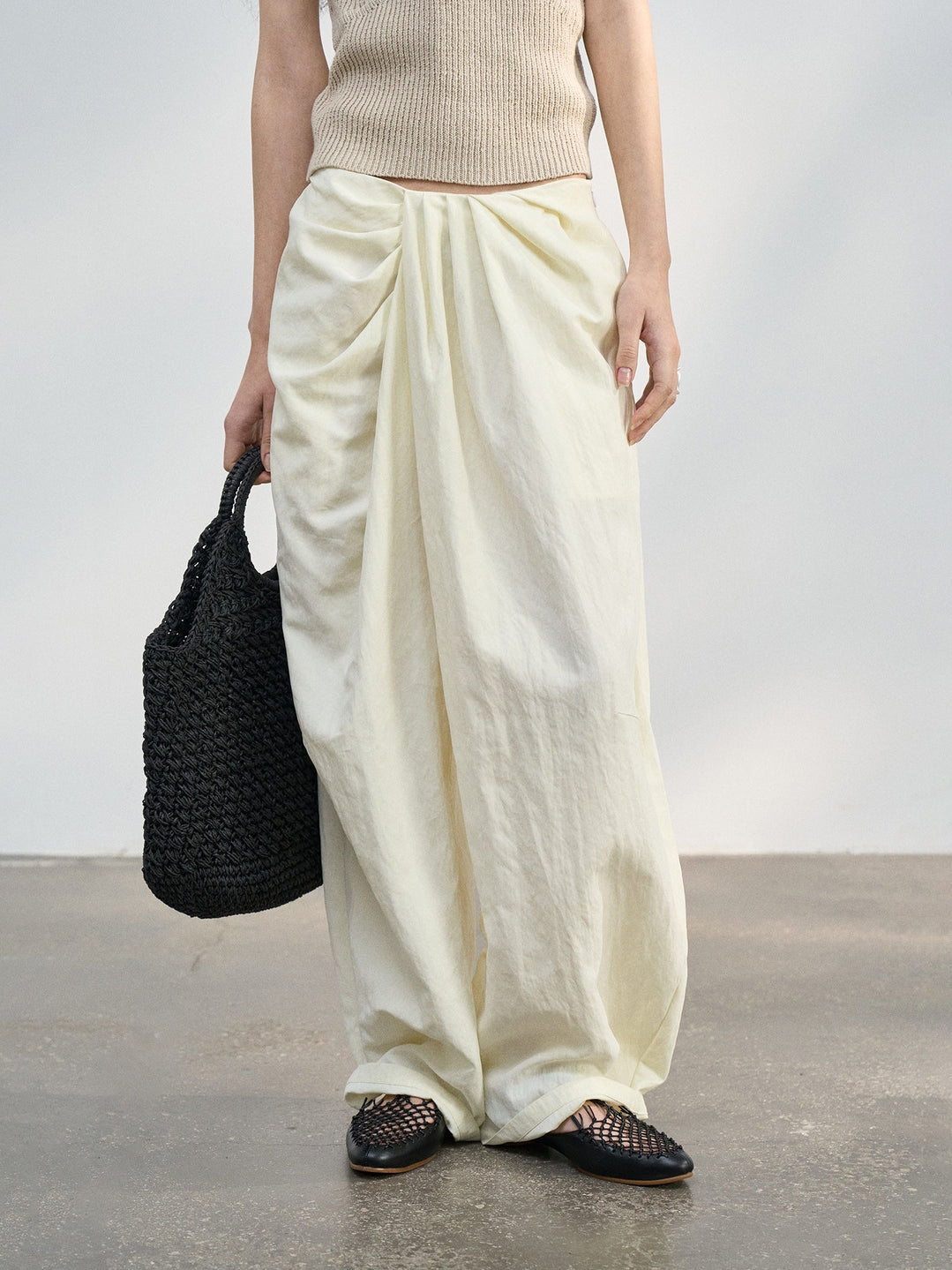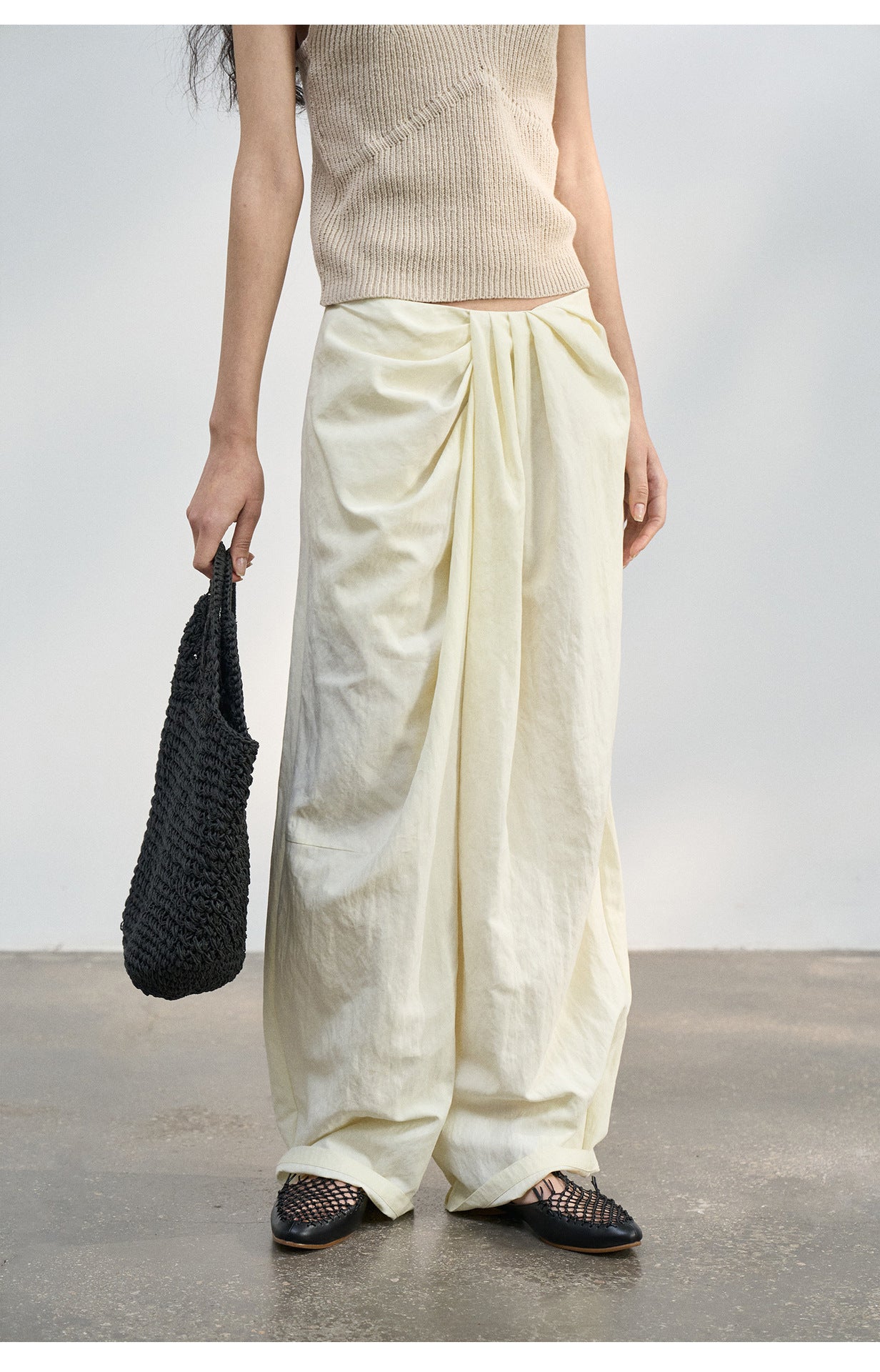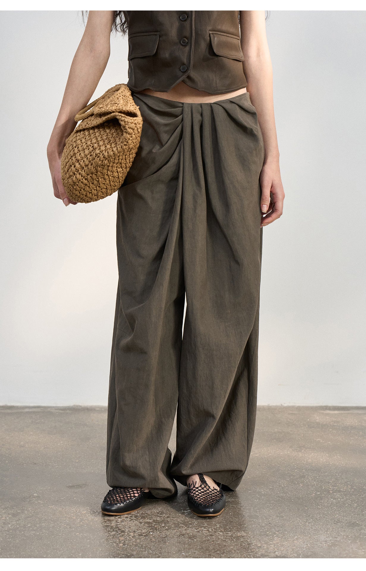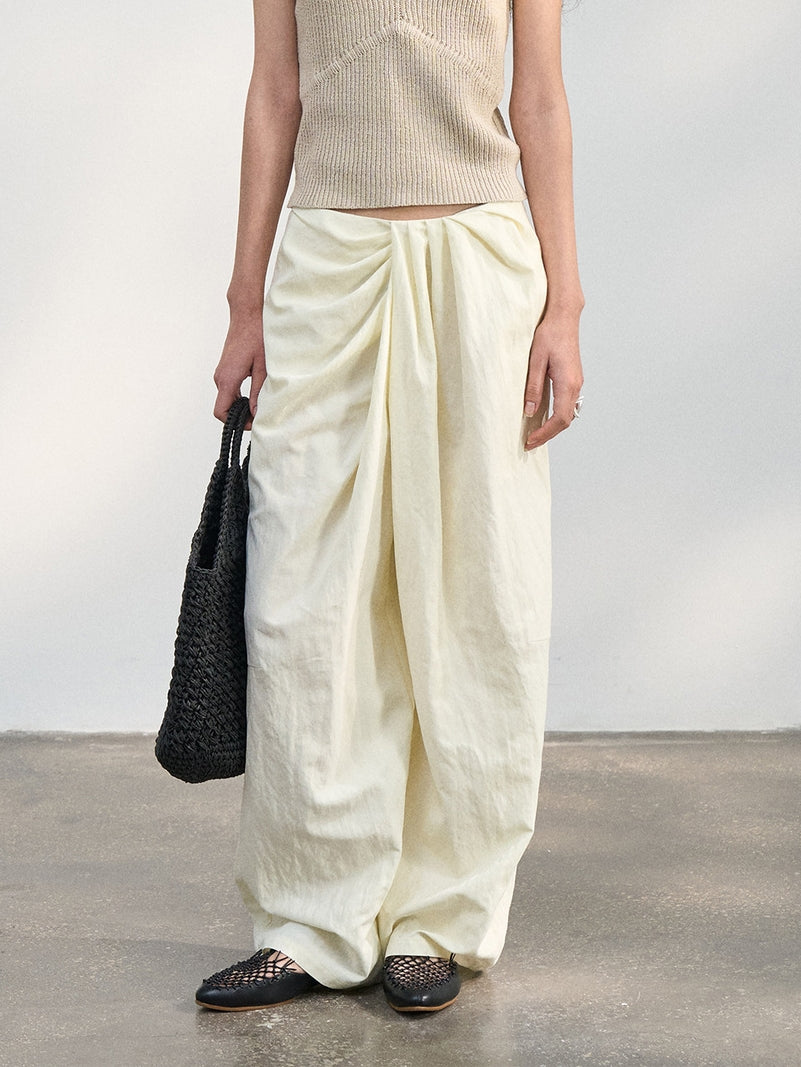 ウエストのタックが効いた今季らしいドレープパンツ。