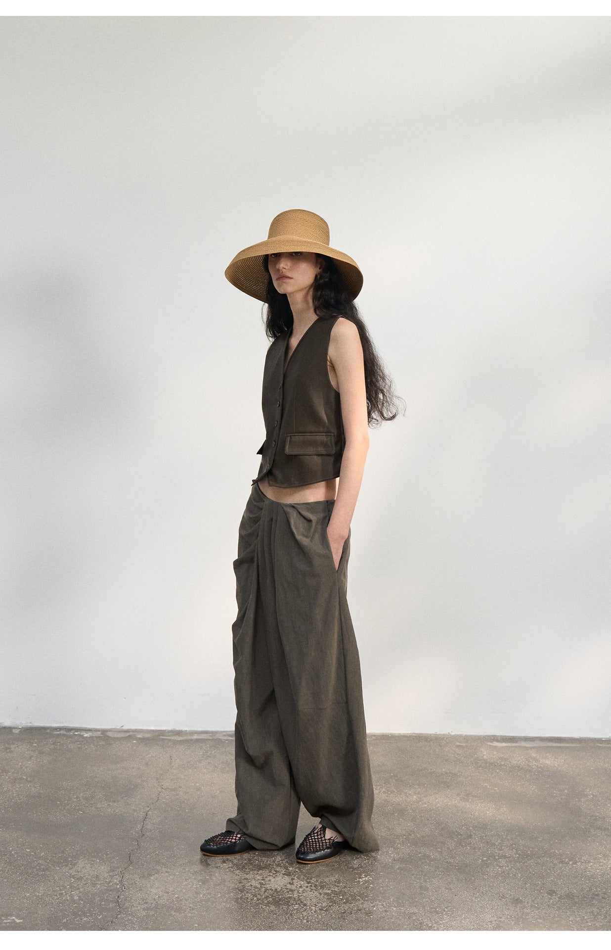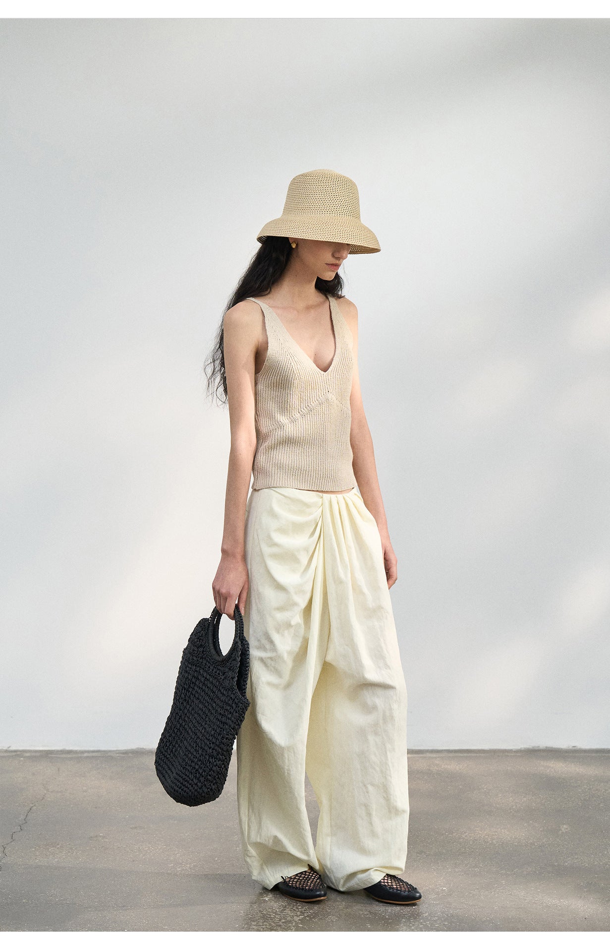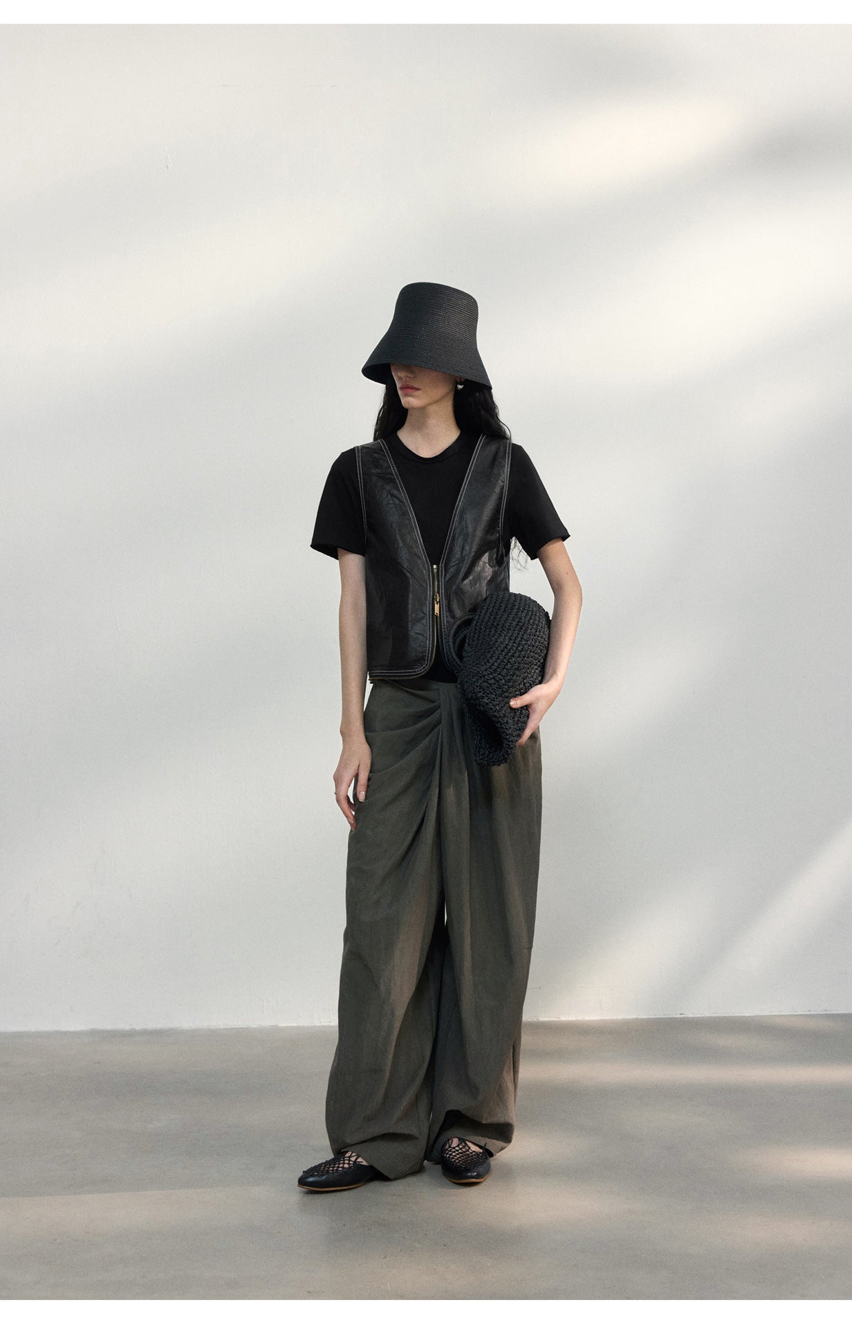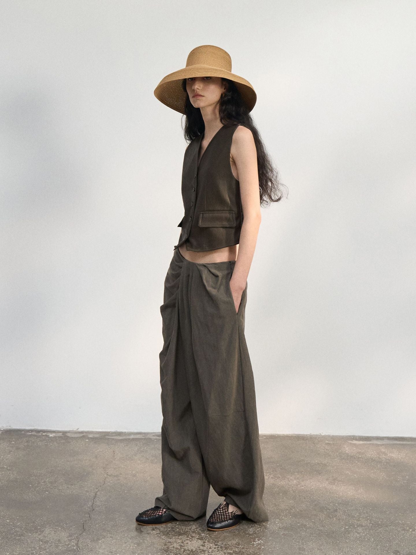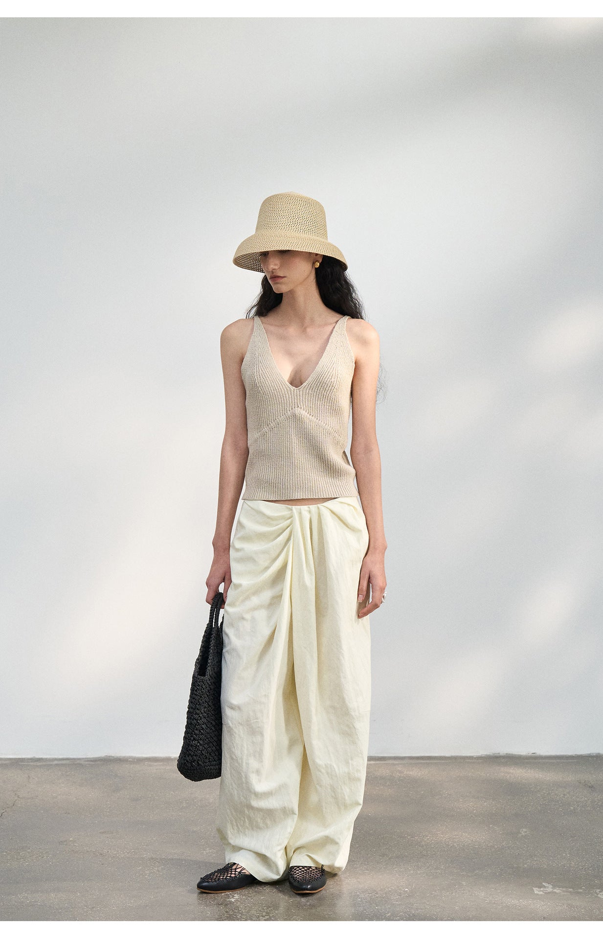 ウエストのタックが効いた今季らしいドレープパンツ。