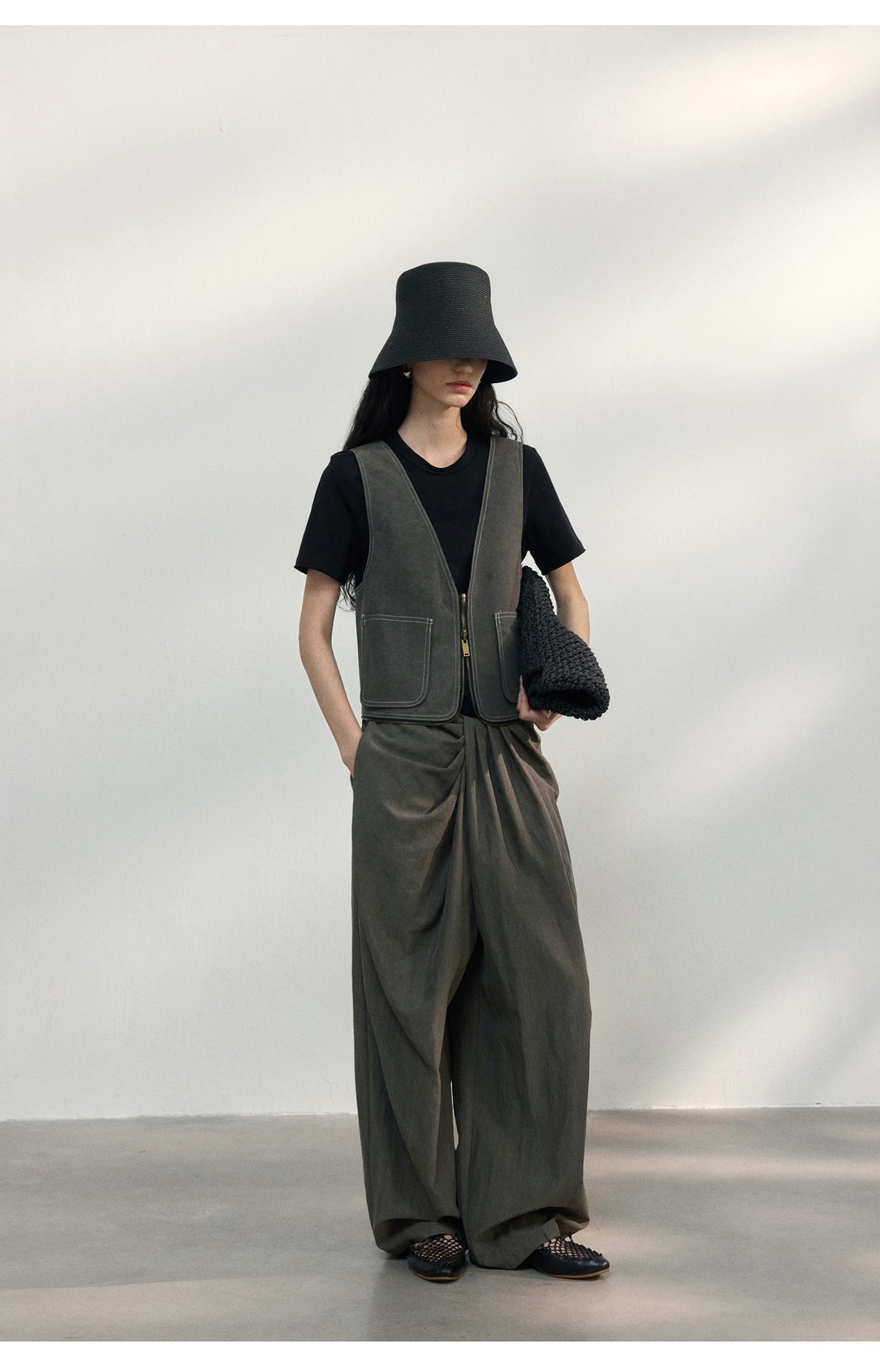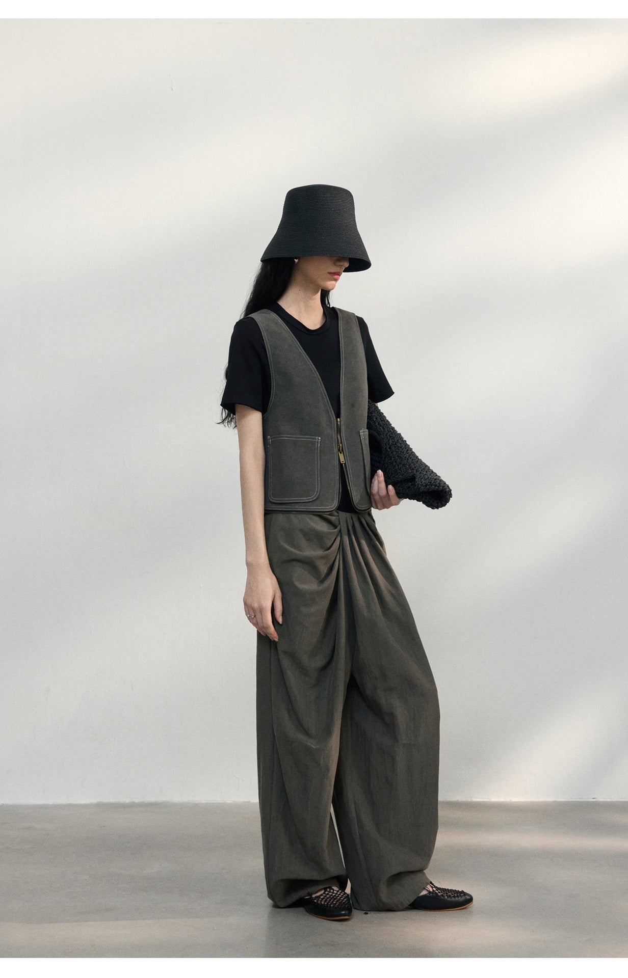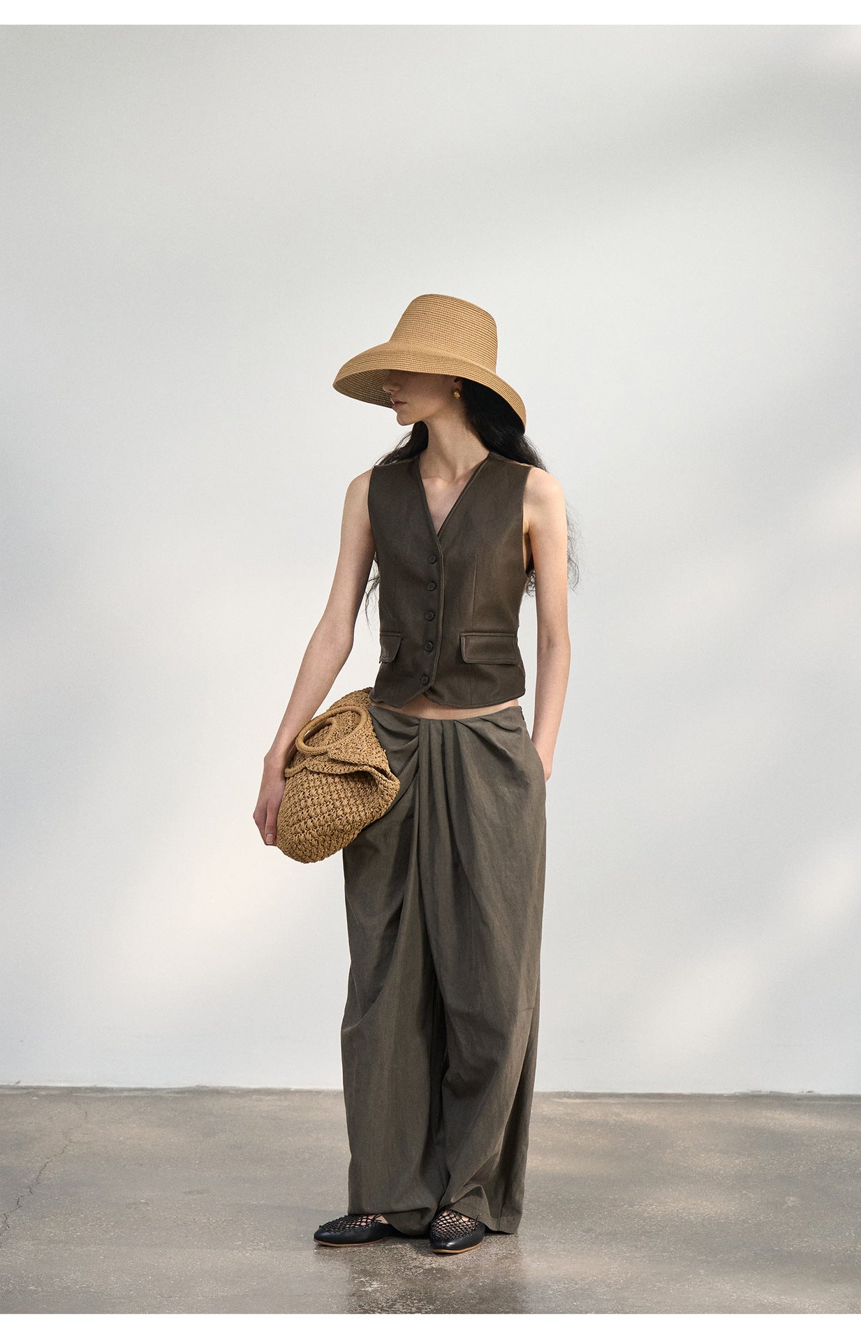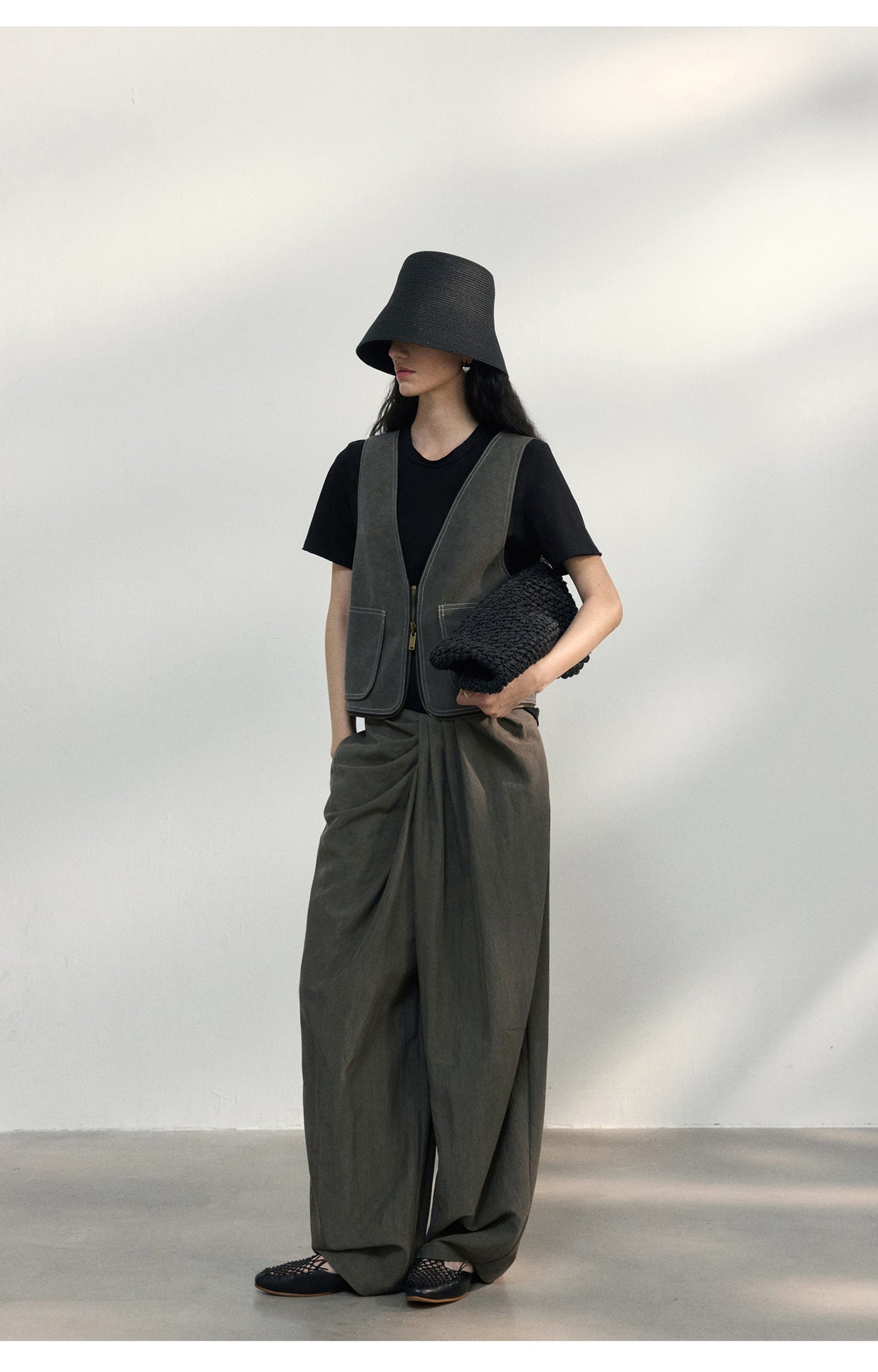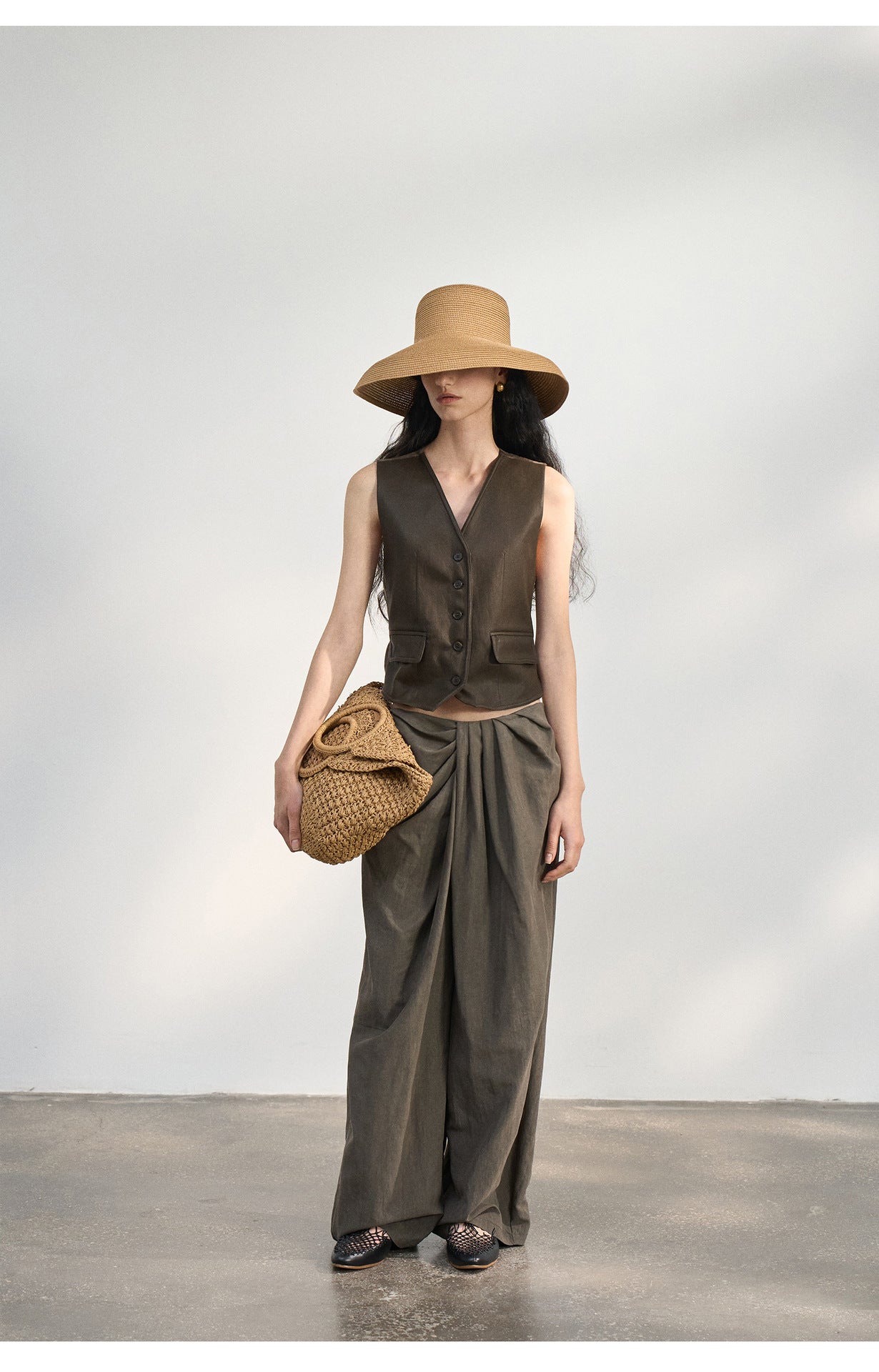 ウエストのタックが効いた今季らしいドレープパンツ。