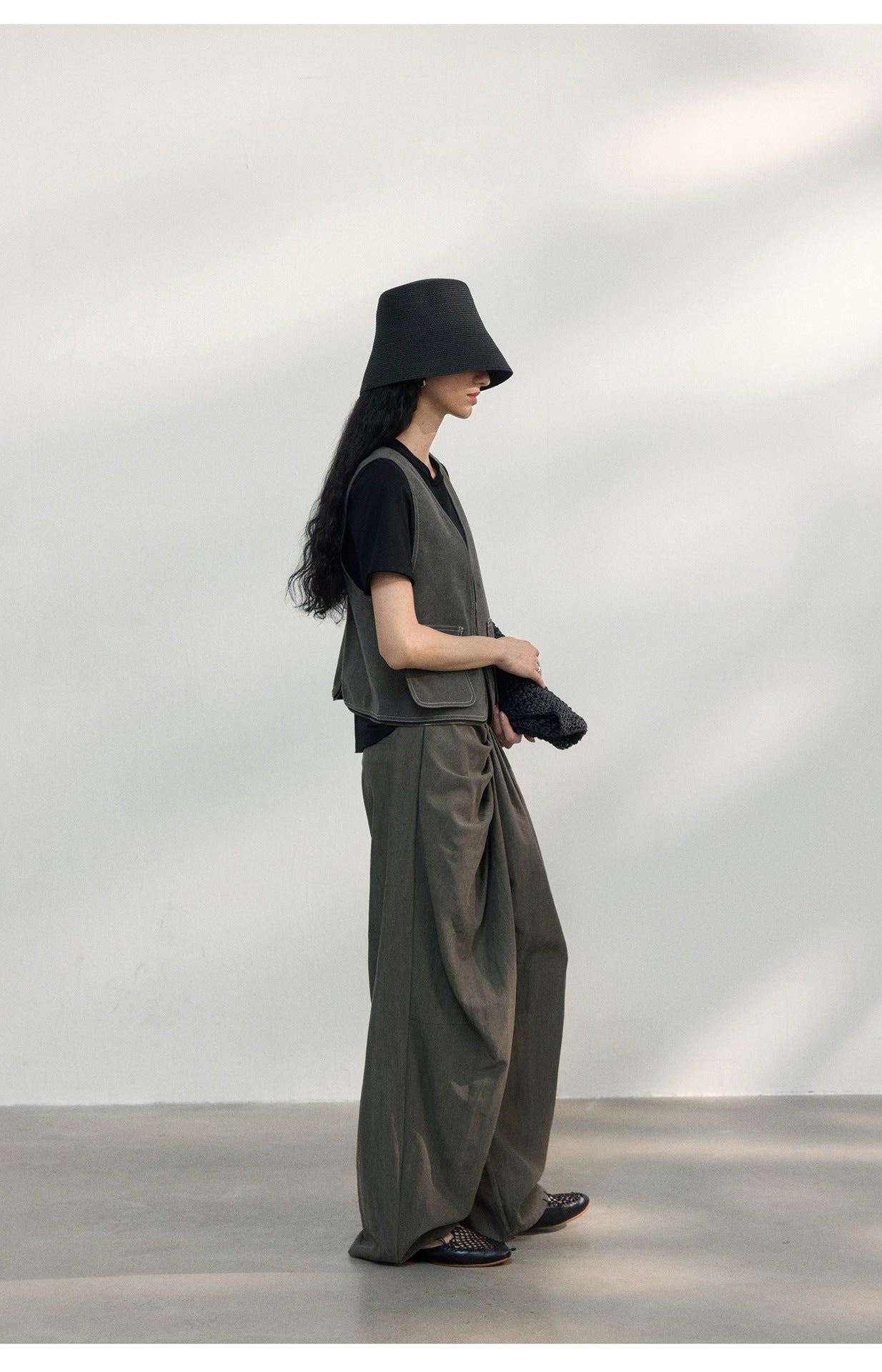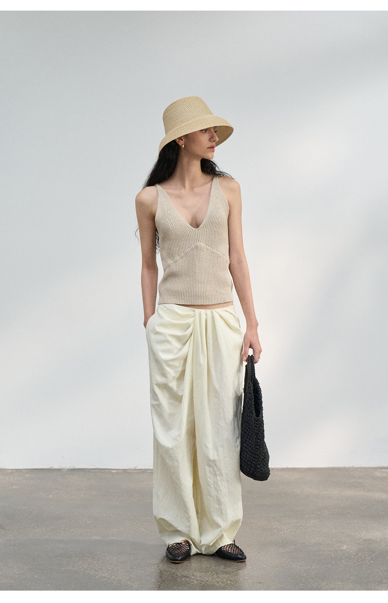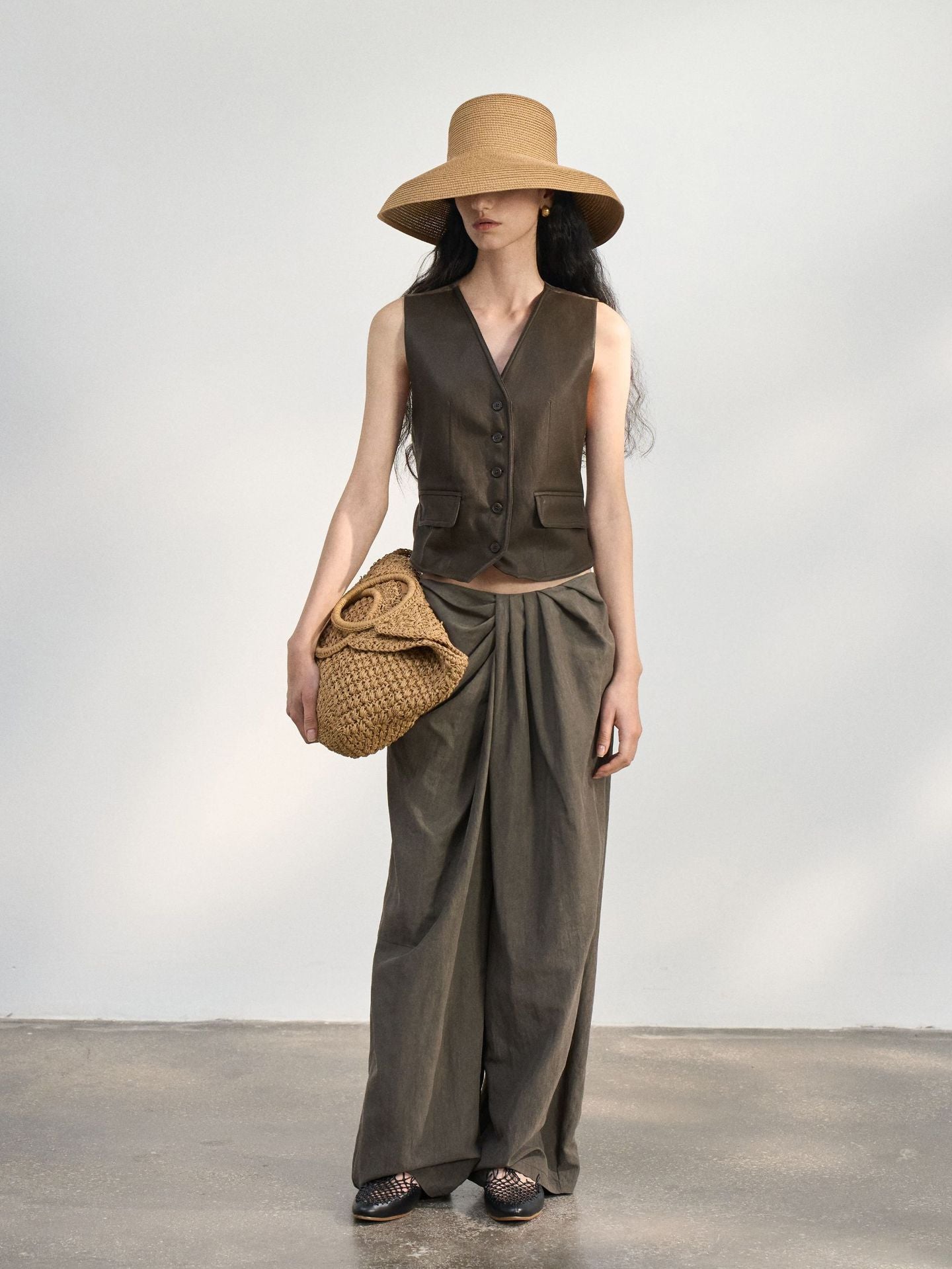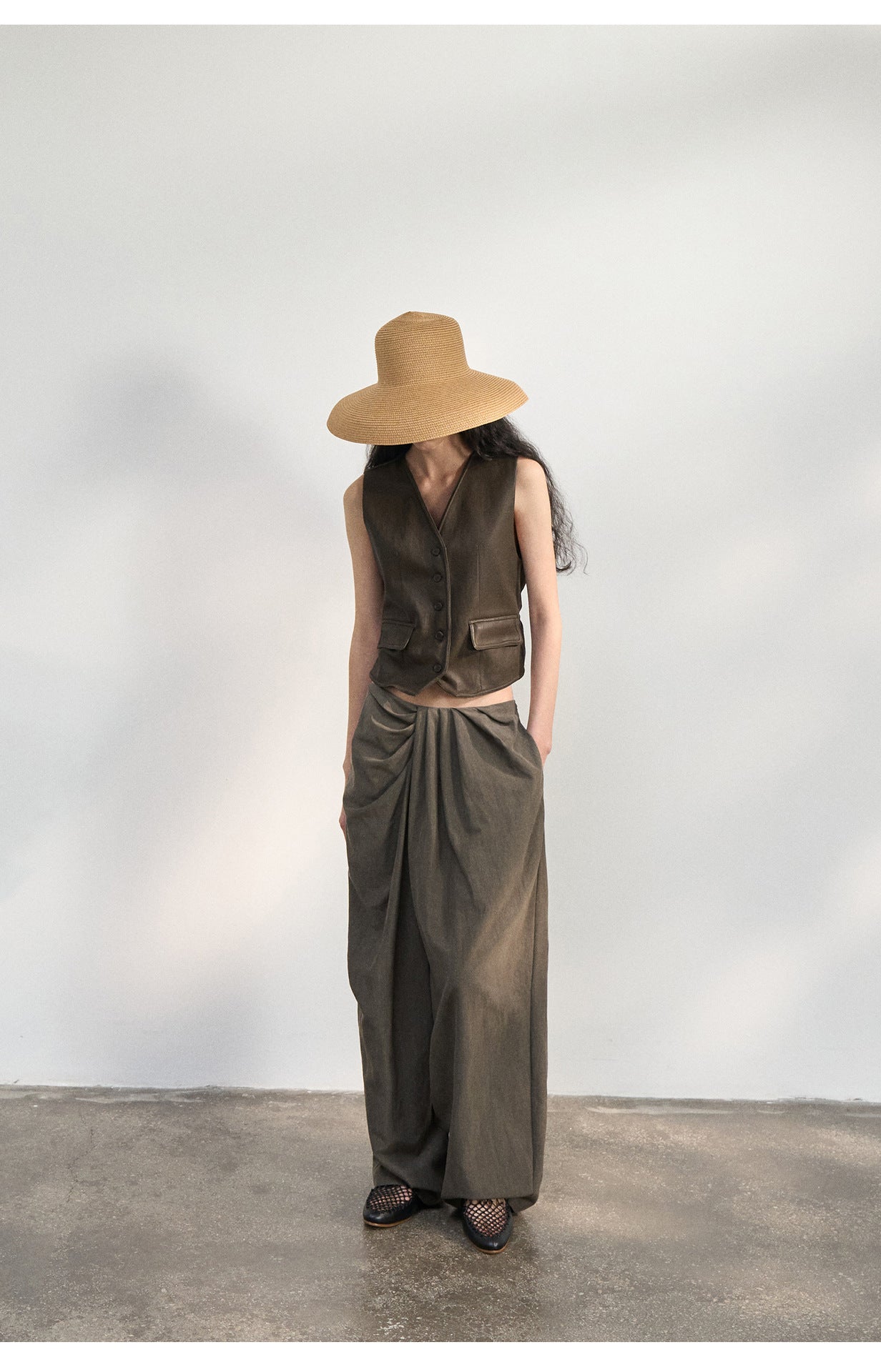 ウエストのタックが効いた今季らしいドレープパンツ。