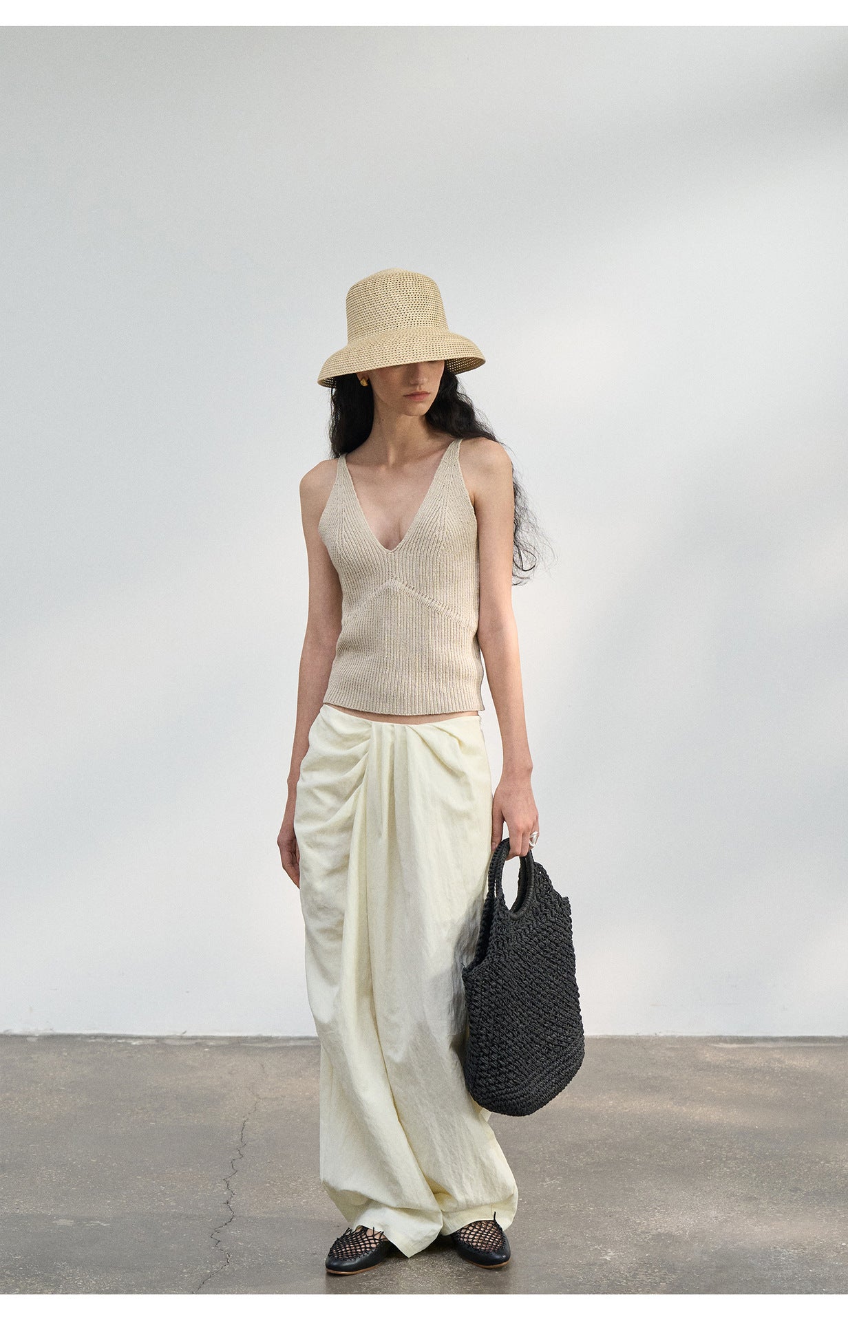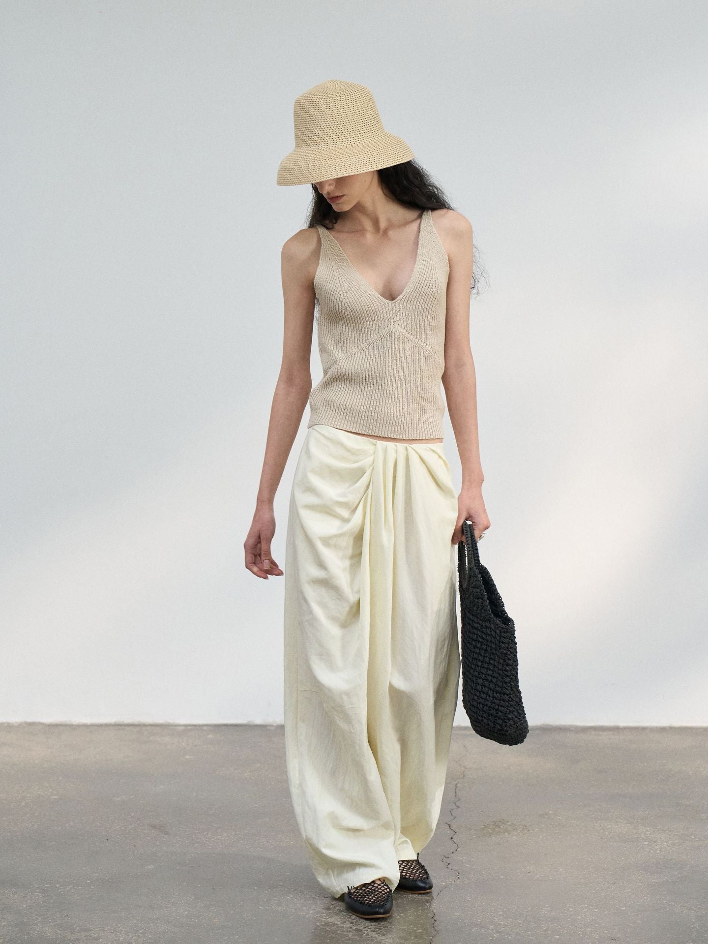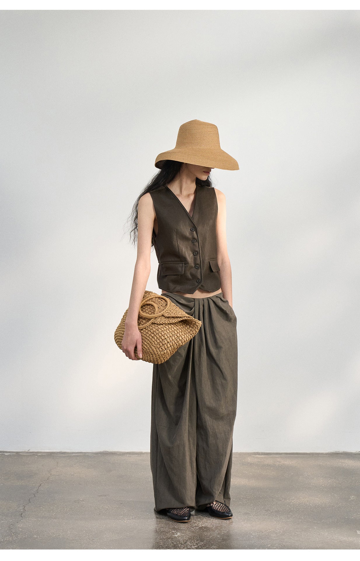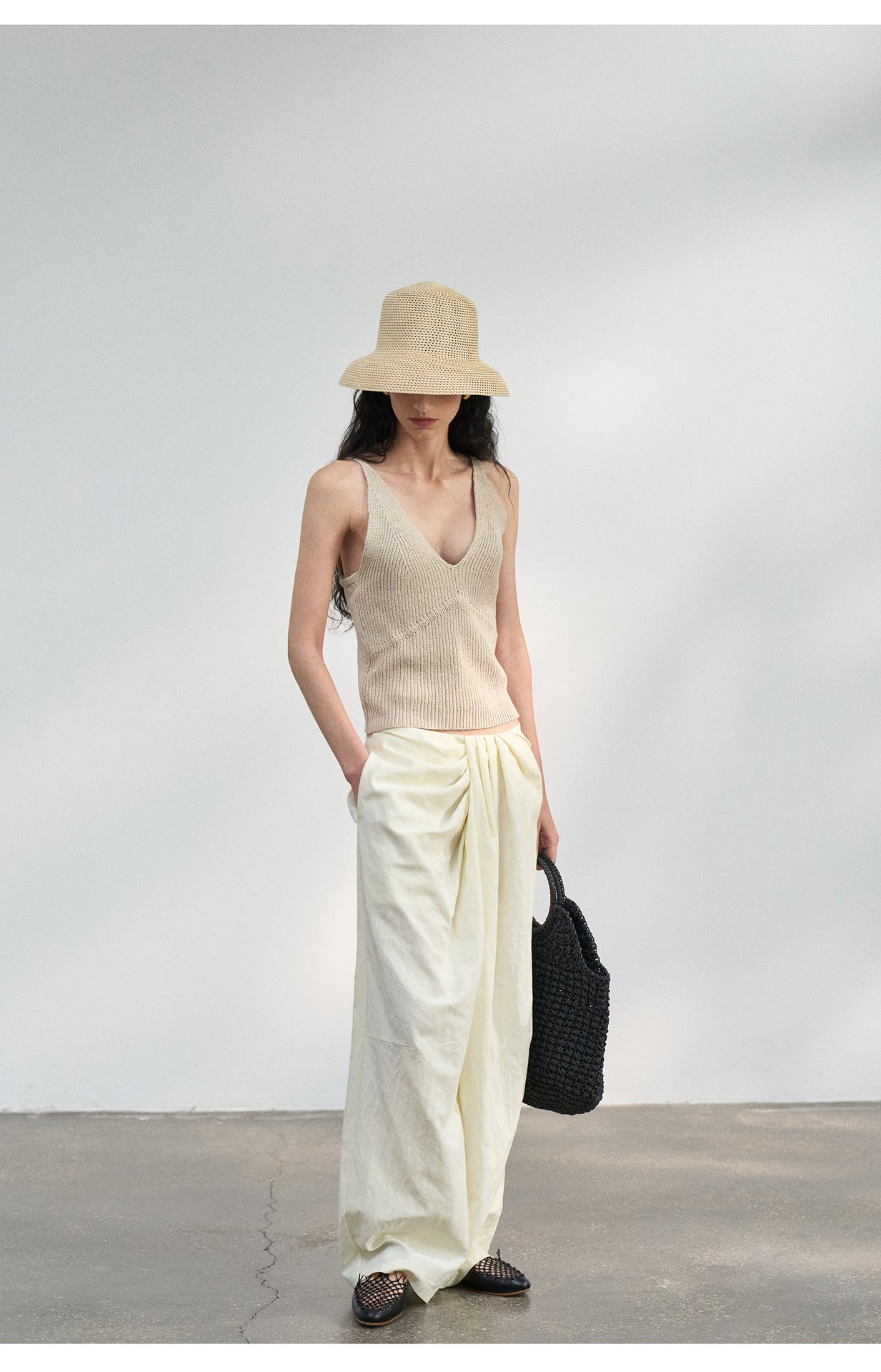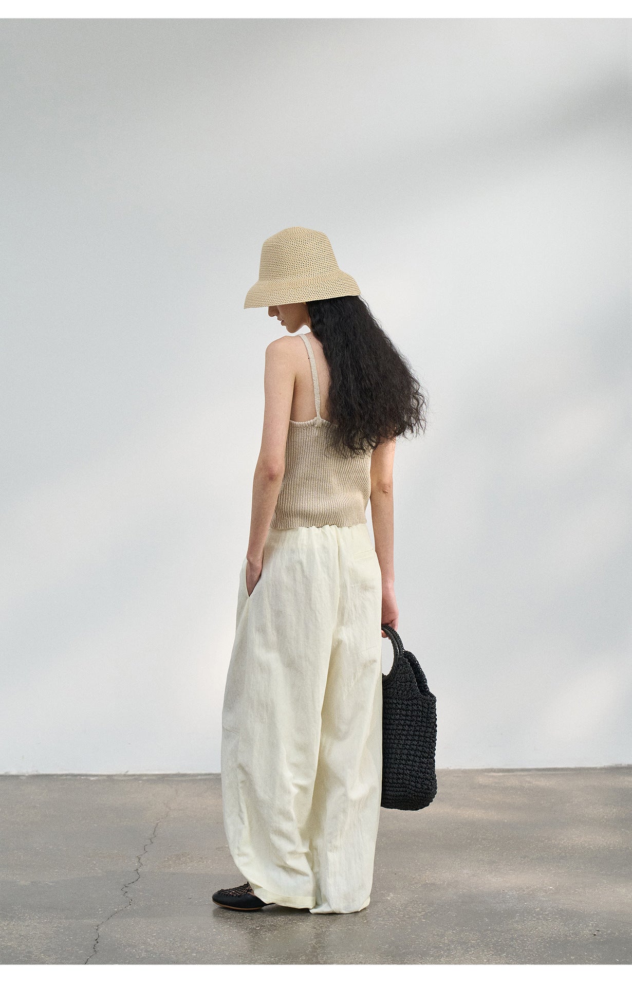 ウエストのタックが効いた今季らしいドレープパンツ。