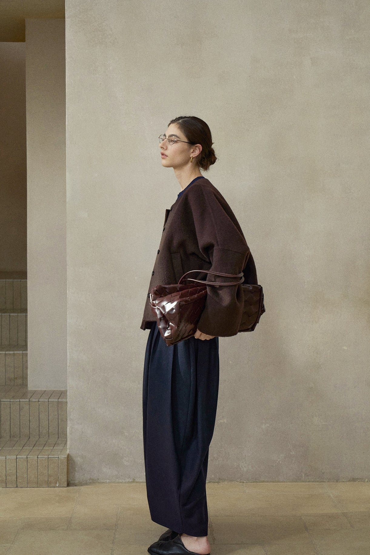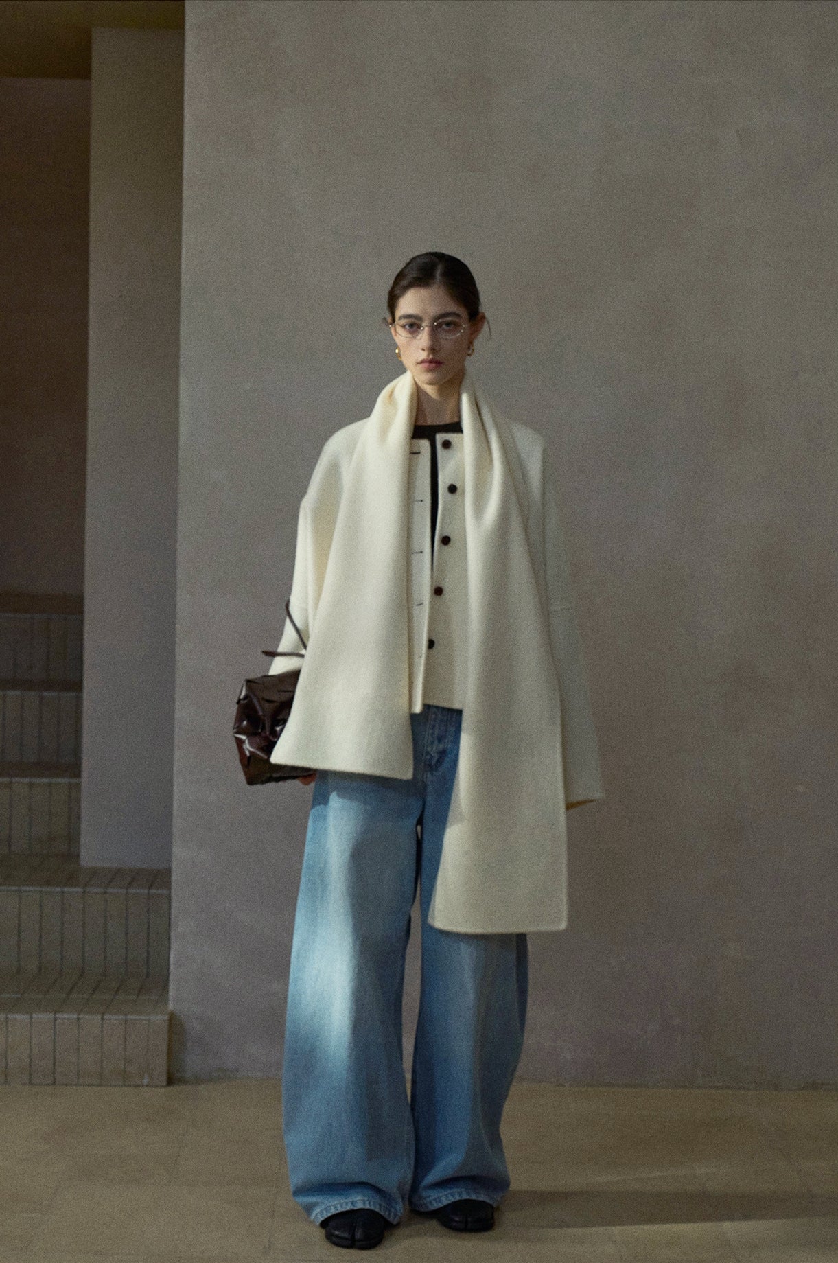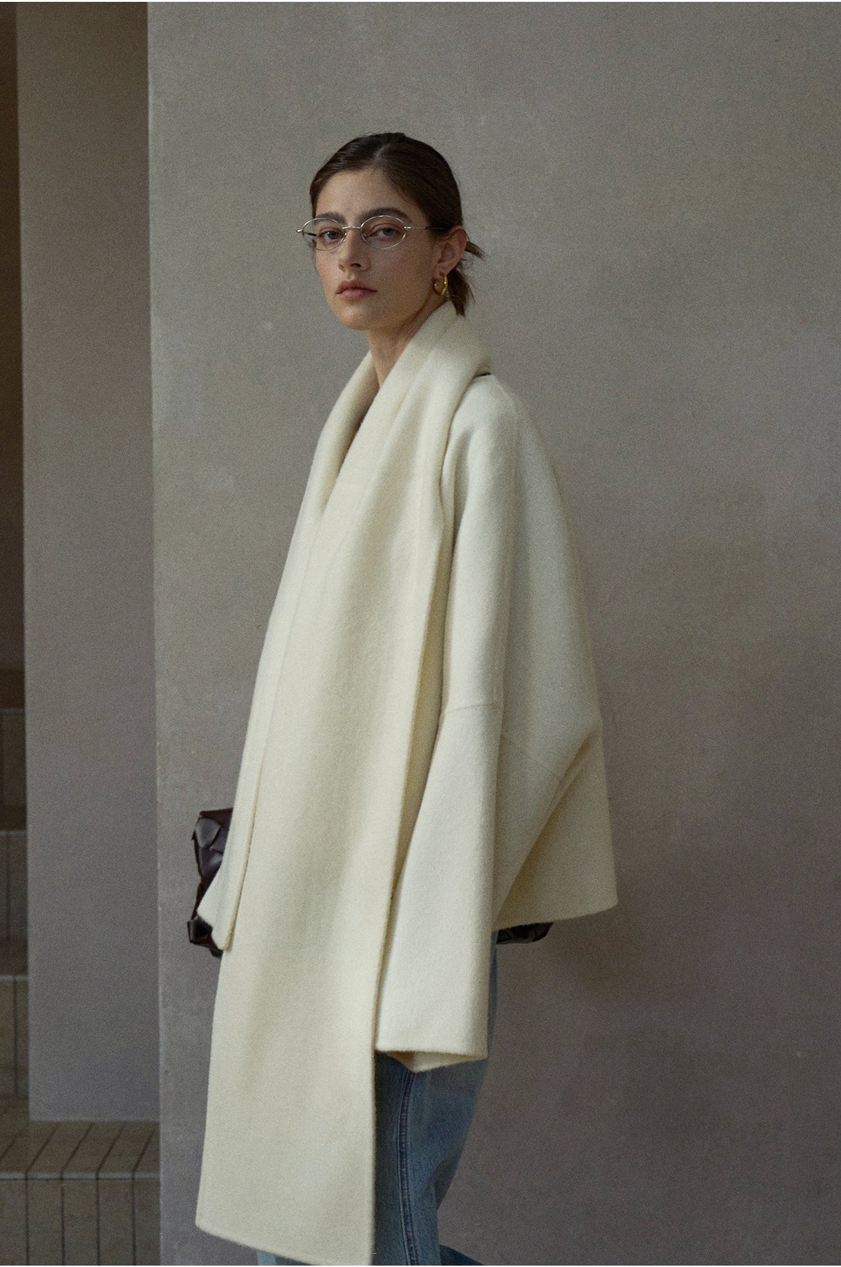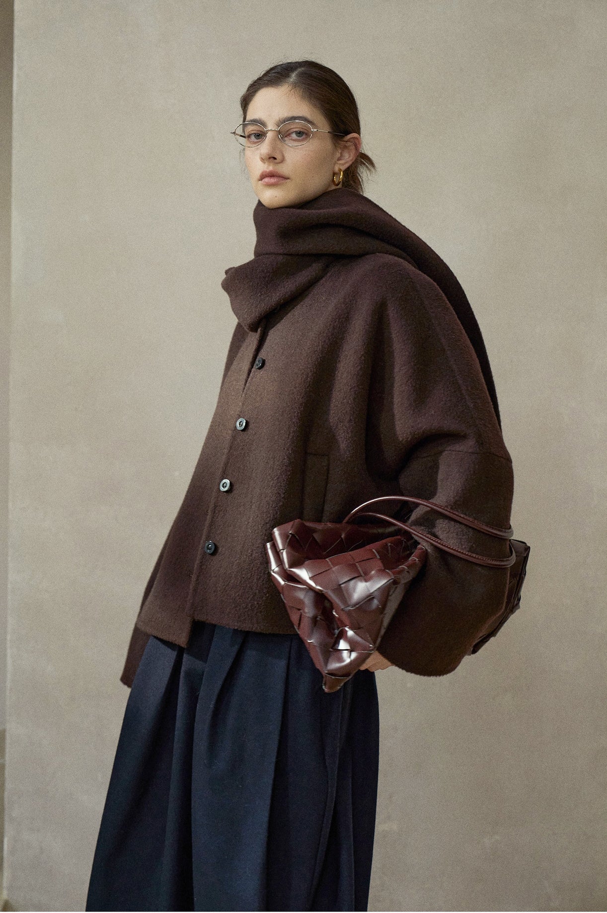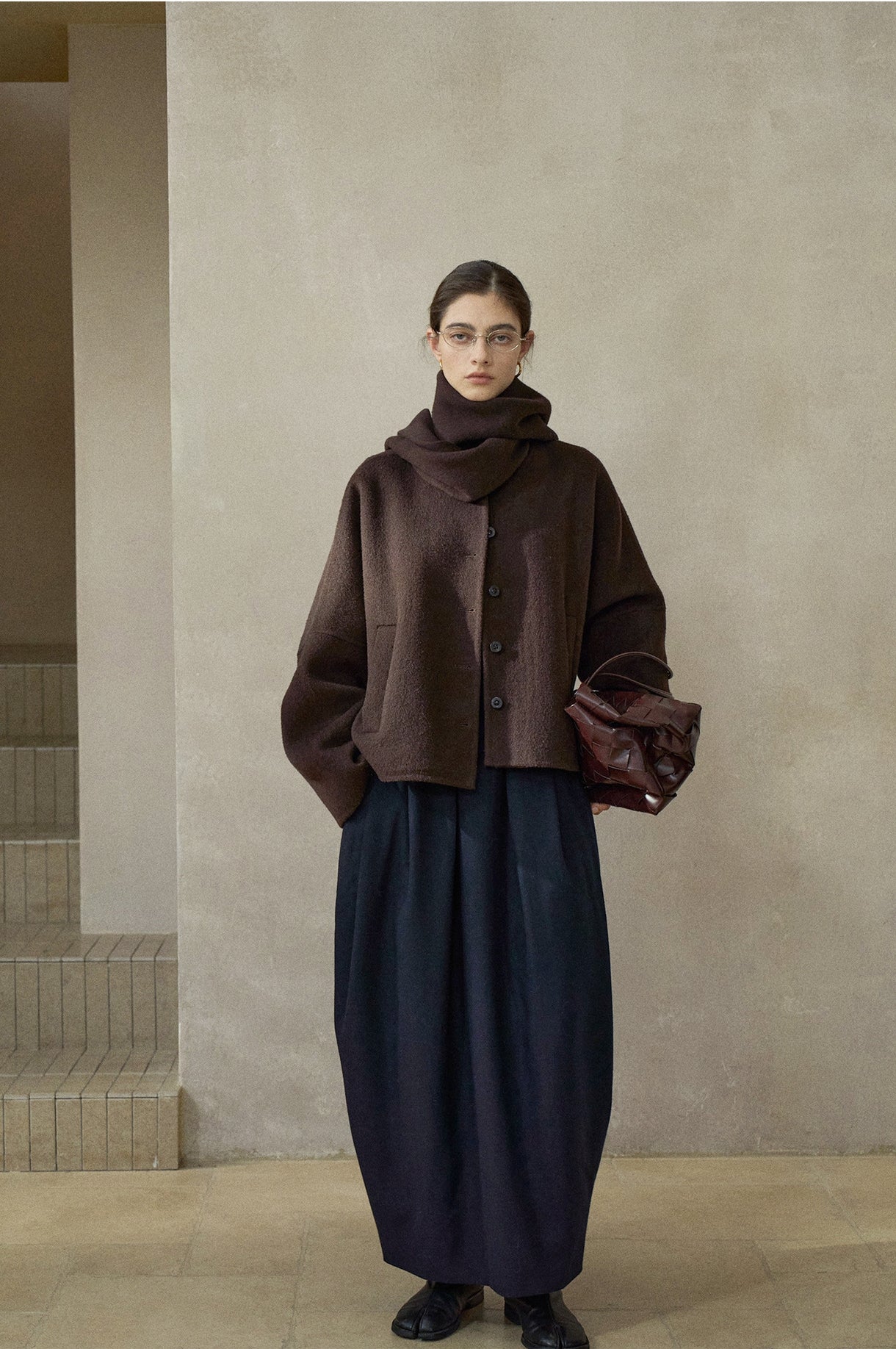 ノーカラーデザインで首回りをすっきりと仕上げたショートコート。