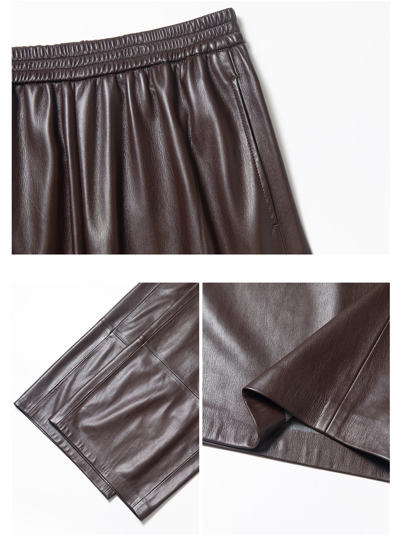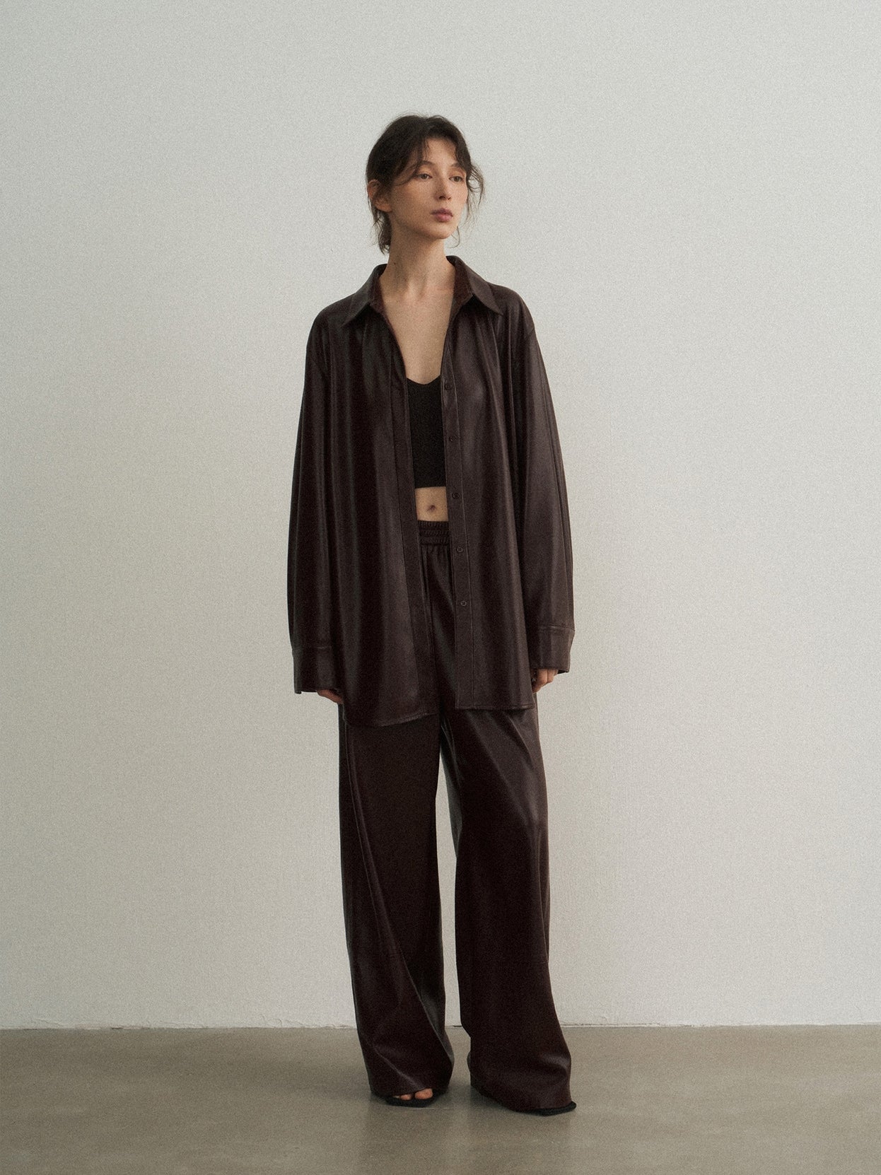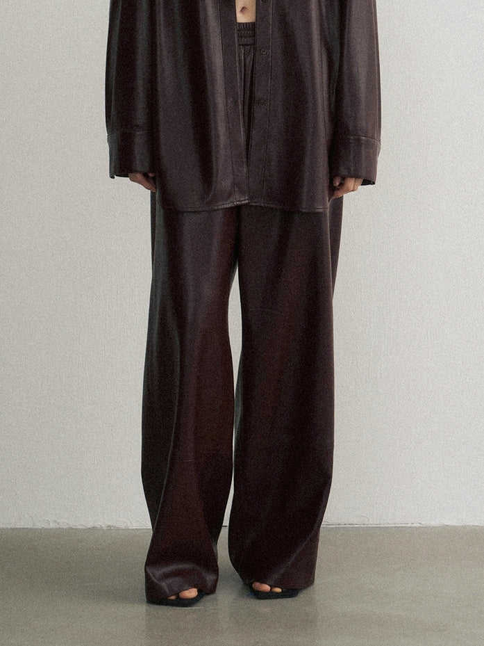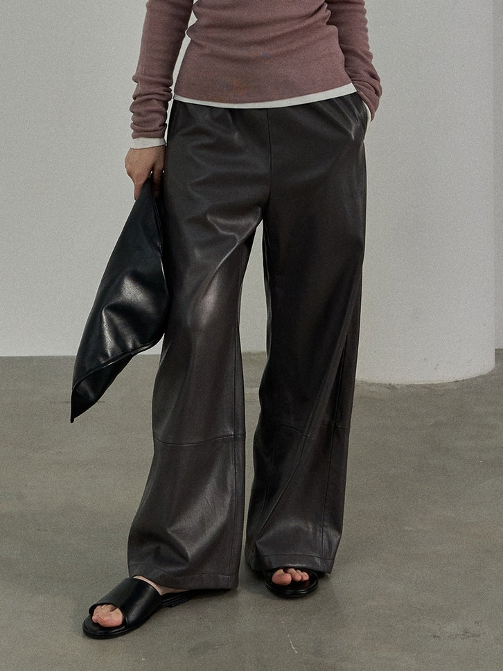 ラフに着用できるPUレザーワイドイージーパンツ。