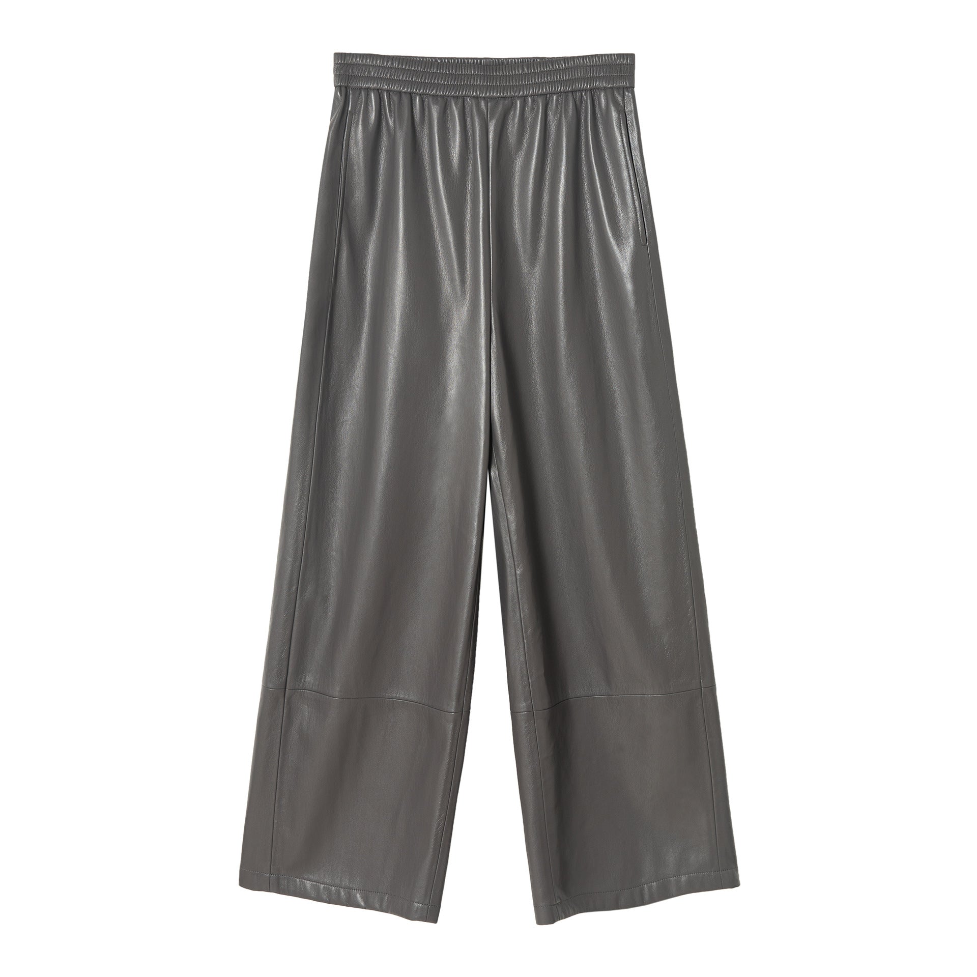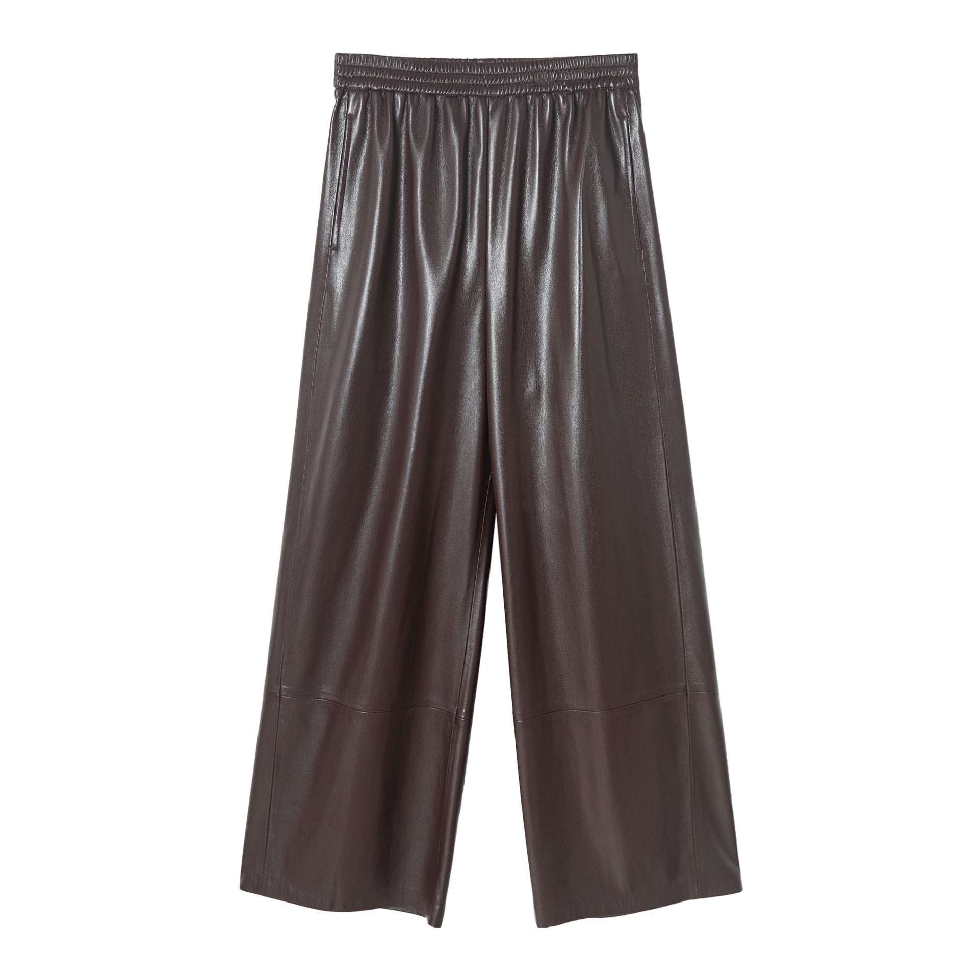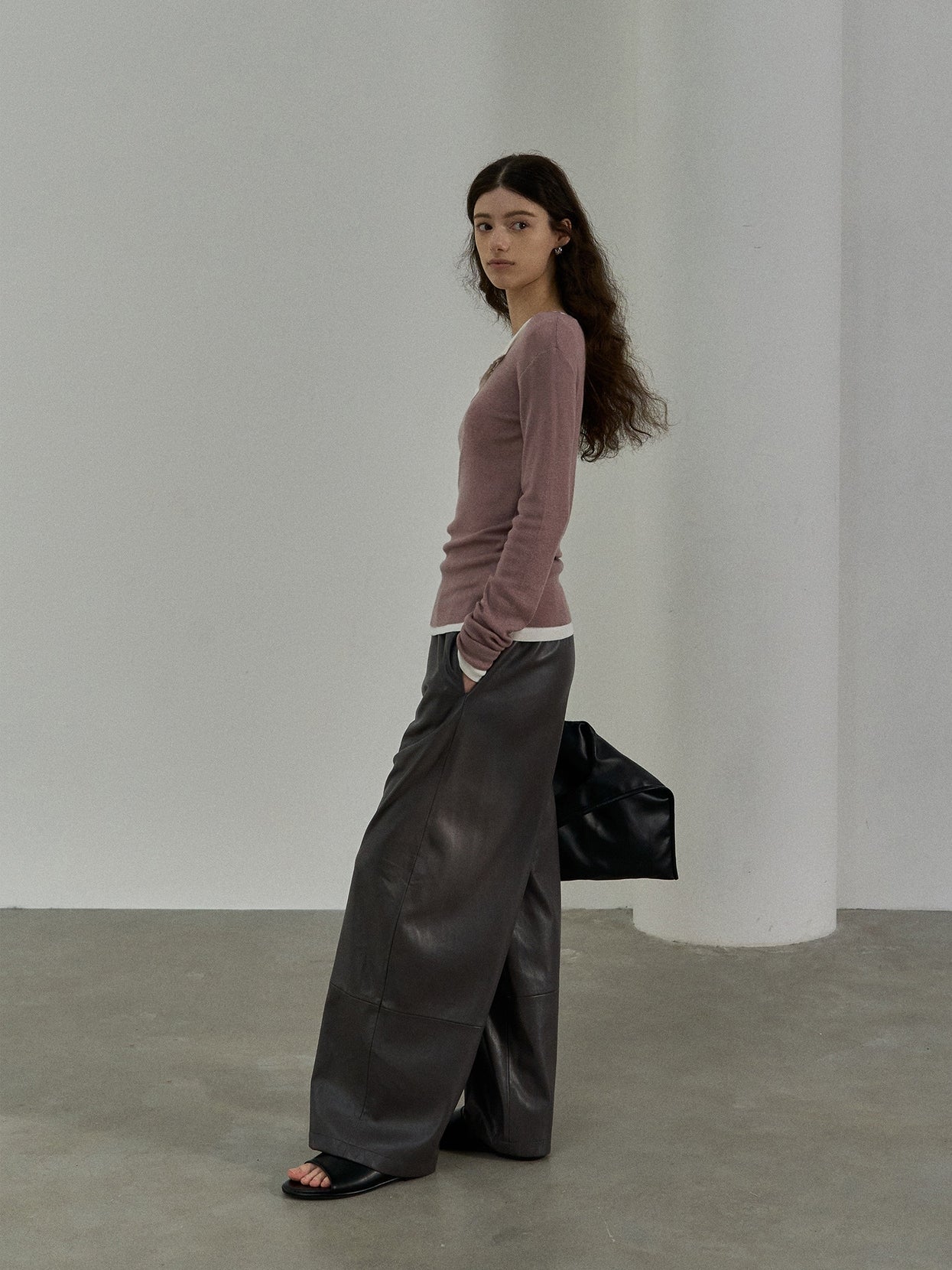 ラフに着用できるPUレザーワイドイージーパンツ。