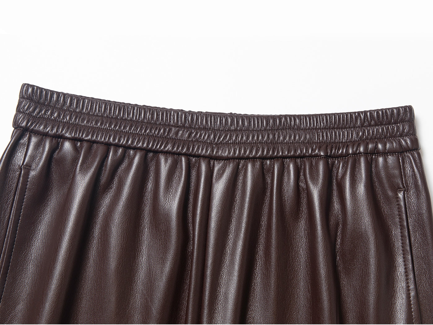 重たくなりがちなレザーパンツもウエストゴム仕様でカジュアルに。