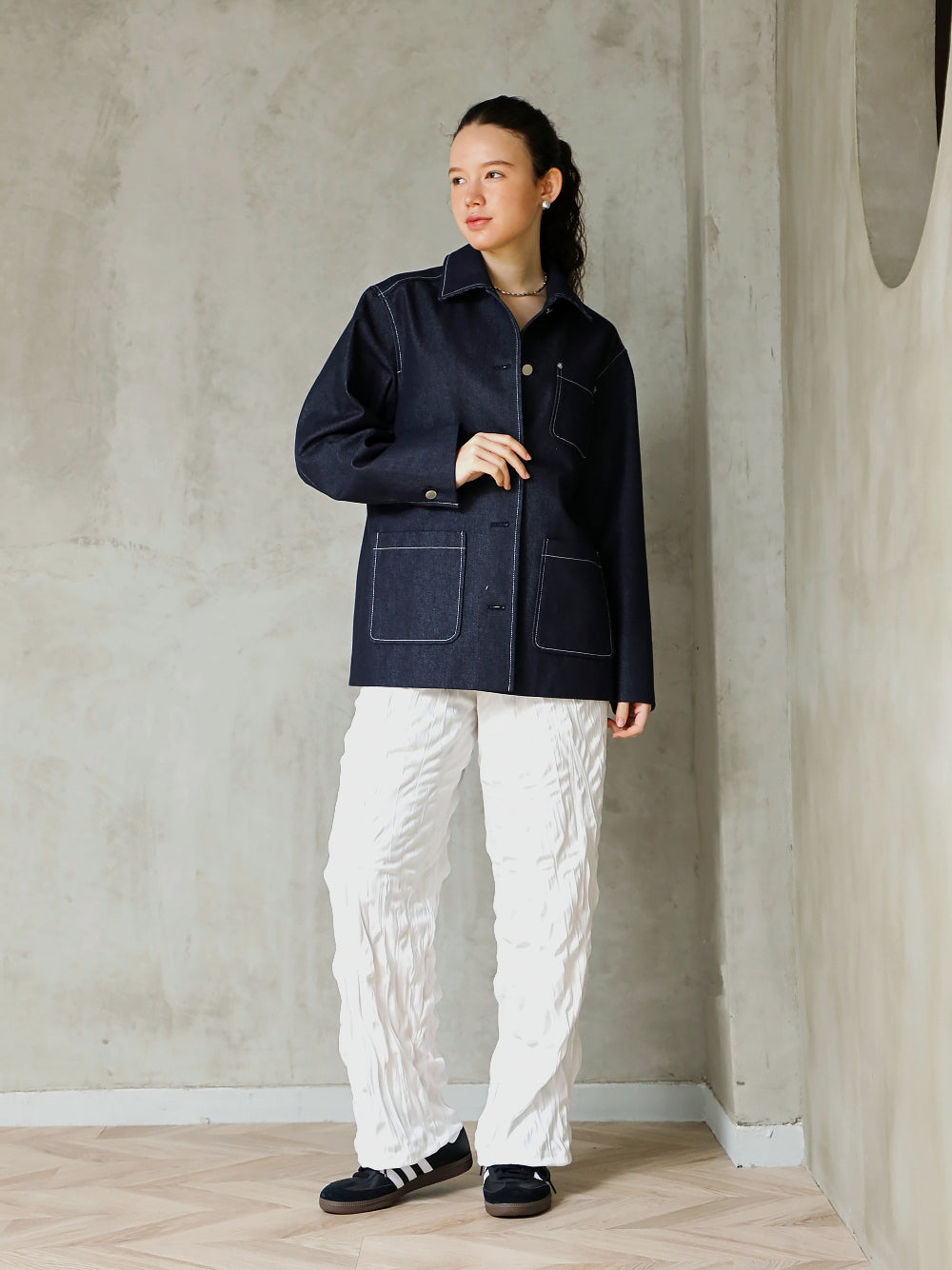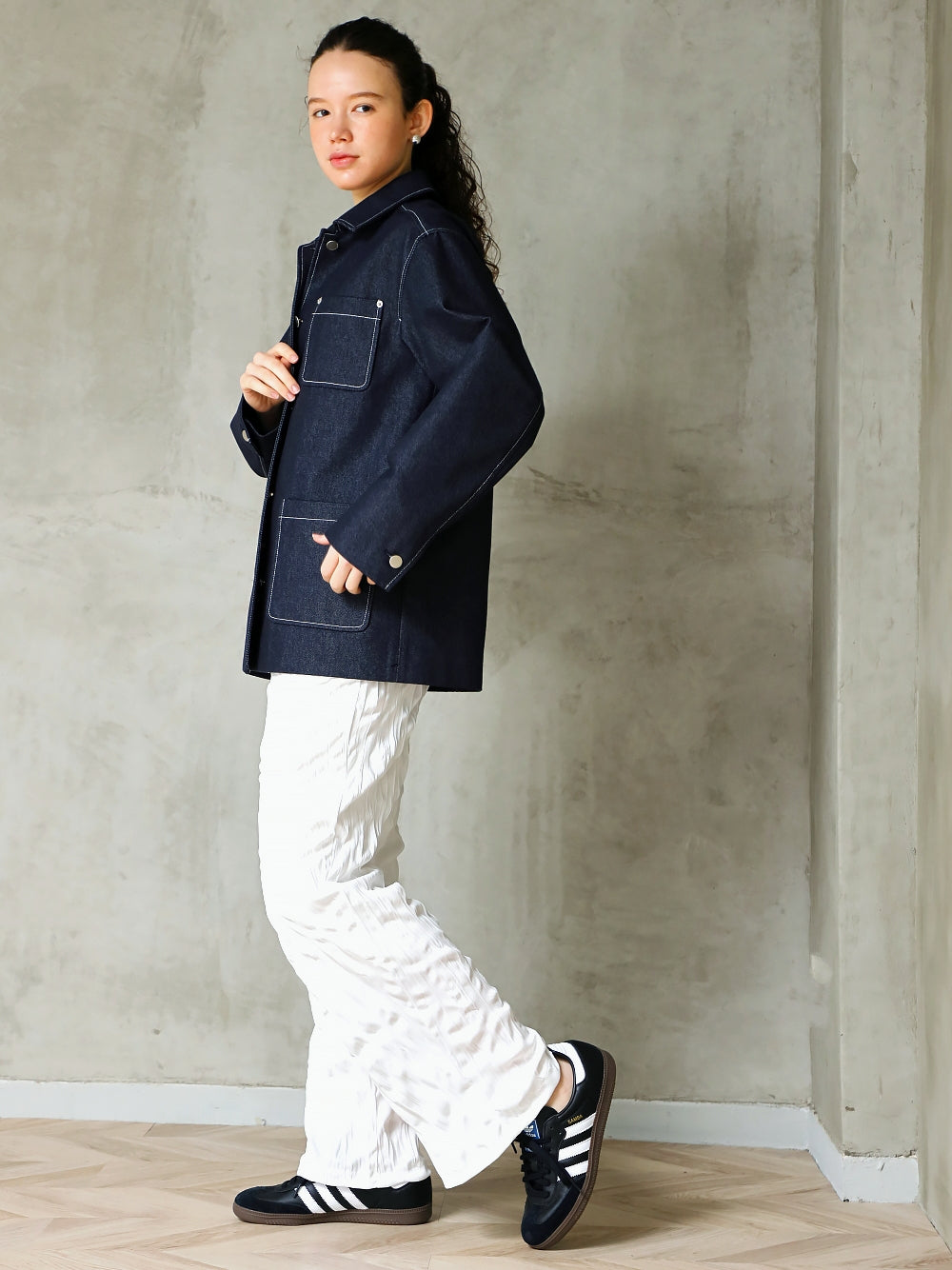 オーバーサイズなシャツやTシャツと合わせてカジュアルにも、ワンピースやヒールと合わせてレディライクにもスタイリングができる万能アイテム。