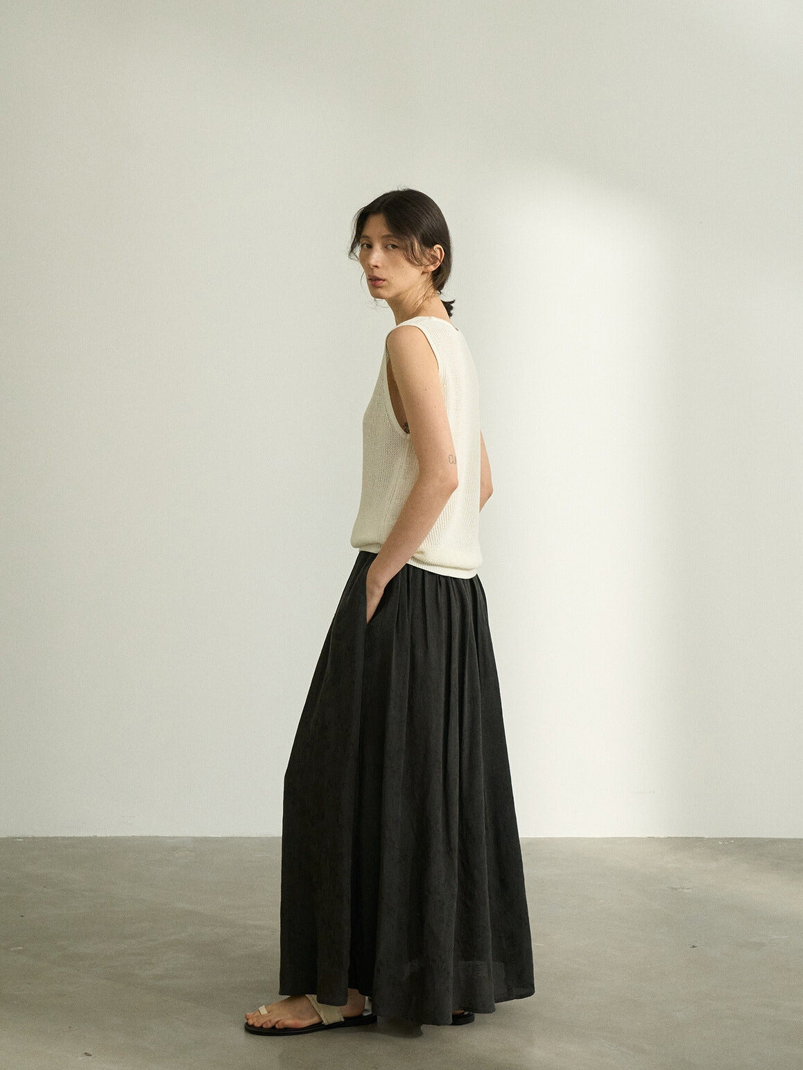 【セットアップ可】レーヨンジャガードロングフレアスカート